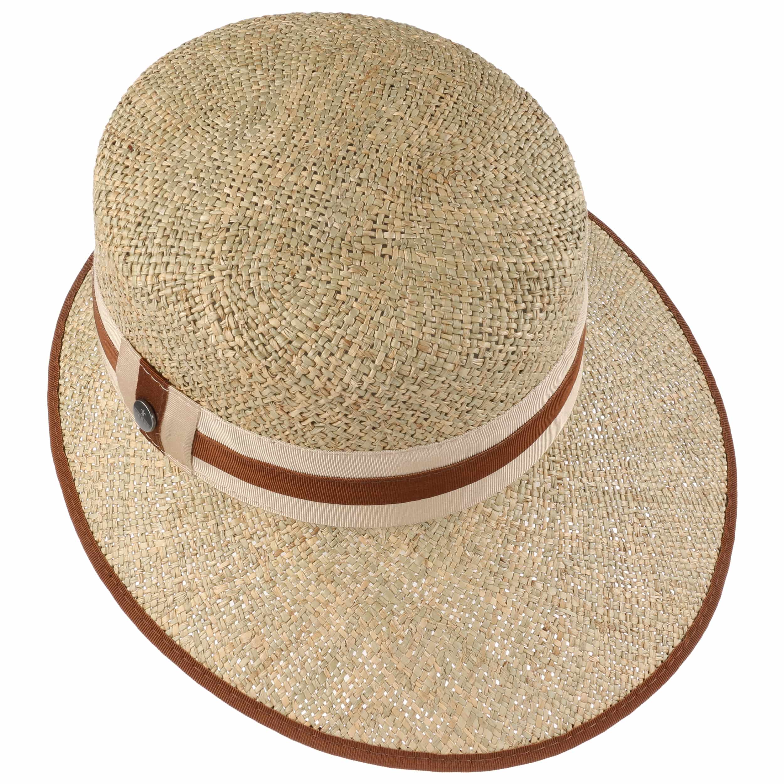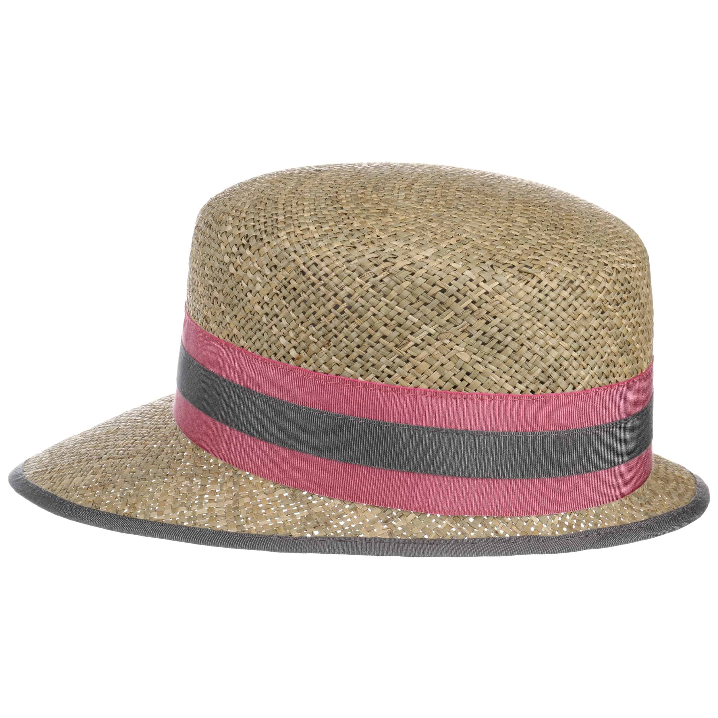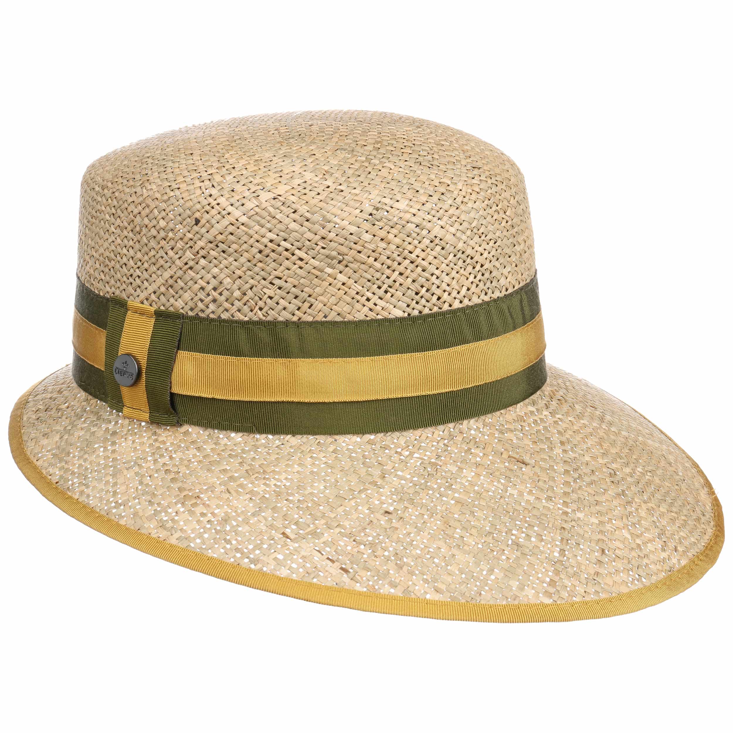 A special feature of this Italian-made straw hat from Lierys is its strikingly shaped brim. The front of this sun hat is decidedly longer. This allows the headgear to cast plenty of shade over the face – perfect for sunny spring and summer days. The two-toned striped grosgrain ribbon adds a classically elegant impression and stands in exciting contrast to the carefree-looking woven material.