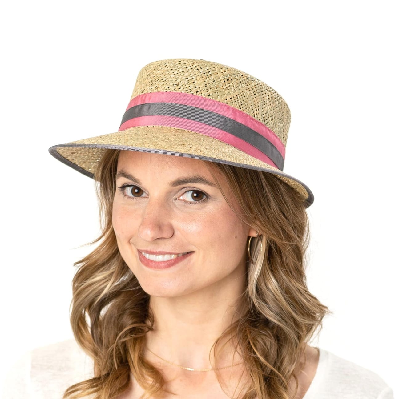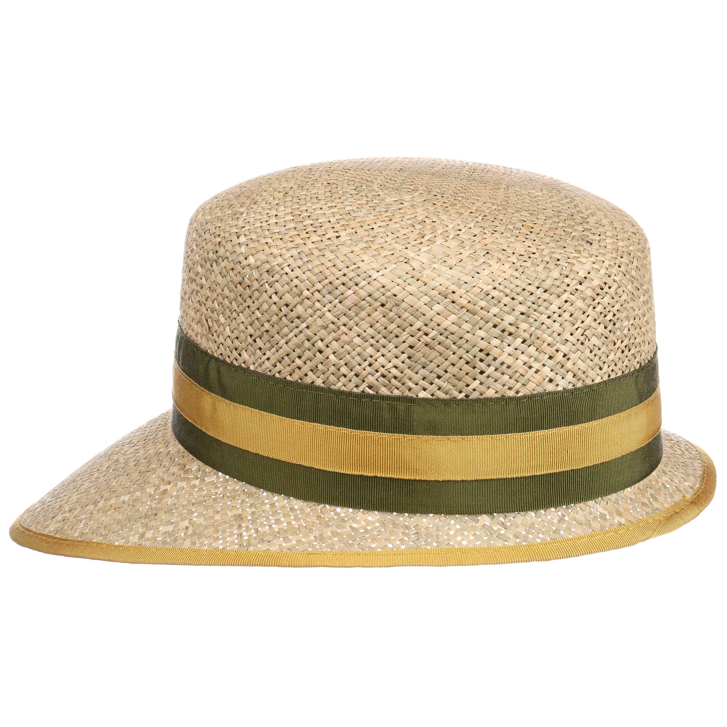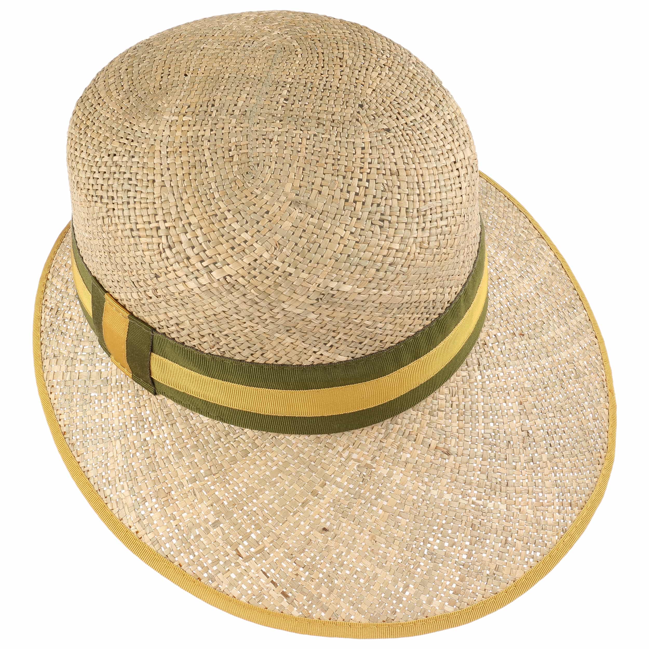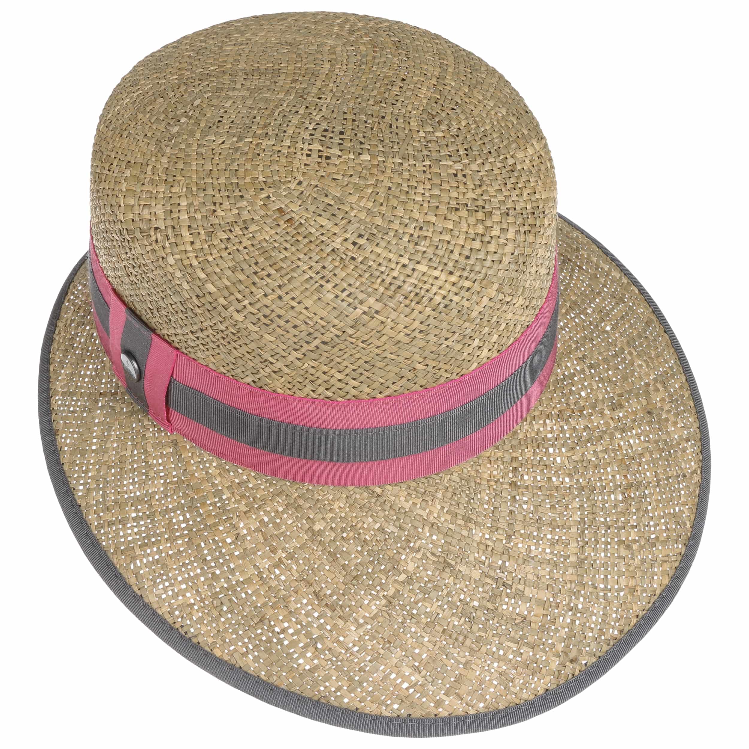 A special feature of this Italian-made straw hat from Lierys is its strikingly shaped brim. The front of this sun hat is decidedly longer. This allows the headgear to cast plenty of shade over the face – perfect for sunny spring and summer days. The two-toned striped grosgrain ribbon adds a classically elegant impression and stands in exciting contrast to the carefree-looking woven material.