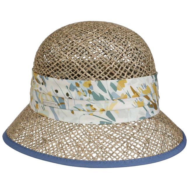 This cloche from Seeberger is a masterpiece made from 100% straw. The natural straw hat emphasises the lightness of summer with its charming, floral wrap made of 100% cotton and the loose weave. It gently hugs the head and is the ideal protection for sunny days. Feminine, light and distinctive, the cloche is the perfect companion for a stylish appearance.