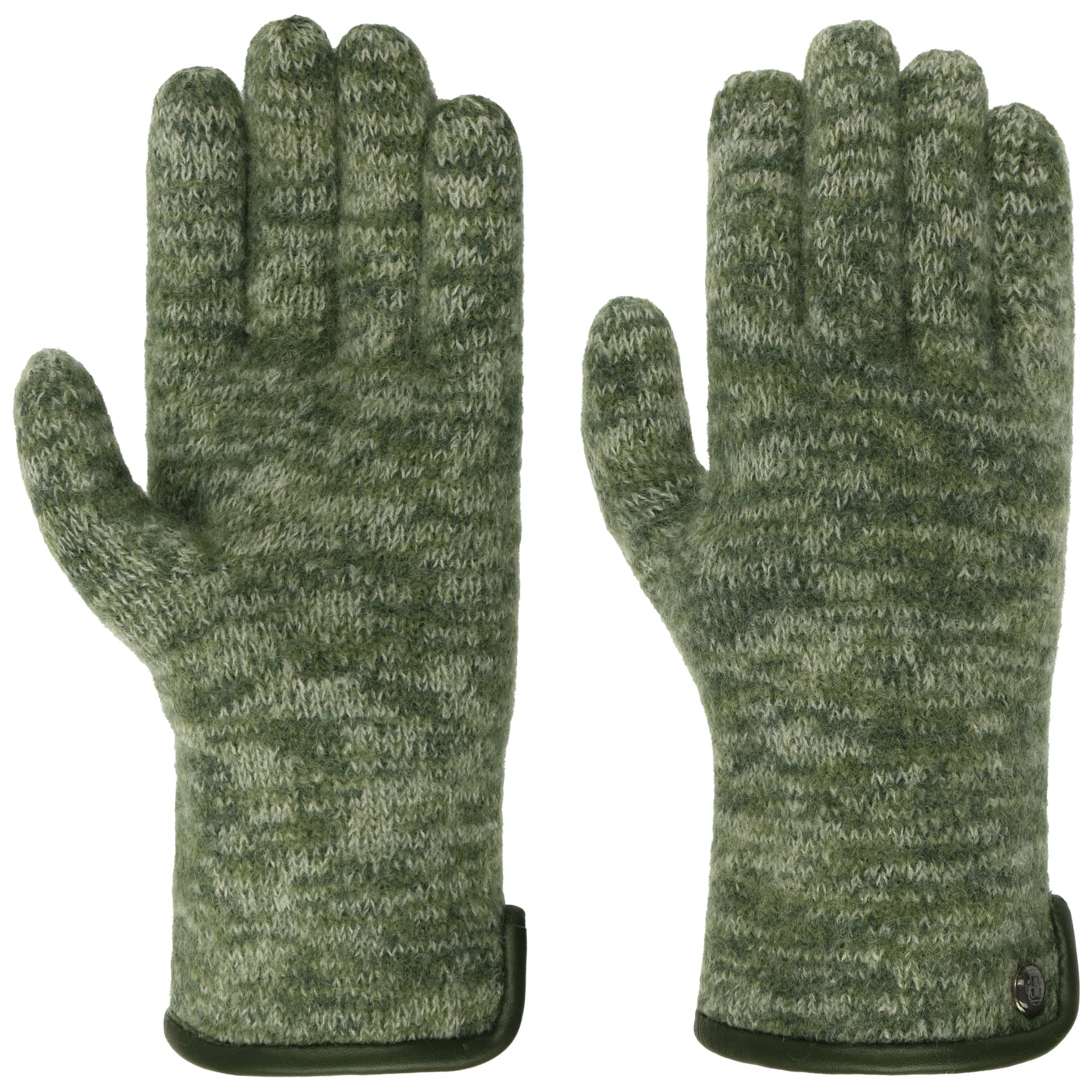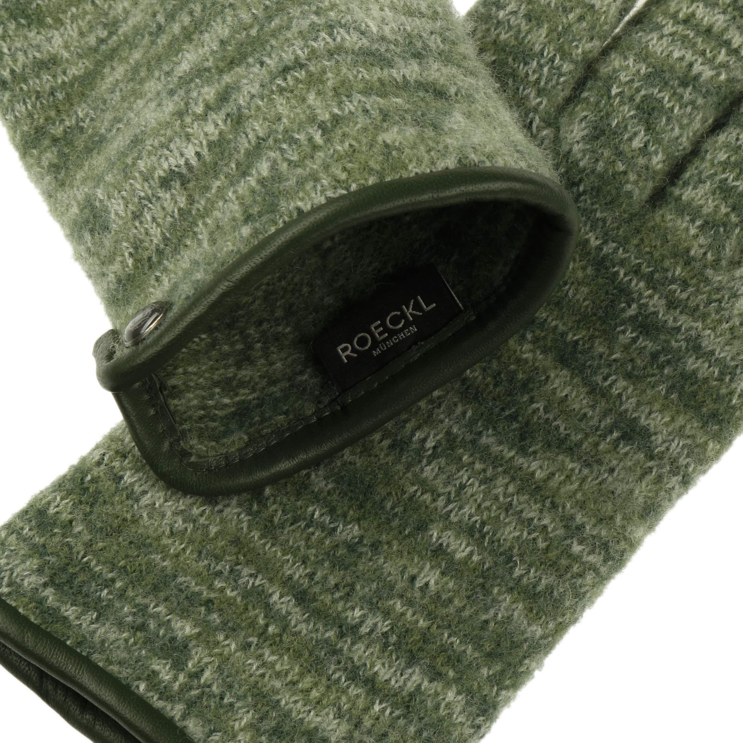 - Milled Wool Gloves with Leather by Roeckl - green-mottled 1