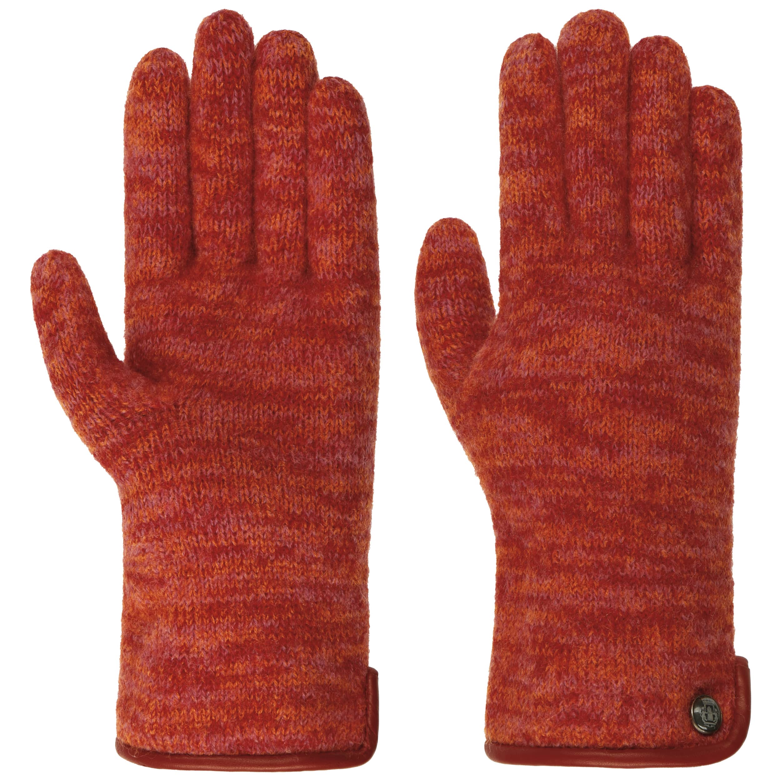- Milled Wool Gloves with Leather by Roeckl - red-mottled 2