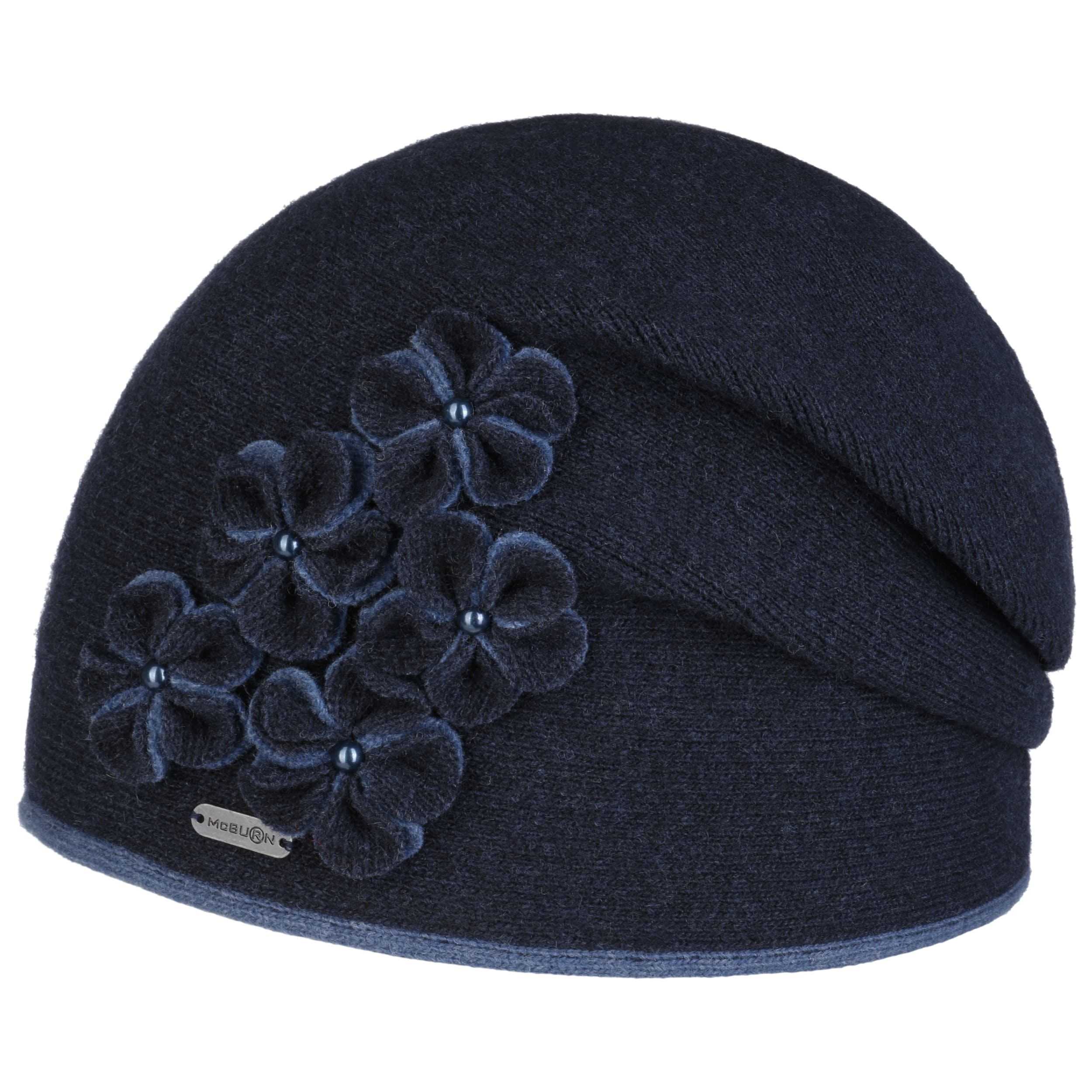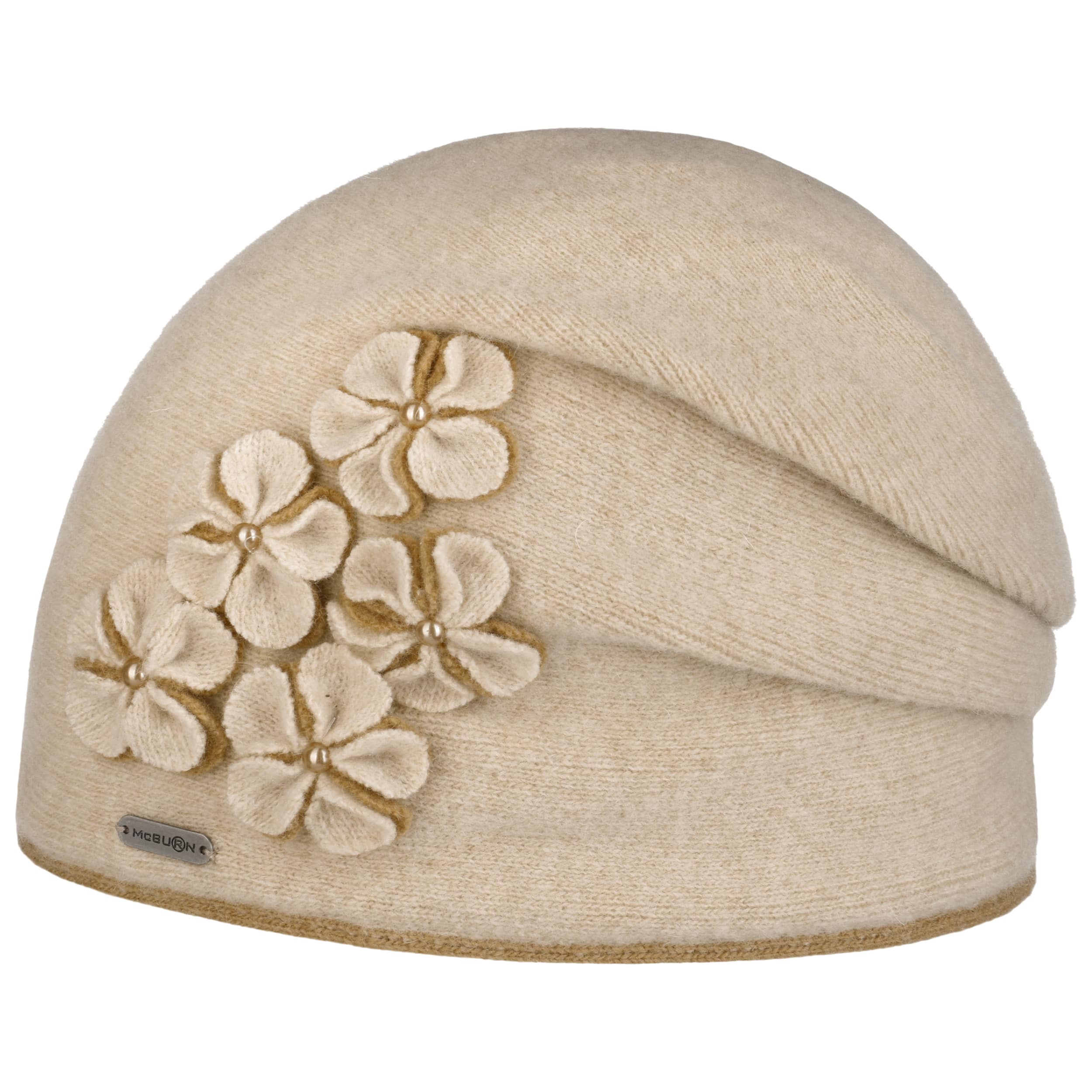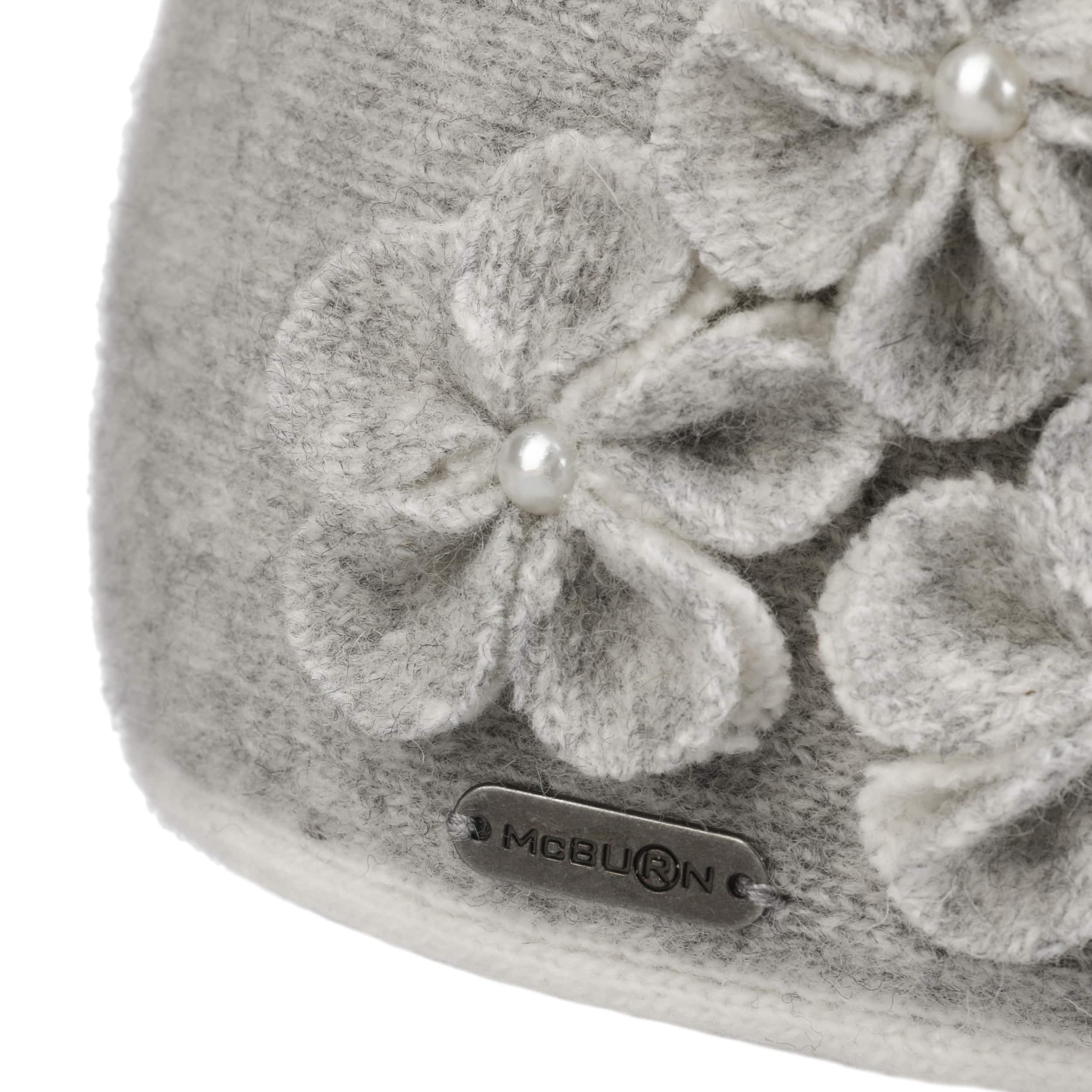 With the winter hat from the McBURN label, the style-conscious lady of today always cuts a fine figure even in cooler temperatures. Thanks to the wool content, the hat keeps your head warm by storing body heat. The monochrome fabric cap - which can be washed at 30 °C - is visually impressive with its chic shape and the sewn-on fabric flowers.