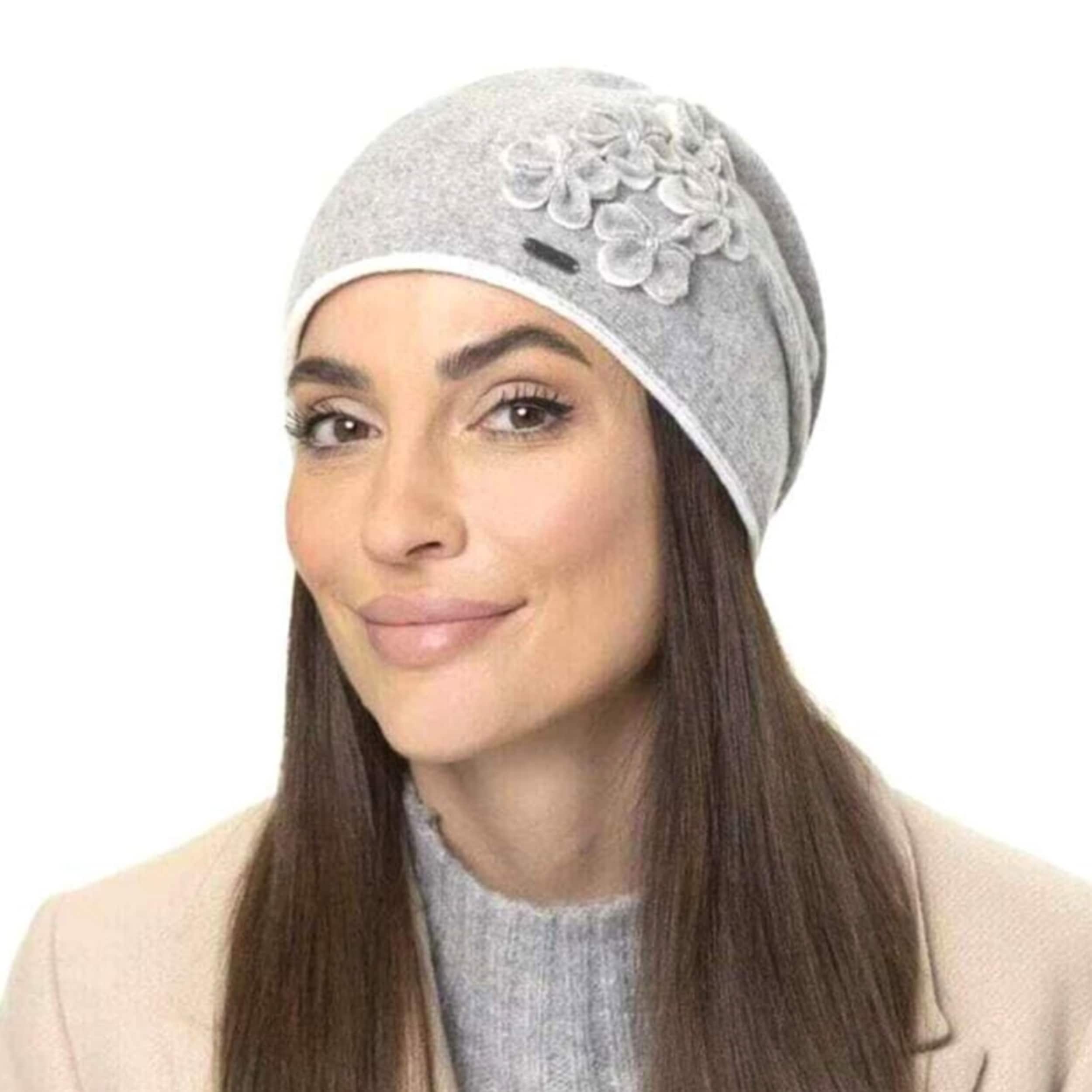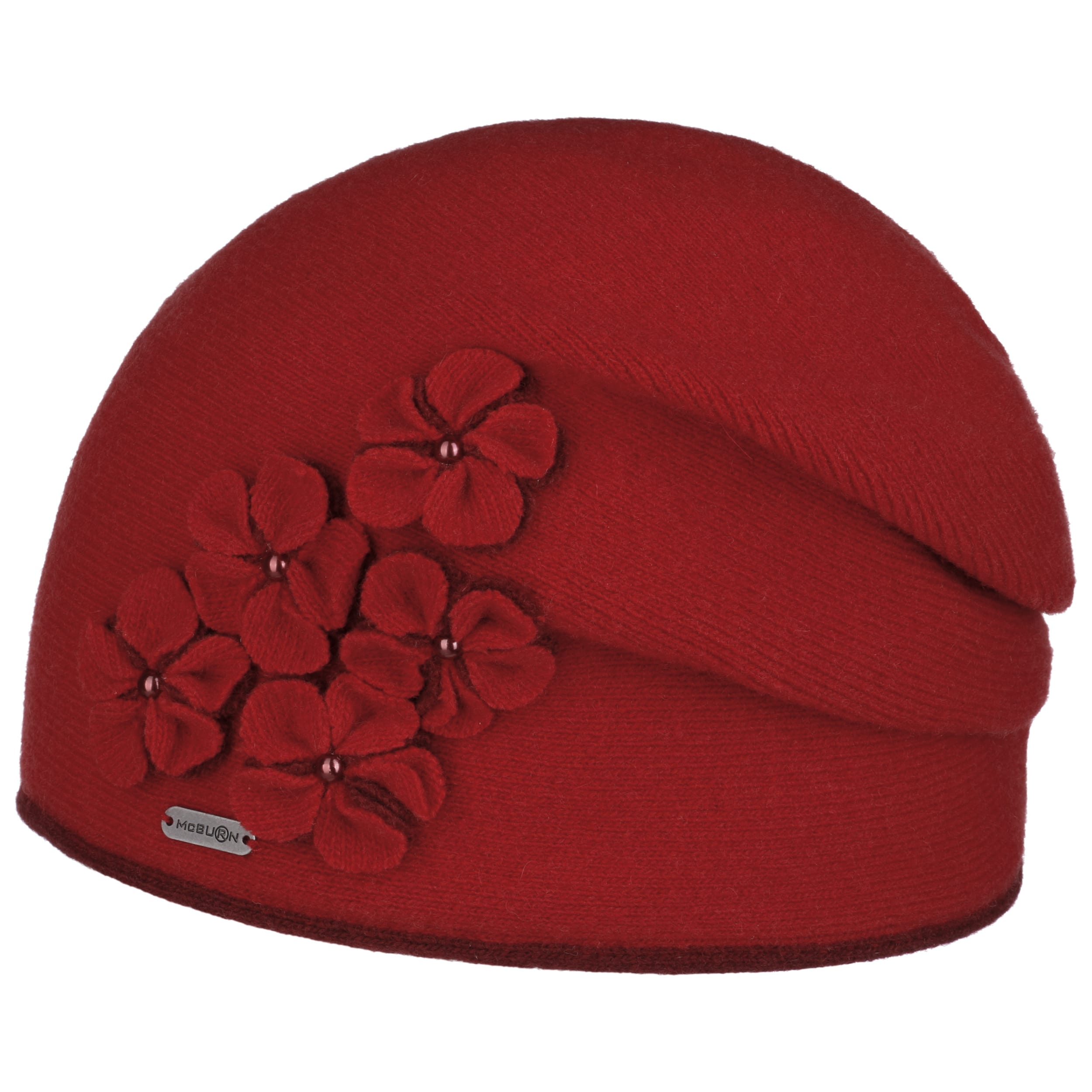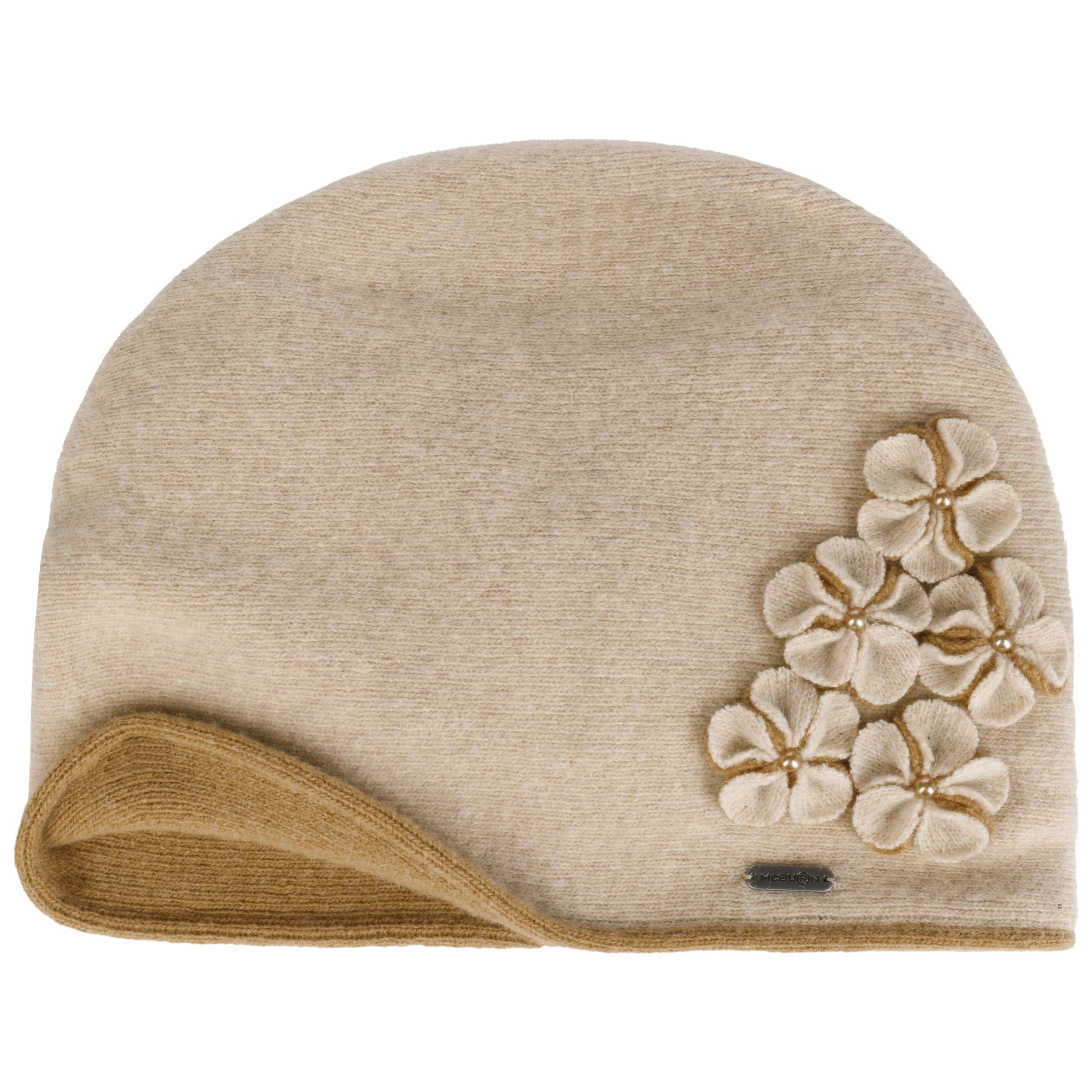 With the winter hat from the McBURN label, the style-conscious lady of today always cuts a fine figure even in cooler temperatures. Thanks to the wool content, the hat keeps your head warm by storing body heat. The monochrome fabric cap - which can be washed at 30 °C - is visually impressive with its chic shape and the sewn-on fabric flowers.