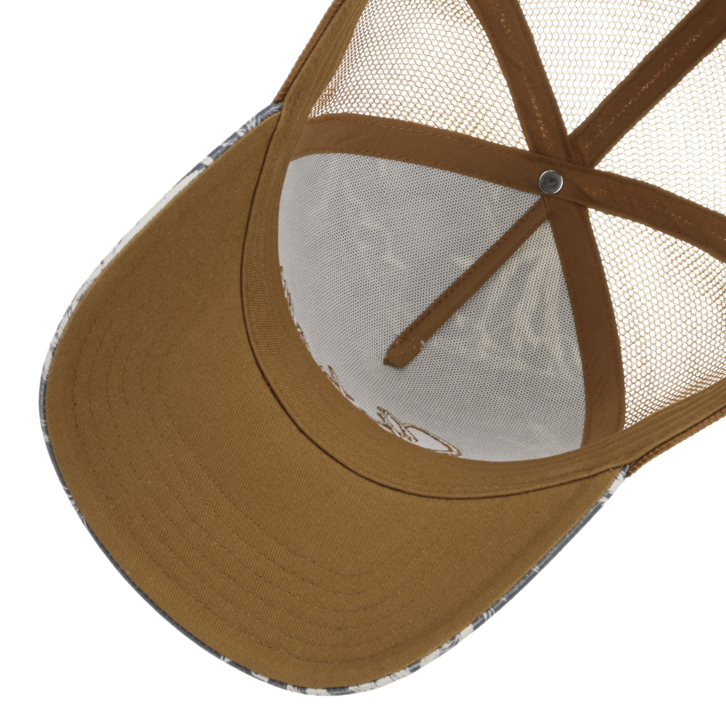 With its pattern of palm trees and mountains, the Stetson trucker cap makes you want to go on holiday. When out in the sun, it protects the face from the sun’s glare with its large visor and offers airy comfort with a 100% cotton fabric, a fabric lining band and a large mesh insert at the back of the head. The size of the cap can be individually adjusted using a press stud.