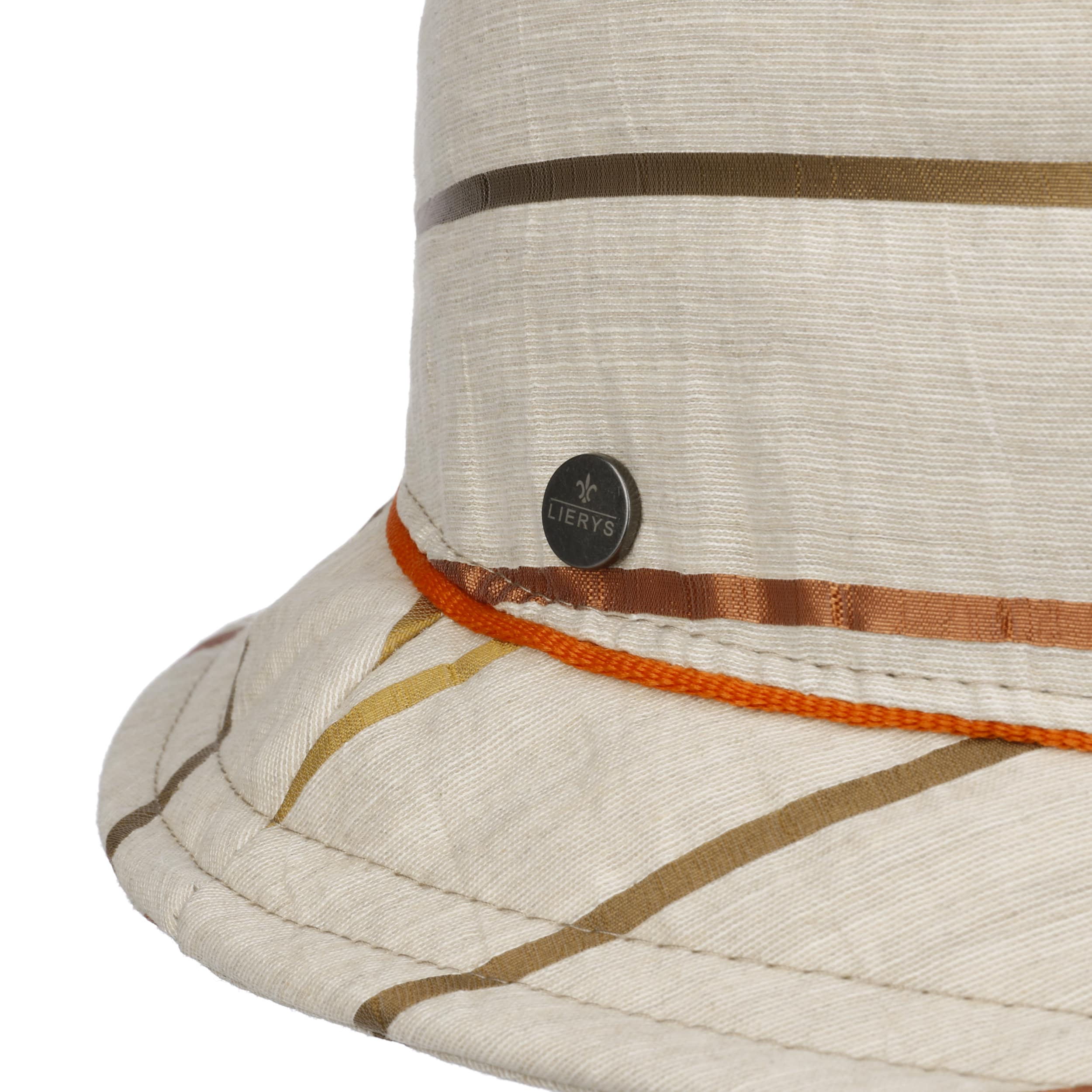 A mix of the natural fibres cotton and linen makes the small hat shape from Lierys comfortable, breathable headwear. Narrow stripes with an attractive colour gradient adorn the heathered outer material and give the trendy fabric hat an elegant touch. Fine tonal stitching underlines the high quality of workmanship. At the transition to the brim, a colour-contrasting piping is incorporated as a refined fashion detail.