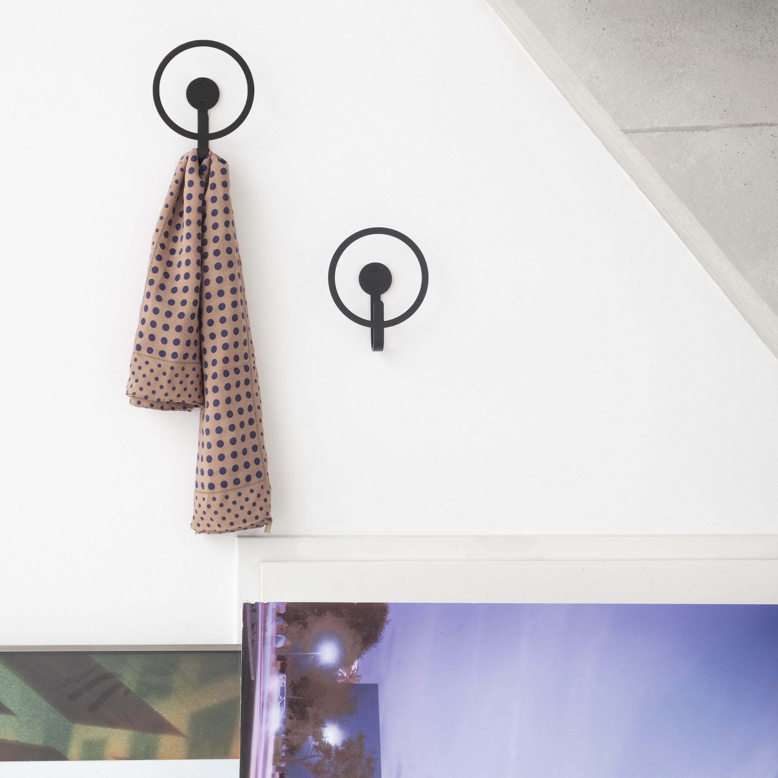 This timelessly attractive coat hook from Iserlohner Haken offers a high level of quality made in Germany. The carefully crafted item is made of 100% steel and is bound to win you over with its practical space-saving ability thanks to its smart design: the large ring, which encircles the classic coat hook, is not just decorative – it can also be used to hold a hat, for example. Other accessories such as handbags or scarves can also be hung up on the curved loop near the wall.