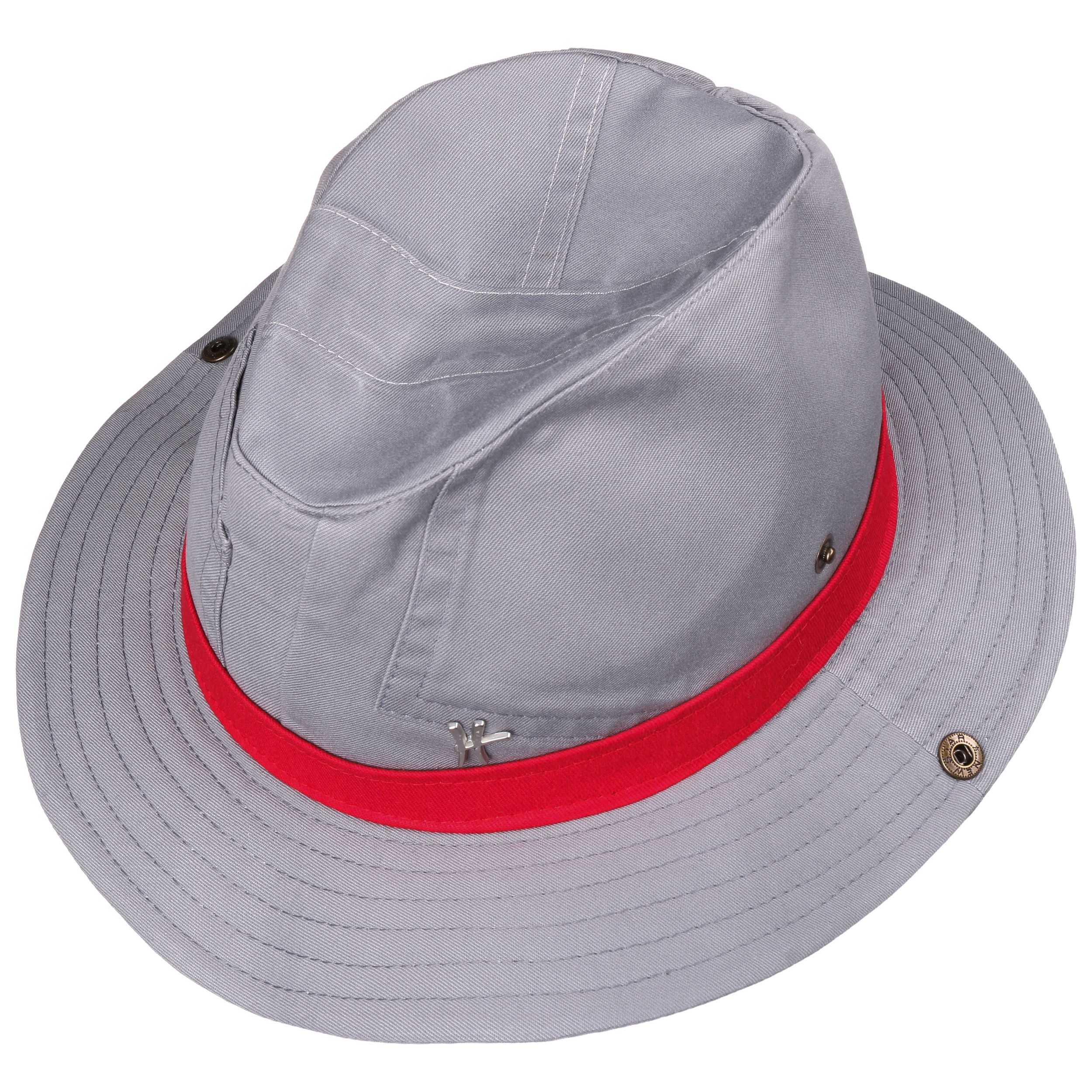 This fabric hat from ReHats Berlin is bound to win you over with its dynamic look that attracts the eye. With its brim, deep indentations and flexible material, this model is ideal for holidays and trips into the great outdoors. A contrasting ribbon and patches draw all eyes to you. The press studs on the sides allow the brim to be turned up and held in place. No item is like the others, so there will be differences when compared to the advertised image.