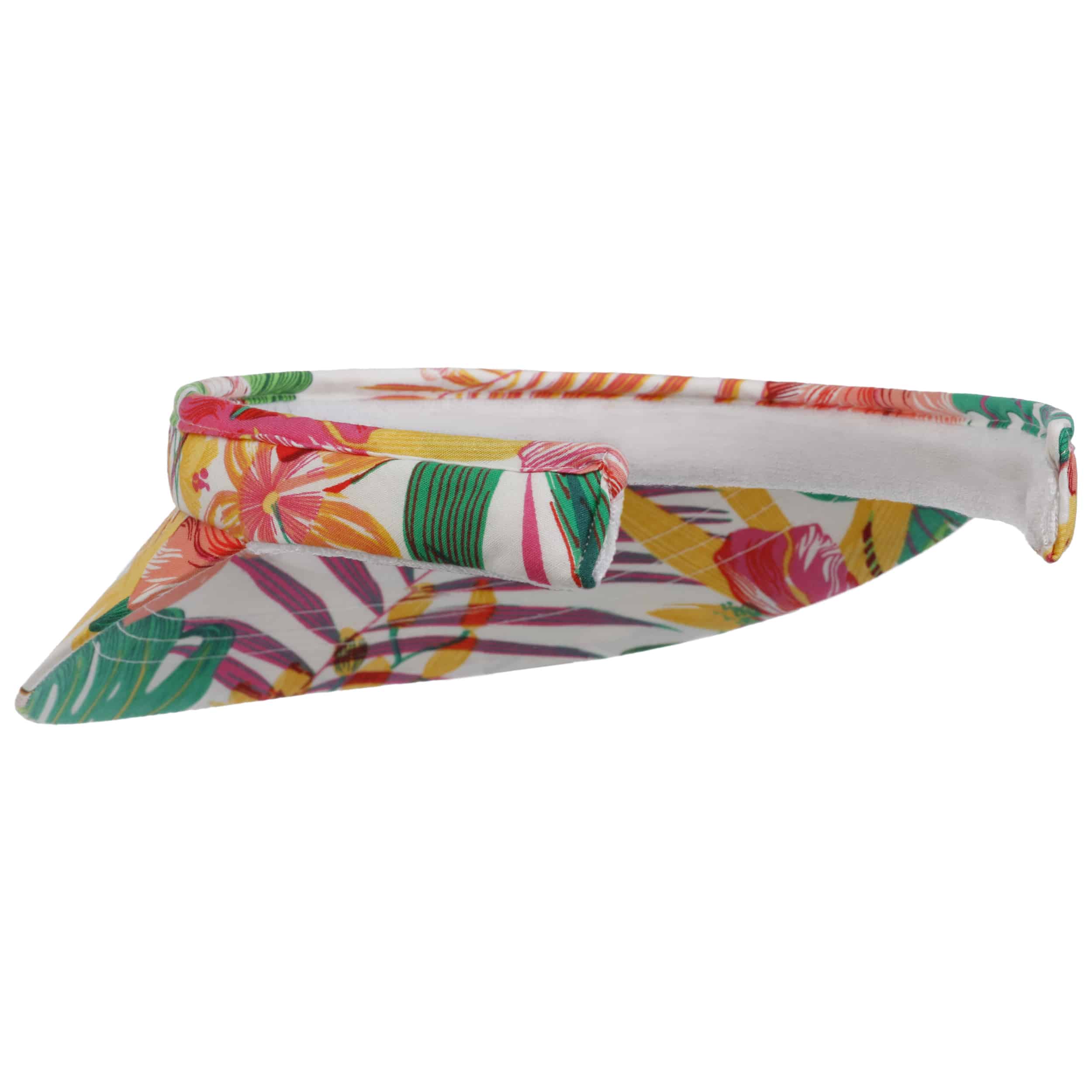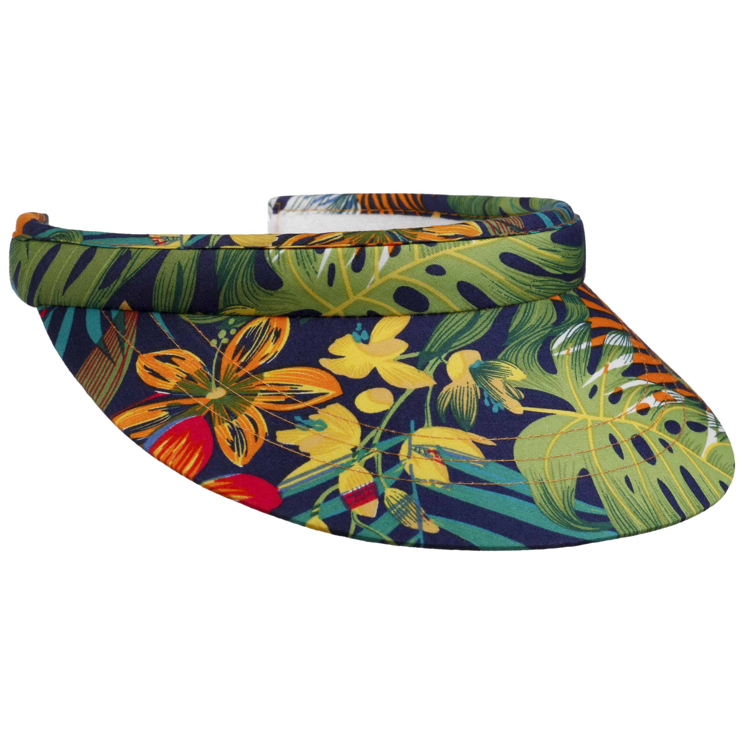 This is all you need to protect yourself from cheeky sunshine when playing sports and games. The lightweight visor cap from Lipodo with expansive peak is exceptionally comfortable to wear and at the same time guarantees a razor-sharp view of the essentials. The sumptuous tropical flowers are perfect for combining with summery blouses and tops, and also makes for a good mood.
