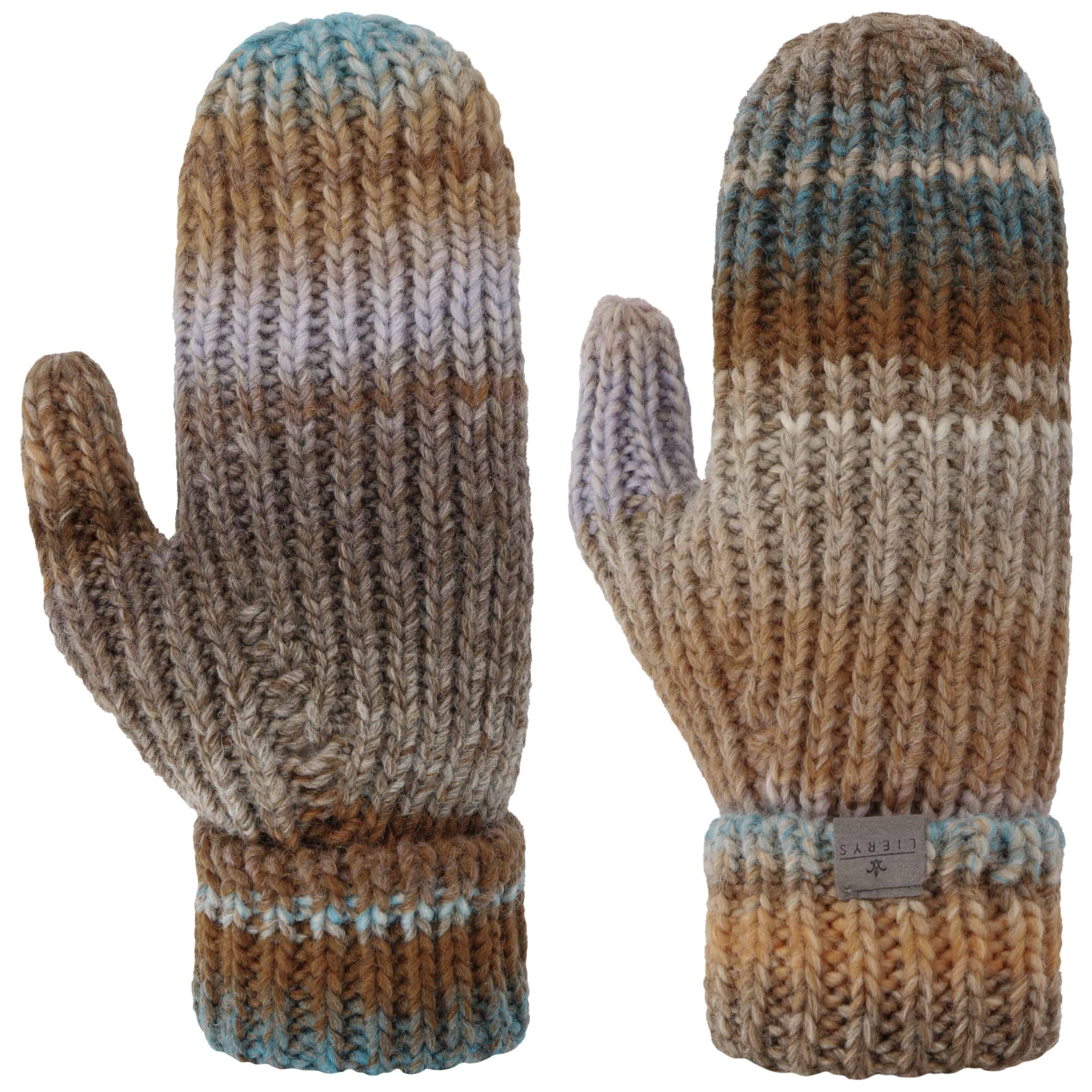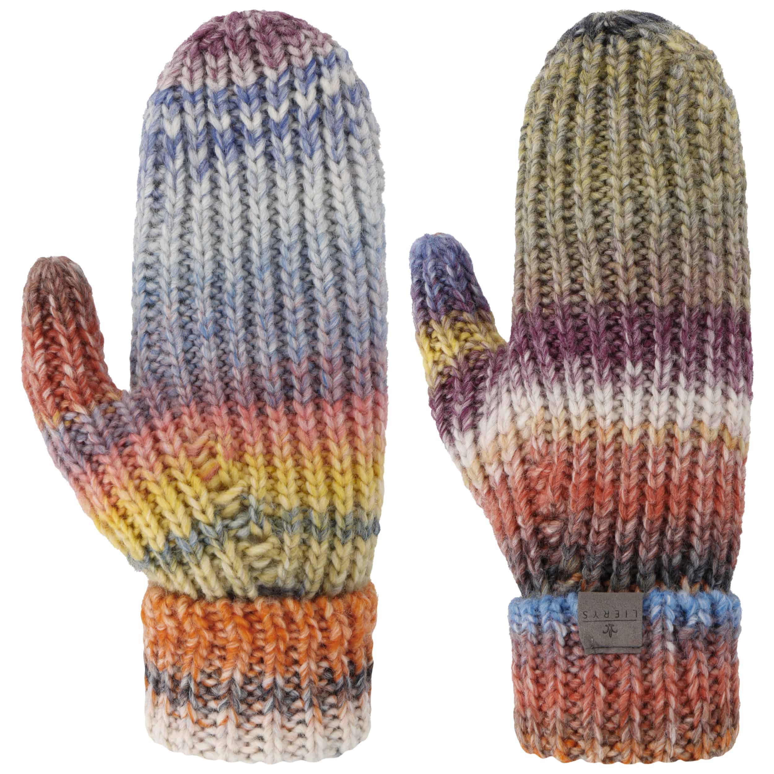 The label with the iris logo has dedicated itself to making modern, stylish and comfortable headwear along with matching accessories. Baseball caps, Trilby hats and Bogart hats have been made into timeless designs that give an outfit a classy splash of colour and bring a smart cut to your headwear. High quality knitted sets, which are available individually as beanies, peak pull on hats, Laplander hats, headbands, scarves, gloves etc., discreetly accentuate each lady’s or gentleman’s individuality. From woollen hats to flat caps, Lierys accessories can be worn in endless fashionable combinations.- Multicolour Mittens by Lierys - mixed colours 1