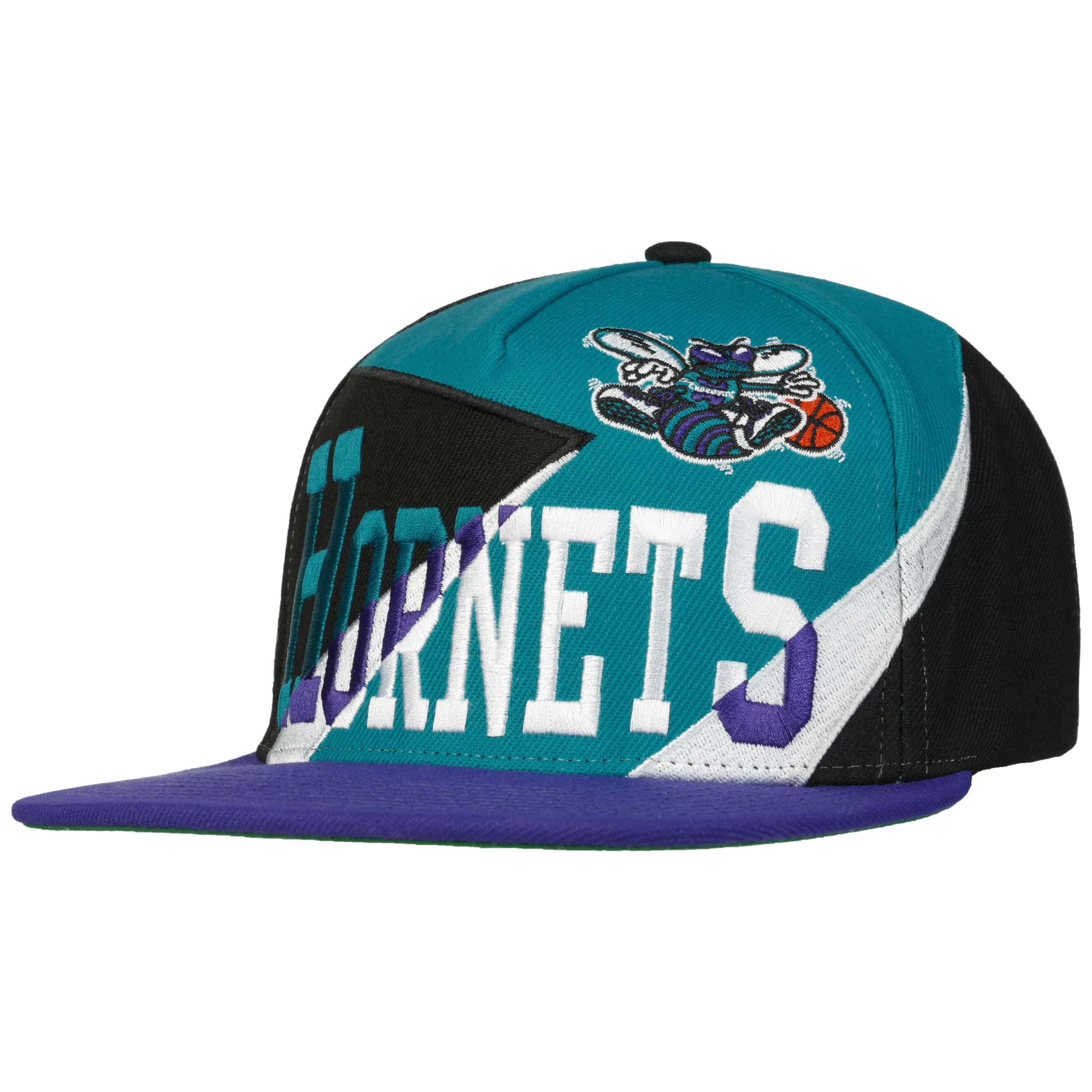Whether the NBA season is in full swing or currently on a break, the Multipli Hornets Cap from Mitchell & Ness will always be the number one choice for fans of the Charlotte Hornets. The straight visor is 7 cm long, whilst the height of this baseball cap measures 12 cm. The stylish flat brim cap has an opening at the back and its size can be adjusted using a practical snapback closure, thus guaranteeing a perfect fit at all times and making it extremely comfortable to wear.