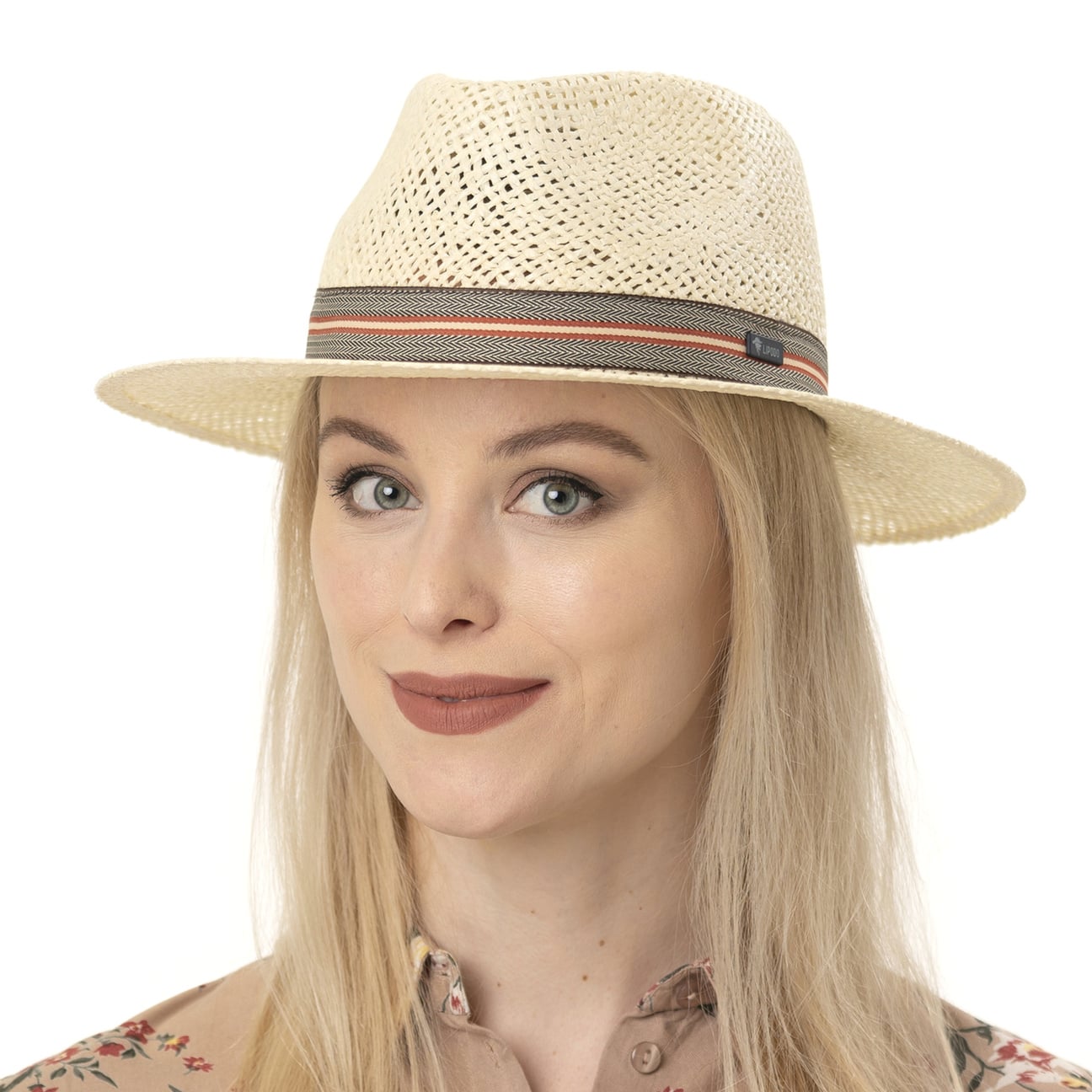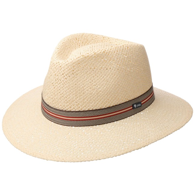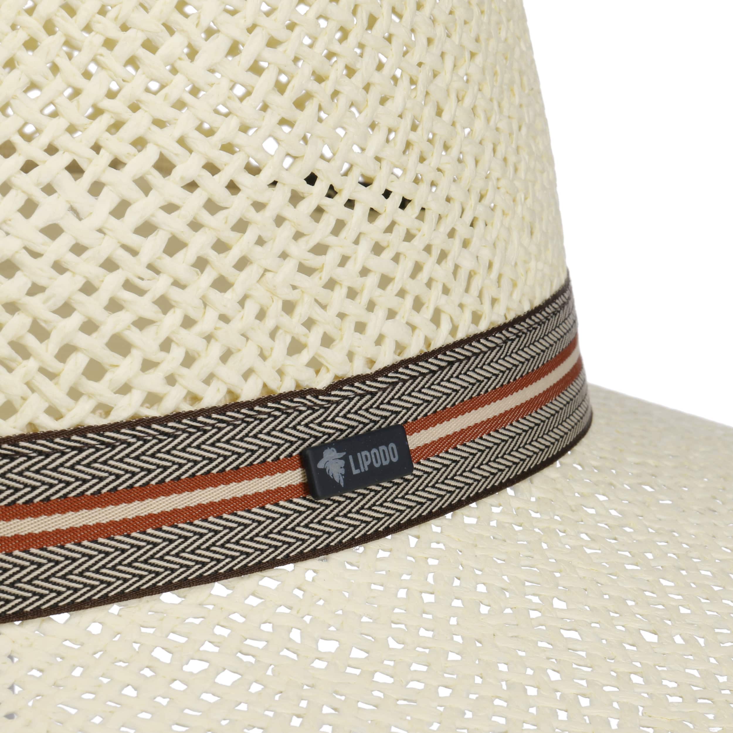 With its chunky woven material made of 100% paper straw, this traveller hat from Lipodo is a wonderfully airy and pleasantly lightweight accessory for the summer. Its wide brim provides plenty of shade for the face and neck. The restrained, monochrome look of the material is interrupted by a trim band, which draws all eyes to it with its multicoloured stripes.