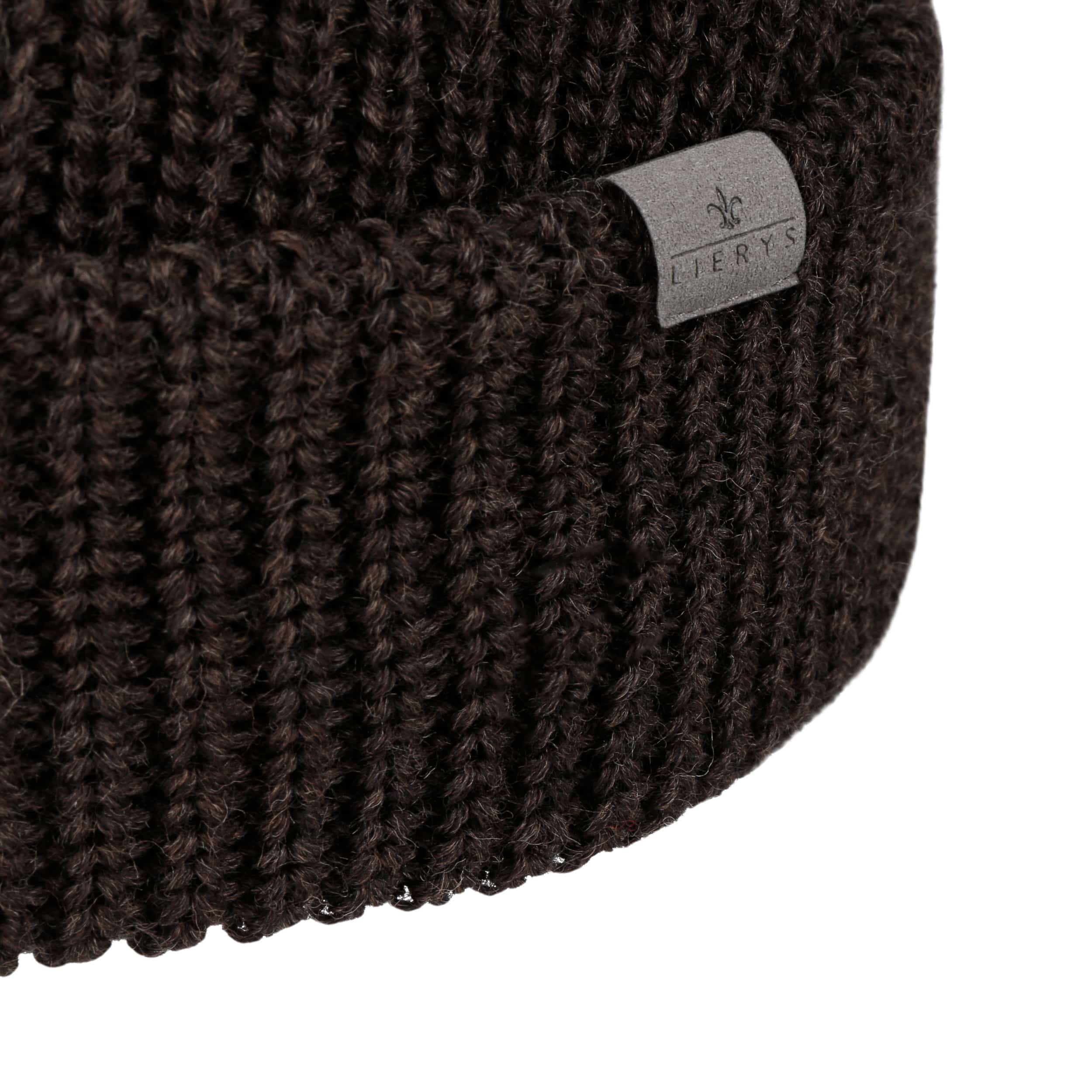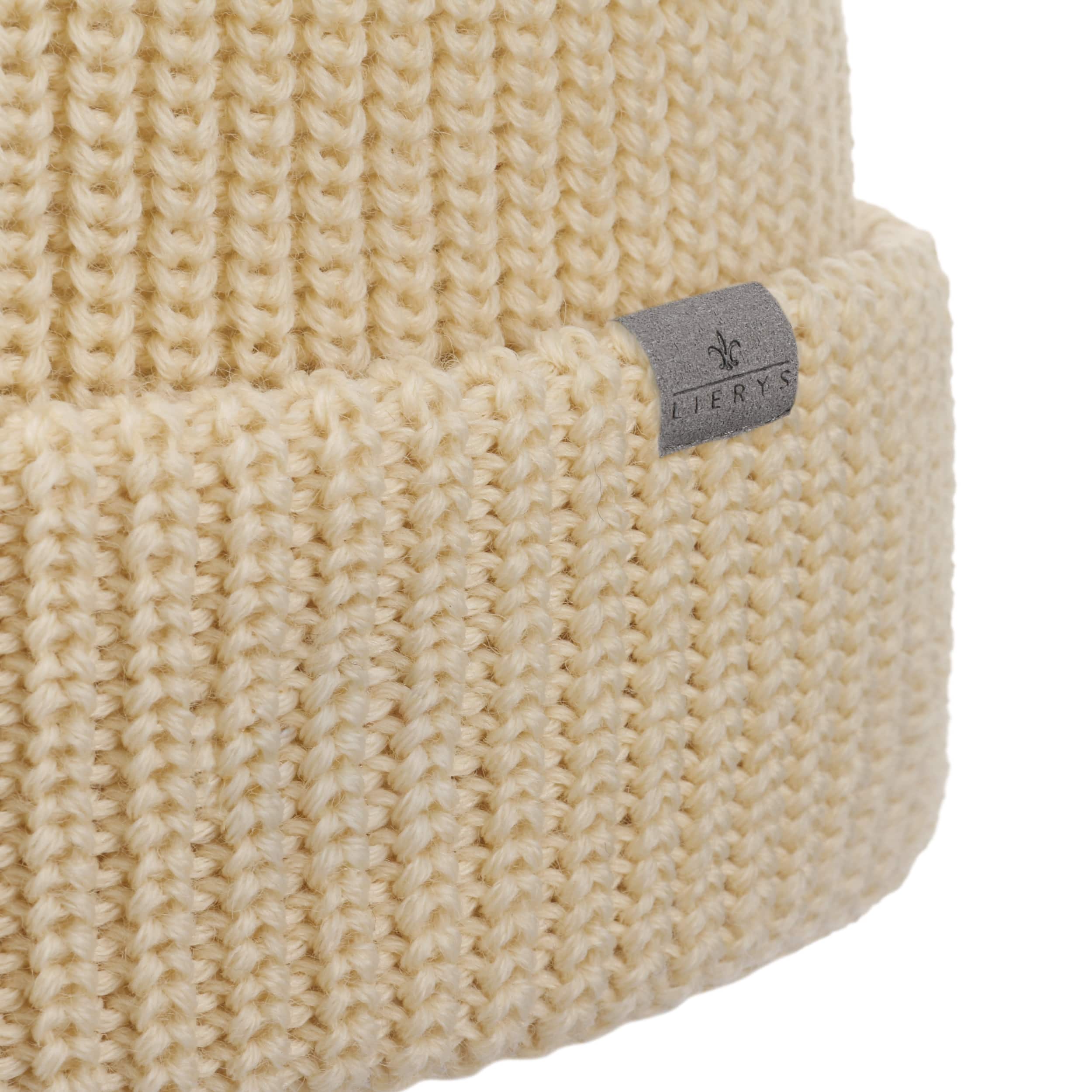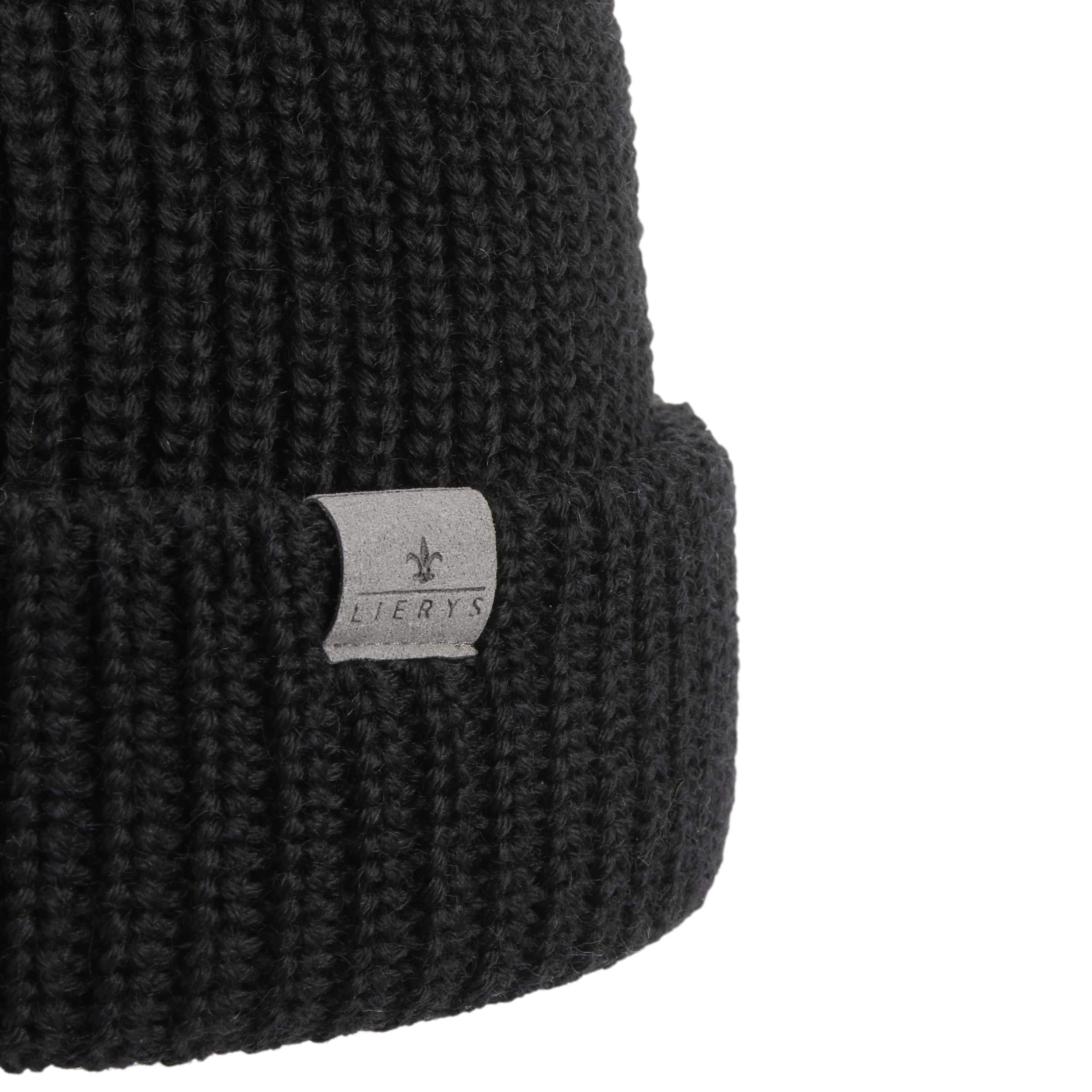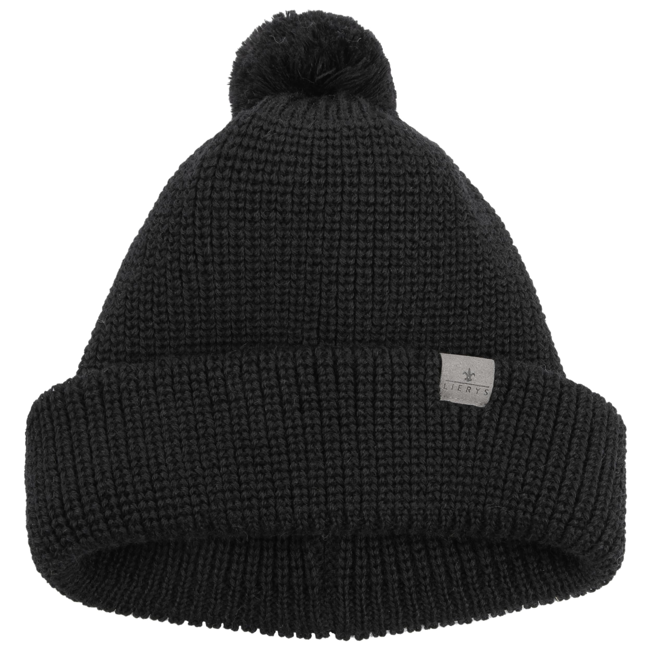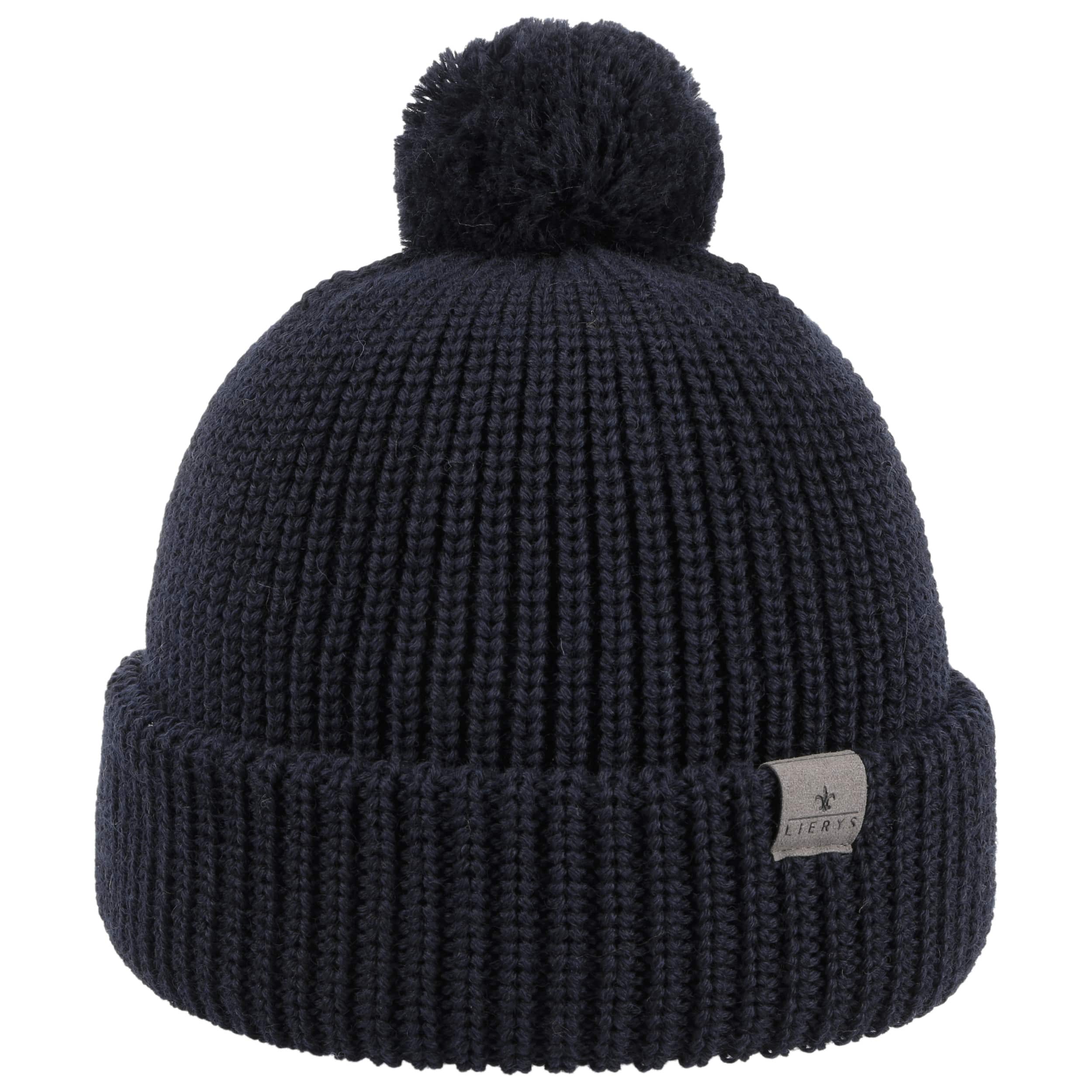 The pure virgin wool of this single-coloured Lierys knit hat keeps your head warm in any wind and weather. With pom top and double fold down cuff.