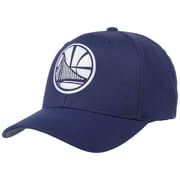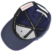 Innovation in the cap market: The Navy 110 Warriors Cap from Mitchell & Ness combines the advantages of an original Flexfit lining band with those of a functional and in this case, extremely high-quality snapback closure. This makes it remarkably comfortable to wear. The baseball cap has a curved peak 7 cm in length and a head section measuring 10.5 cm in height.