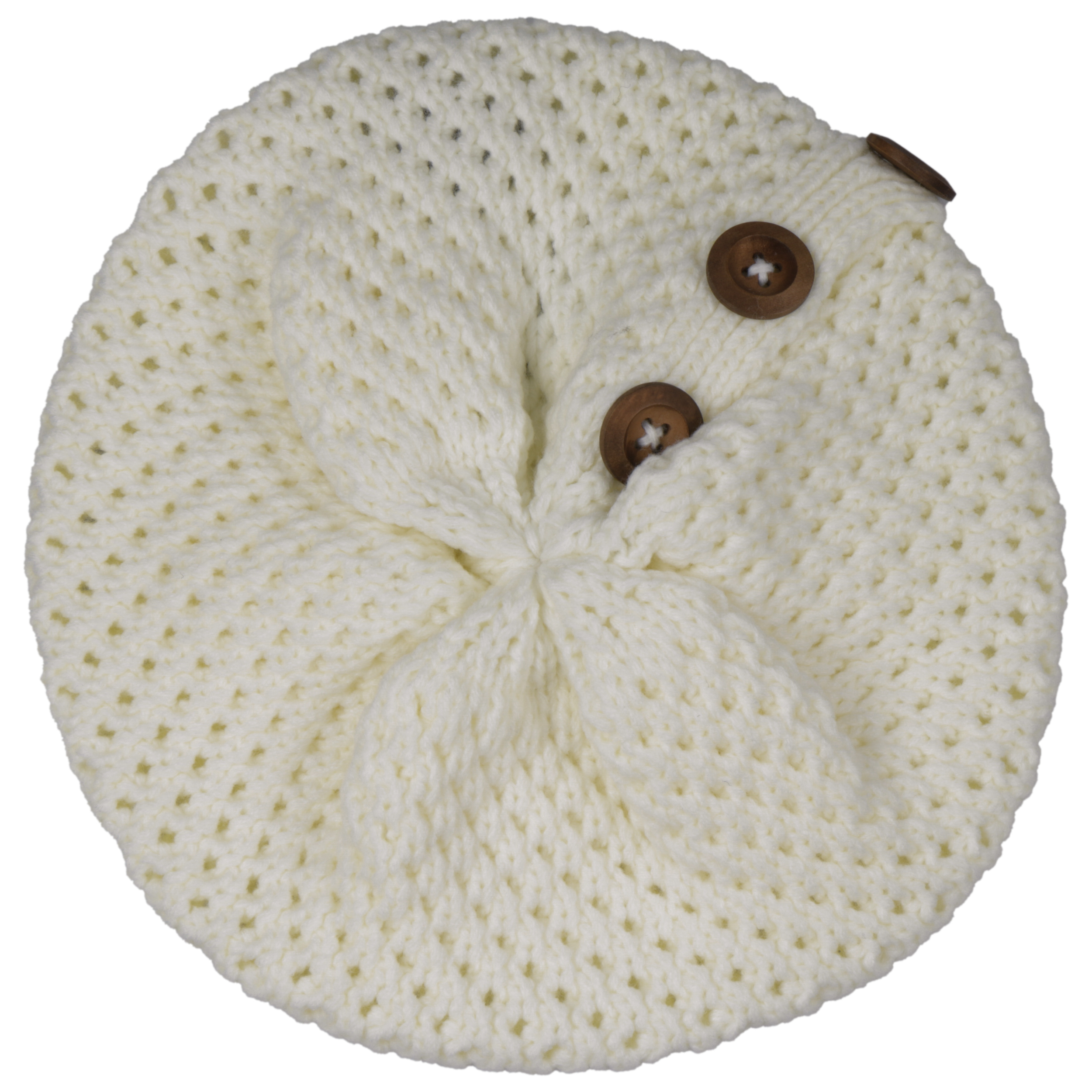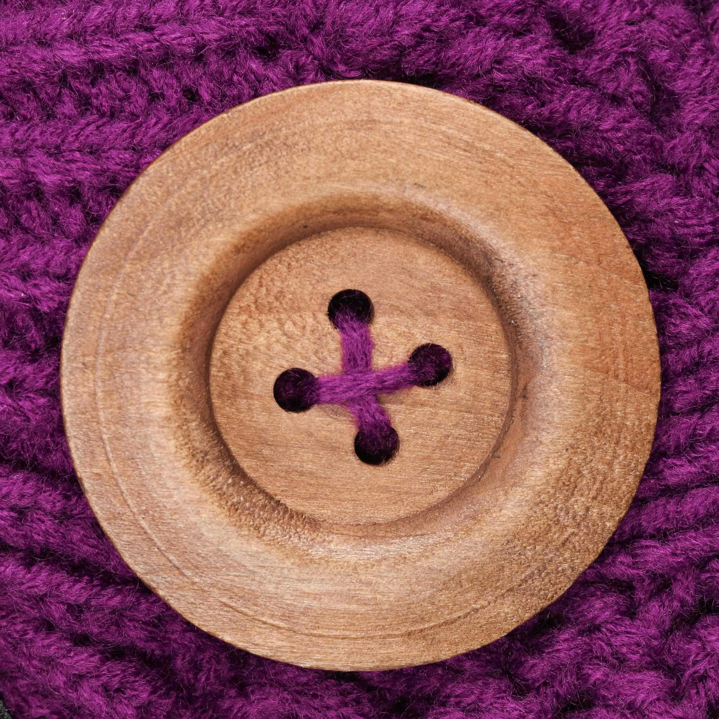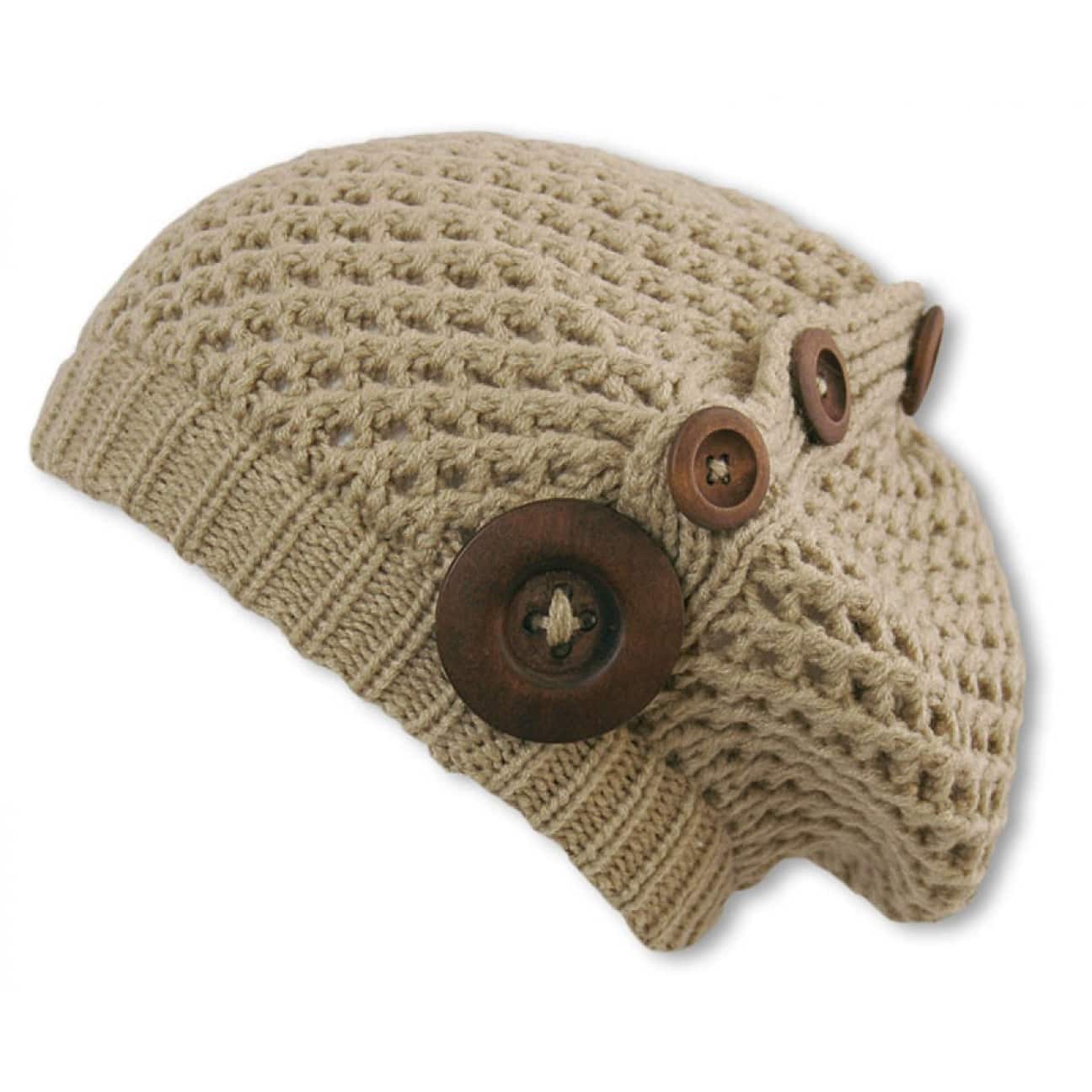 Genuine wool buttons to decorate this fashionable "alp design" hat. The coarse knit beret is comfortable and definitely on the crest of fashion.