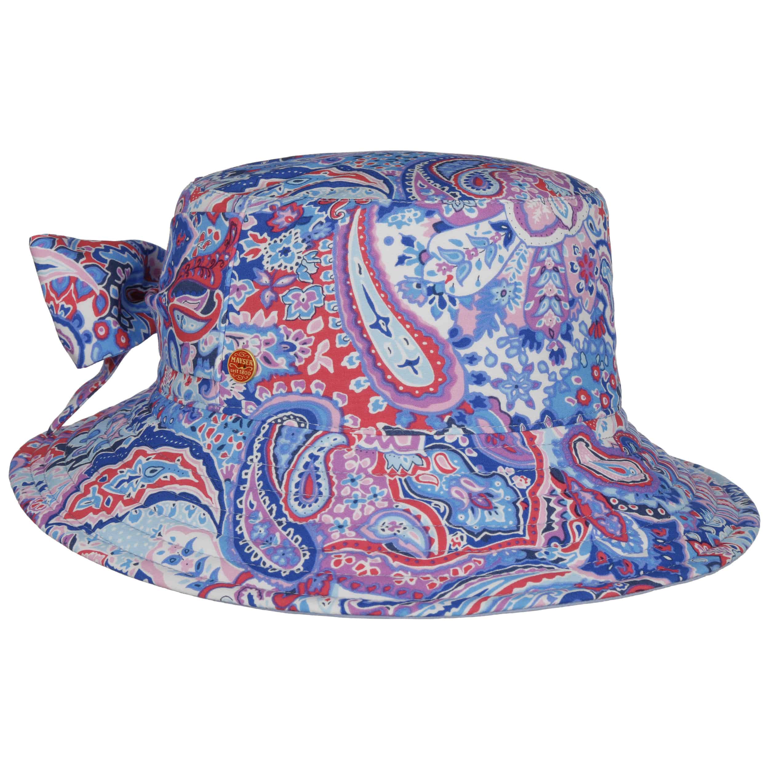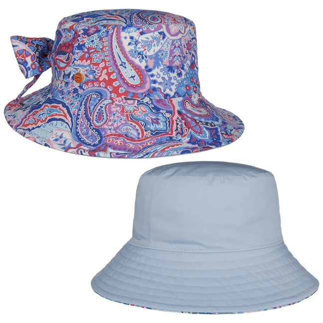 As long-established German company founded in 1800, Mayser has been standing for classic and elegant headwear ever since. First-class workmanship, high-quality fabrics and subtle plays of colours have always been typical characteristics of Mayser's collections. With its officially licensed Indiana Jones hats and sometimes extravagant combinations of styles and fabrics, Mayser knows how to enhance the wardrobe of both elegant men and fashionable women.- New Malu Paisley Reversible Hat by Mayser - blue 1