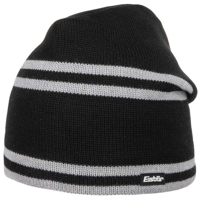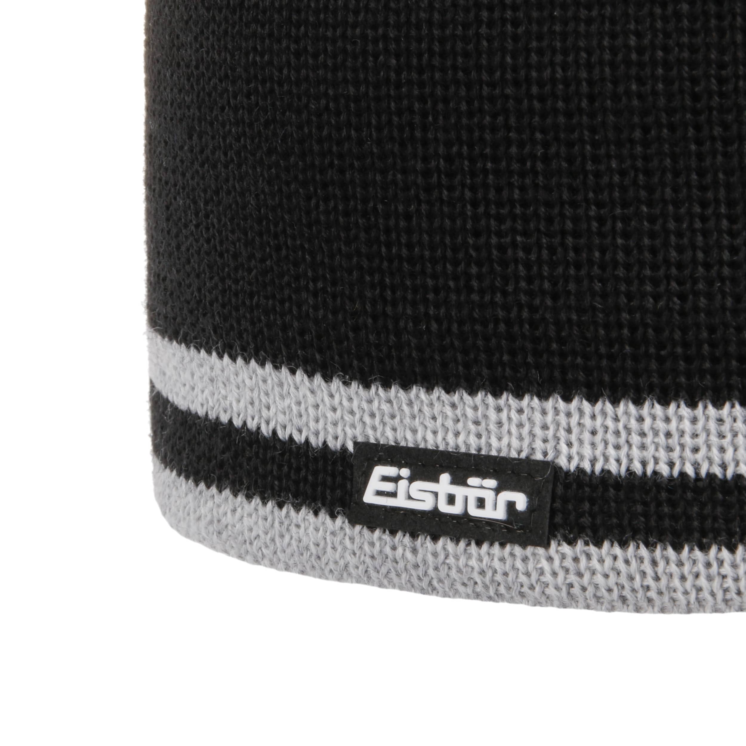 As official supplier of the Austrian national ski team, Eisbär makes high-quality sports hats, headbands and pullovers, using warm and functional knit and fleece fabrics. The identifying feature of the family-owned enterprise from Austria are extraordinary and funny styles in loud colours.- Noxino Knit Beanie by Eisbär - black-grey 1