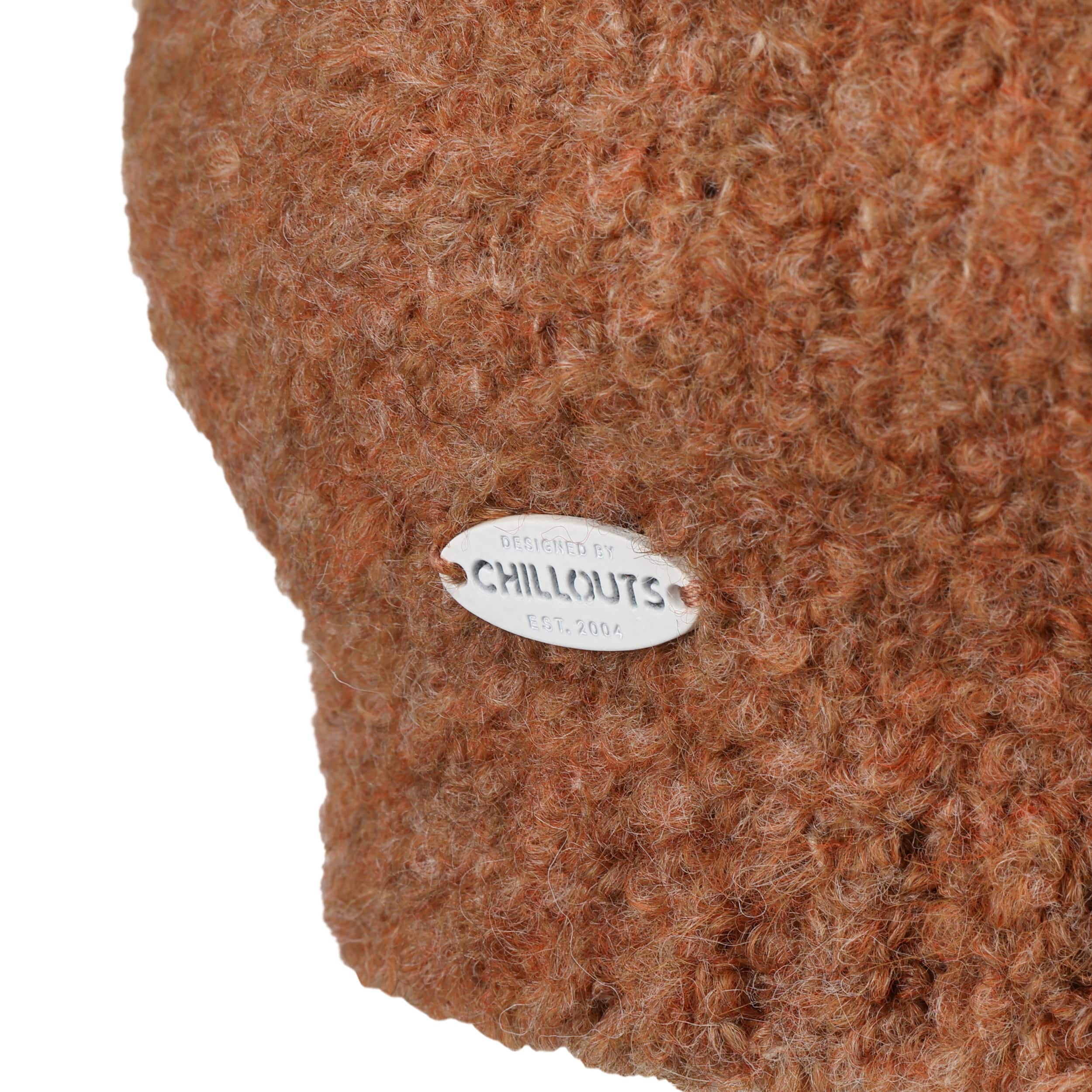 The young Bavarian company stands out from the crowd with chunky knitwear and trendy army caps as well as docker hats and bandanas. Exciting colours and fashionable skull, tattoo and ethno styles are presented in universally wearable forms.- Odett Bouclé Beret by Chillouts - rust 1
