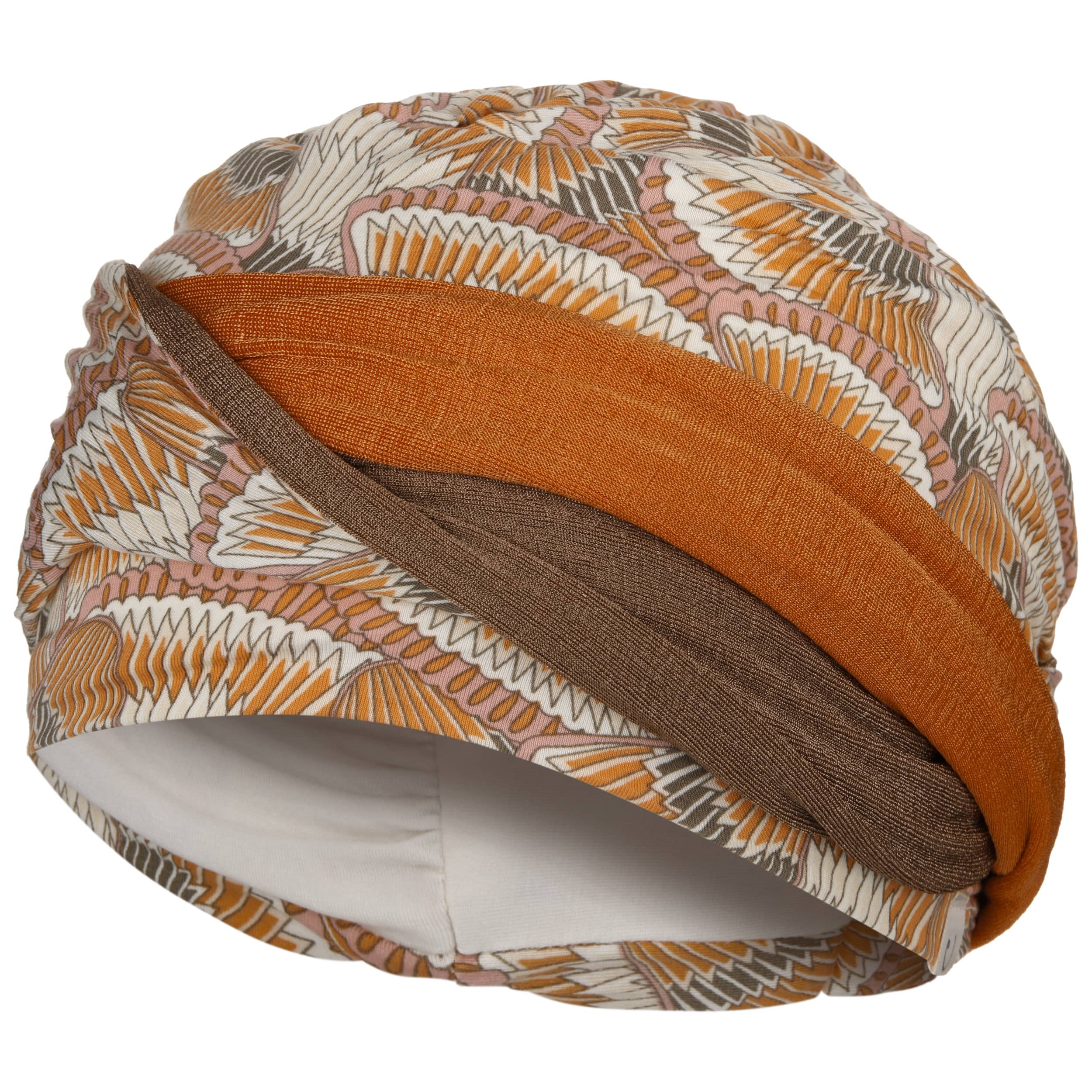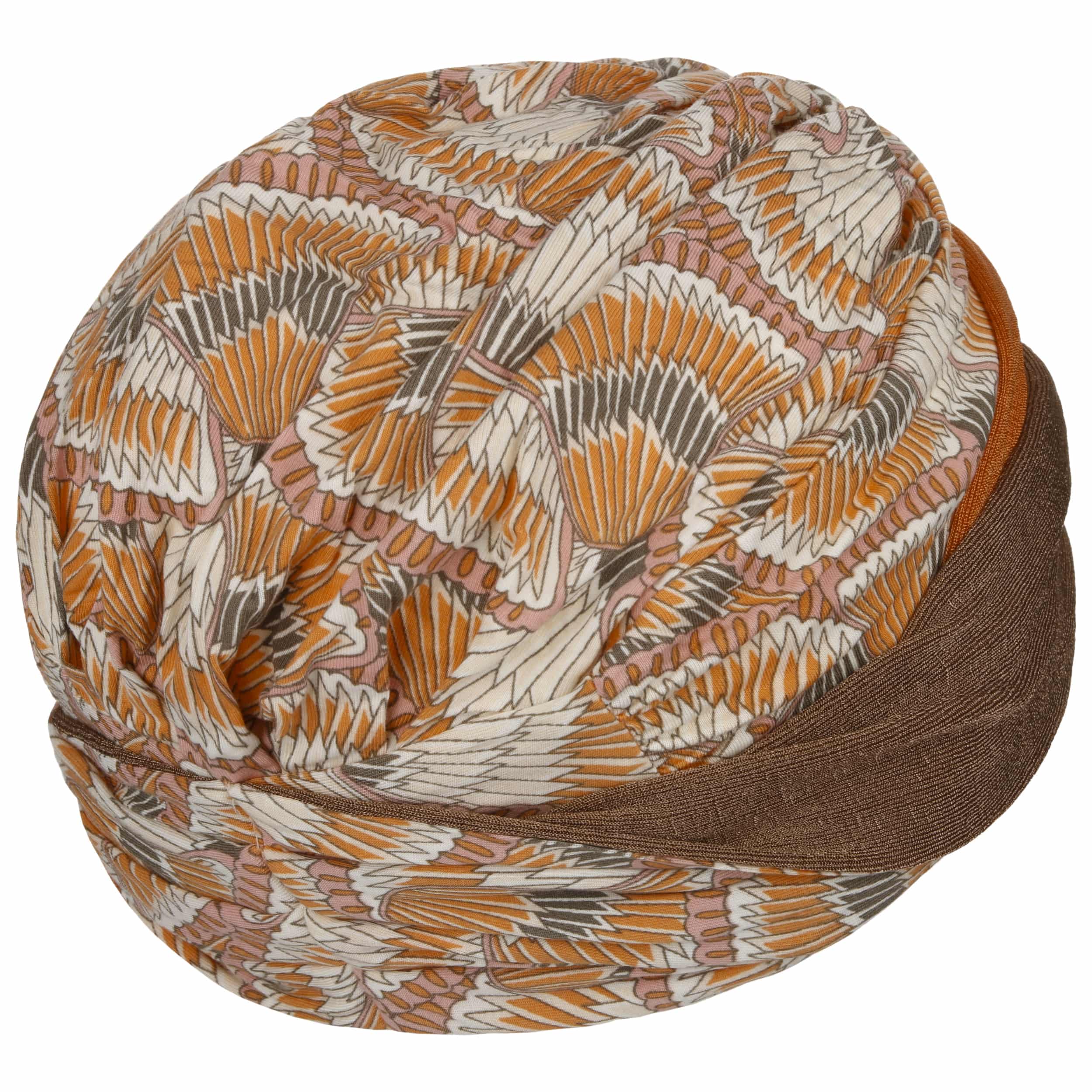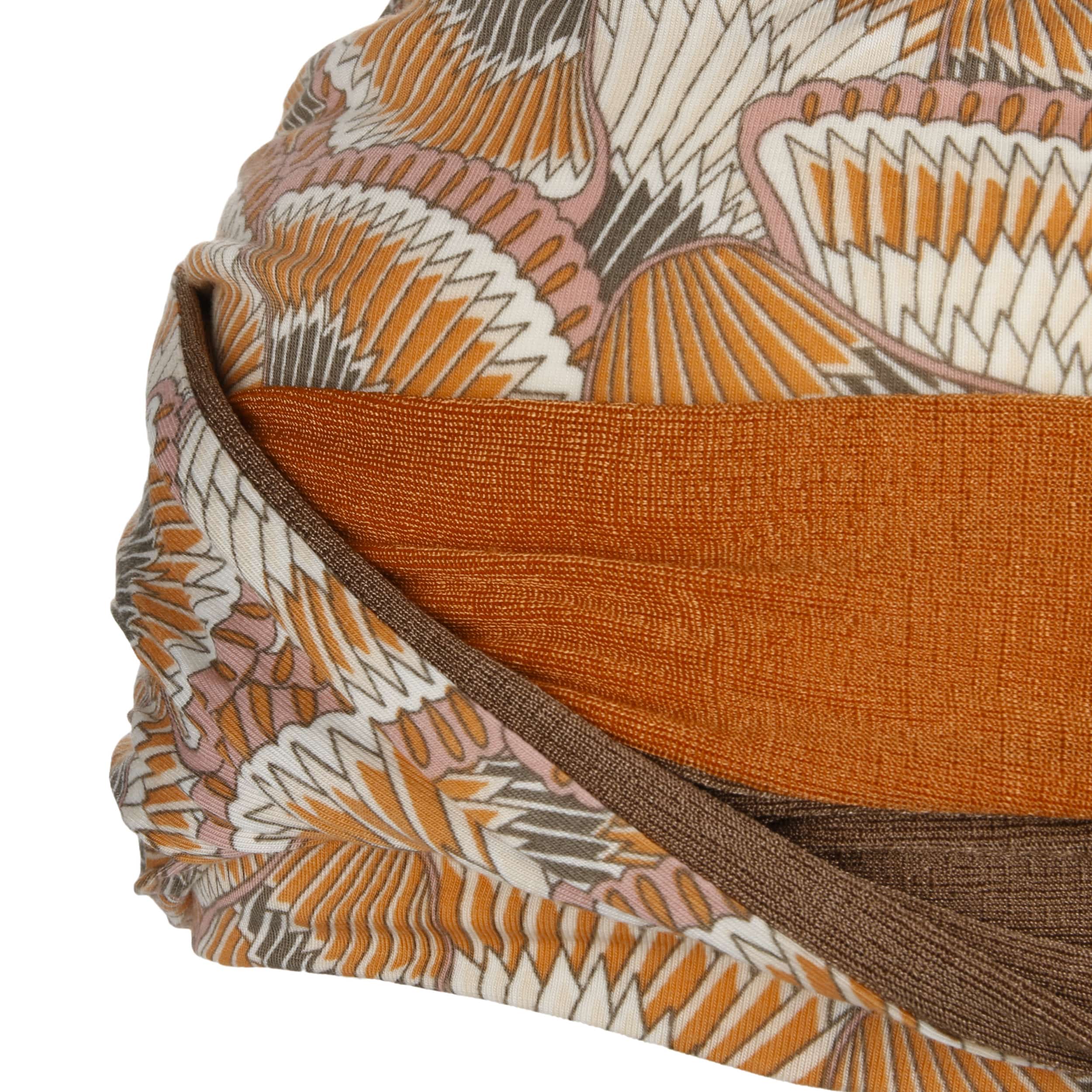 The charming turban from Christine Headwear is made of soft viscose from Caretech® bamboo and has a breathable, skin-friendly fit. The bamboo fibres have a moisture-regulating and antibacterial effect. This makes them perfect for long-lasting comfort. The supple layers of fabric gently wrap around the head. The harmonious interplay of warm orange and earthy tones sets elegant accents.