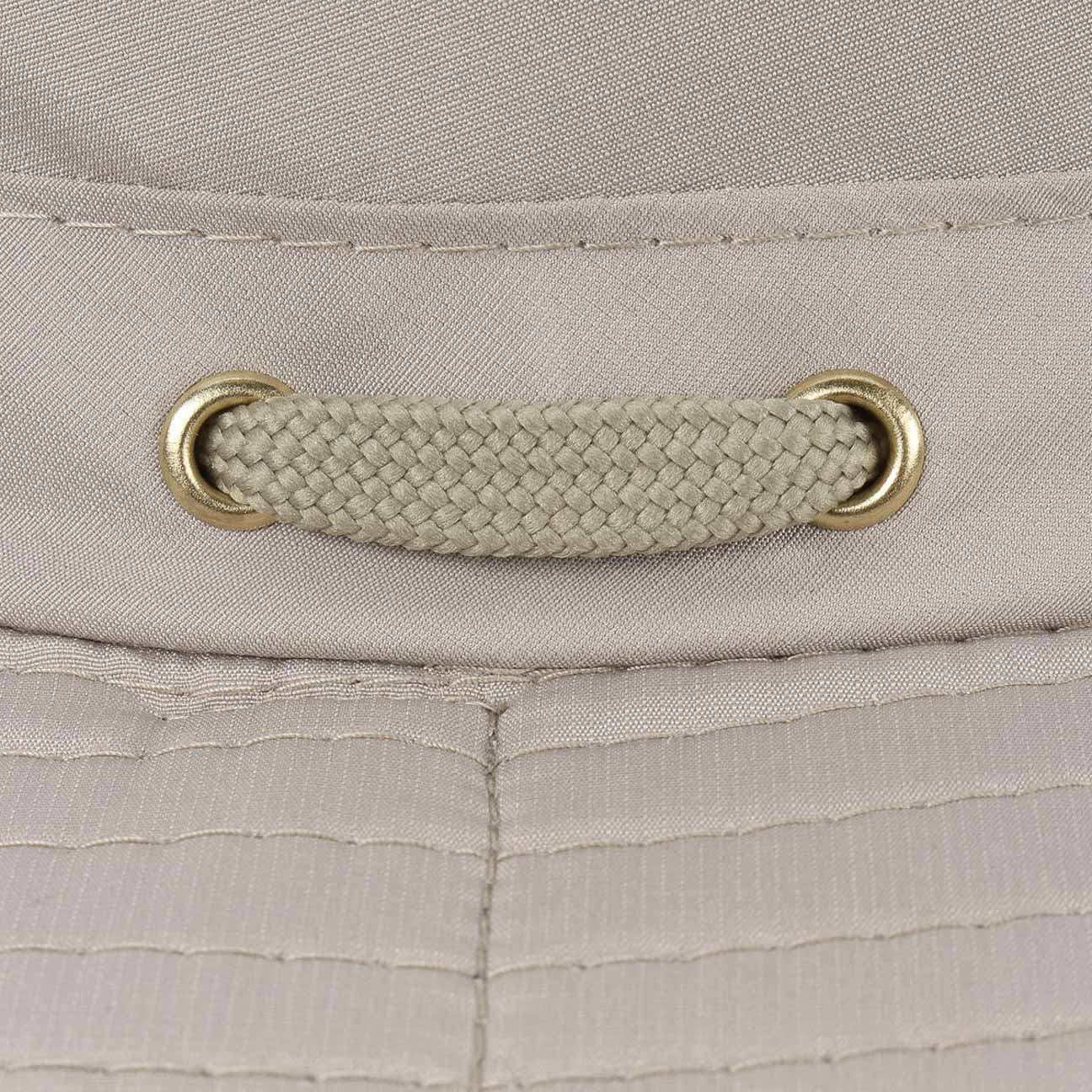 An outdoor hat which overcomes nearly any challenge. The wide brim, integrated UV filter and generous neck scarf protect against too much sun. The neck protector can be stored in the back of the brim when not in use. The length-adjustable chin strap keeps the hat firmly in place during strong winds. This sun hat is the best choice even when fishing or sailing, as it will not sink thanks to its buoyant properties. Another plus: A fluffy, brushed fabric lining band and hook-and-loop closure fastened pocket in the crown.