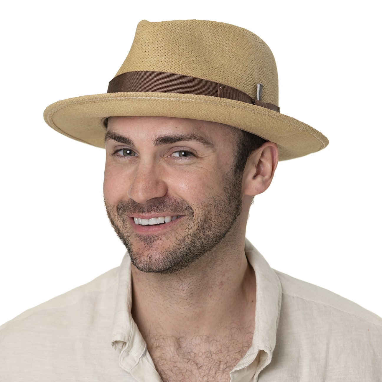 The straw hat from Bailey 1922 counters the particularly hot days of the year with its innovative features. Paper straw with LiteStraw® finish gives it soft and flexible quality, a special coating makes the summer hat waterproof. The Dri-Lex® lining absorbs moisture for a comfortable head climate. The wide grosgrain ribbon with feather and signature hatpin is responsible for the striking look.
