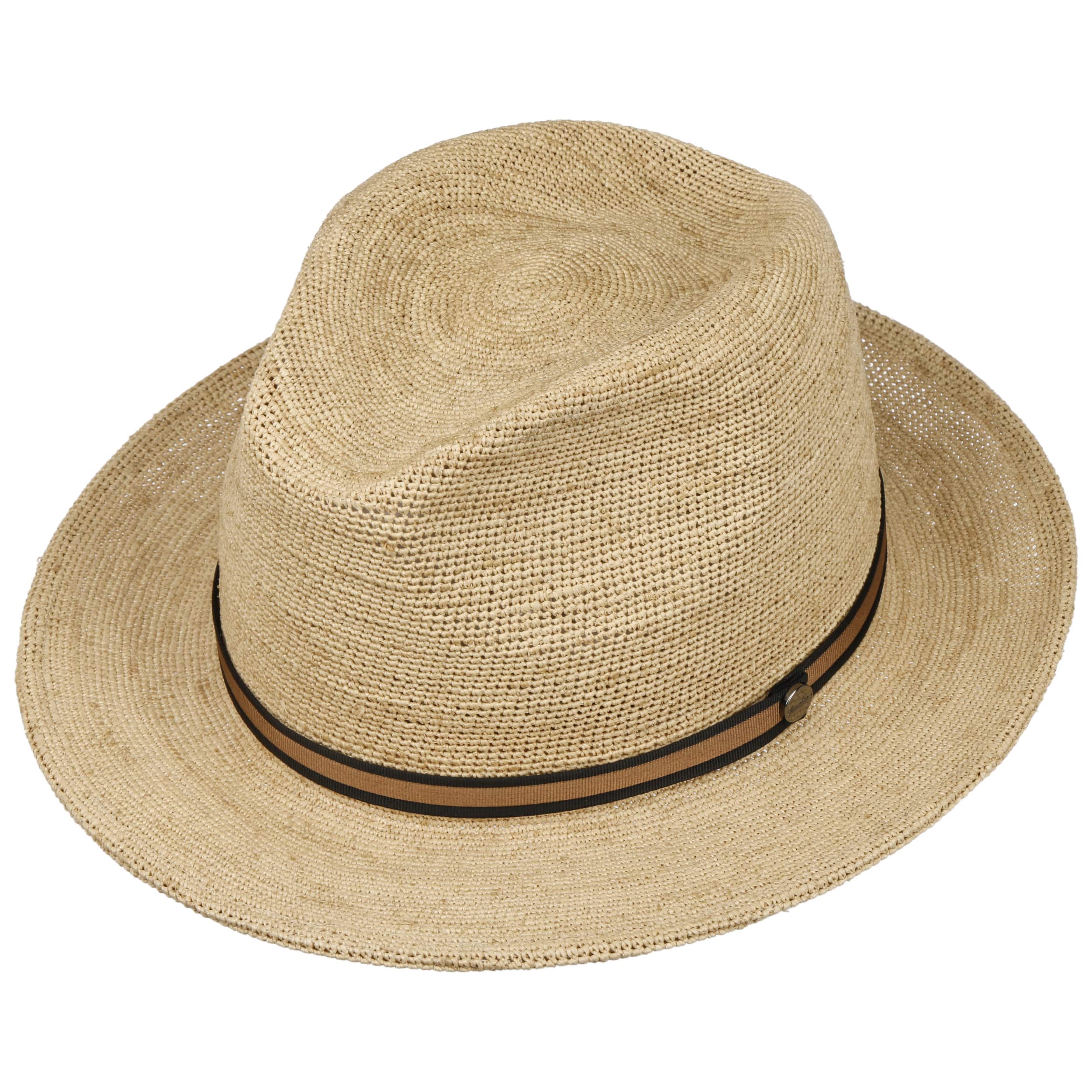 The Italian high-quality brand became famous for its fedoras made from precious lapin and beaver fur. Since 1857, Borsalino has been producing finest handmade, water repellent and ultralight headwear. International celebrities such as Al Capone and Humphrey Bogart made the "hat of the hats" a timeless classic. The company, meanwhile, has added other styles to its selection, e.g. first-rate flat caps and fashionable Panama hats as well as elegant women's styles.- Packable Crochet Straw Hat by Borsalino - nature-brown 1