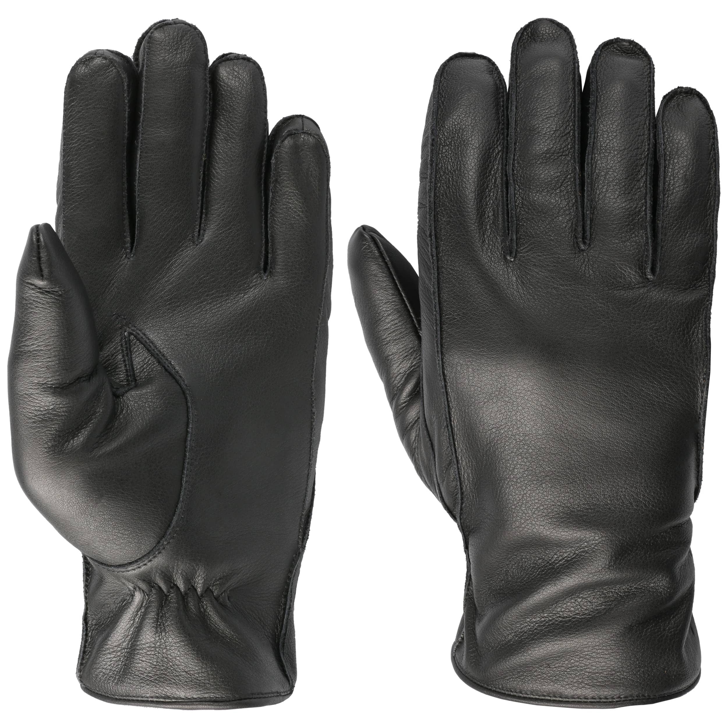 Supple rustic leather with a smooth surface makes up these gloves from Stetson. The fleece lining inside provides extra warmth and a dose of cosy comfort. To make sure no cold winds get through, these plain-coloured leather gloves come with a stretch lining band and gathering on the inside of the wrist. They look just as good with a casual everyday outfit as they do with elegant attire.