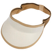 Beautifully soft, packable Panama visor with constrasting piping and terry cloth stretchband for perfect fit.