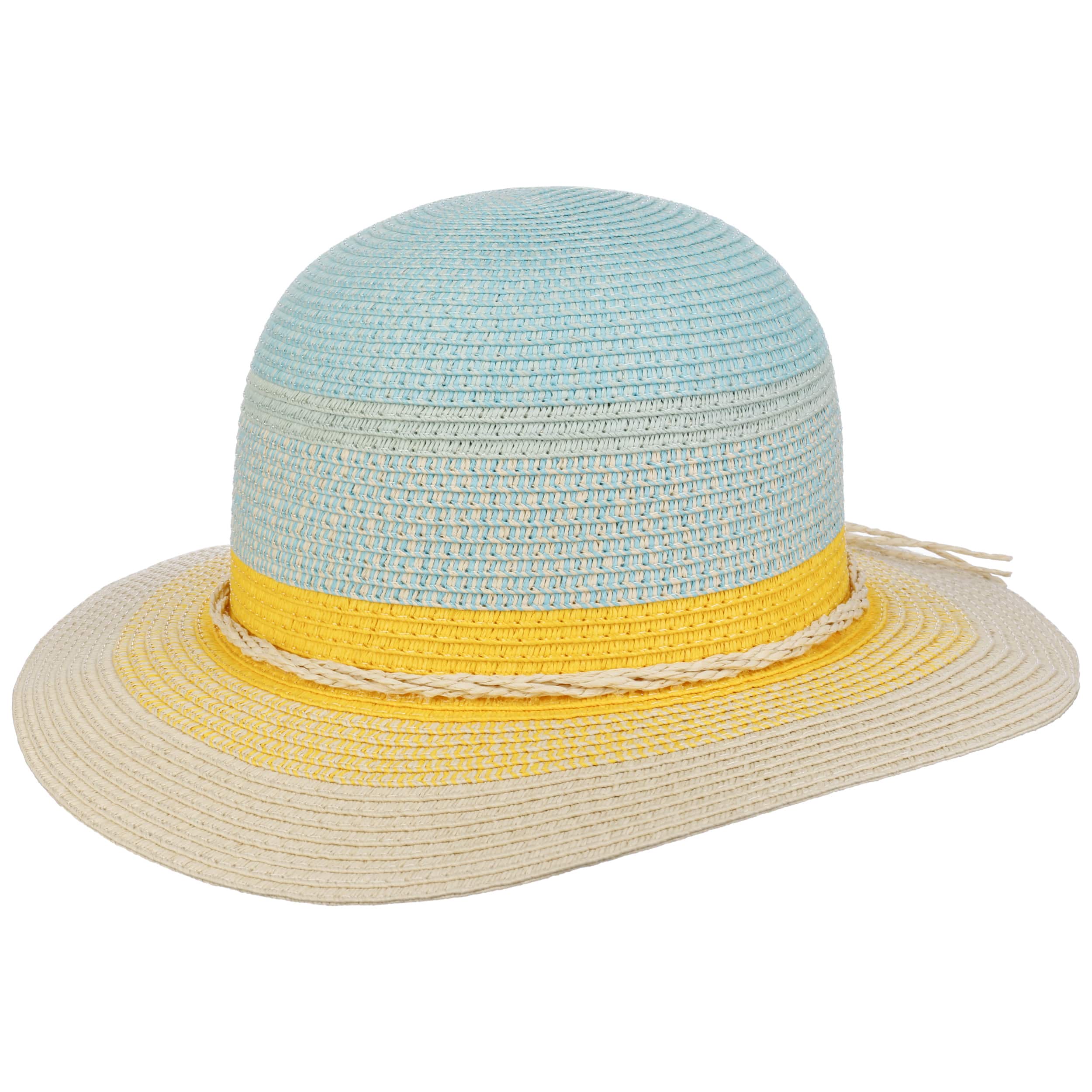 Made of 100% paper straw, this girls’ hat enchants with a lovely colour gradient in the colours of summer. Sun, beach and sea are reflected in it and create a cheerful, upbeat look. Whether with a dress, jeans or swimwear - the multicoloured slouch hat with the 8 cm wide brim is always a good choice when it comes to fashionable sun protection.