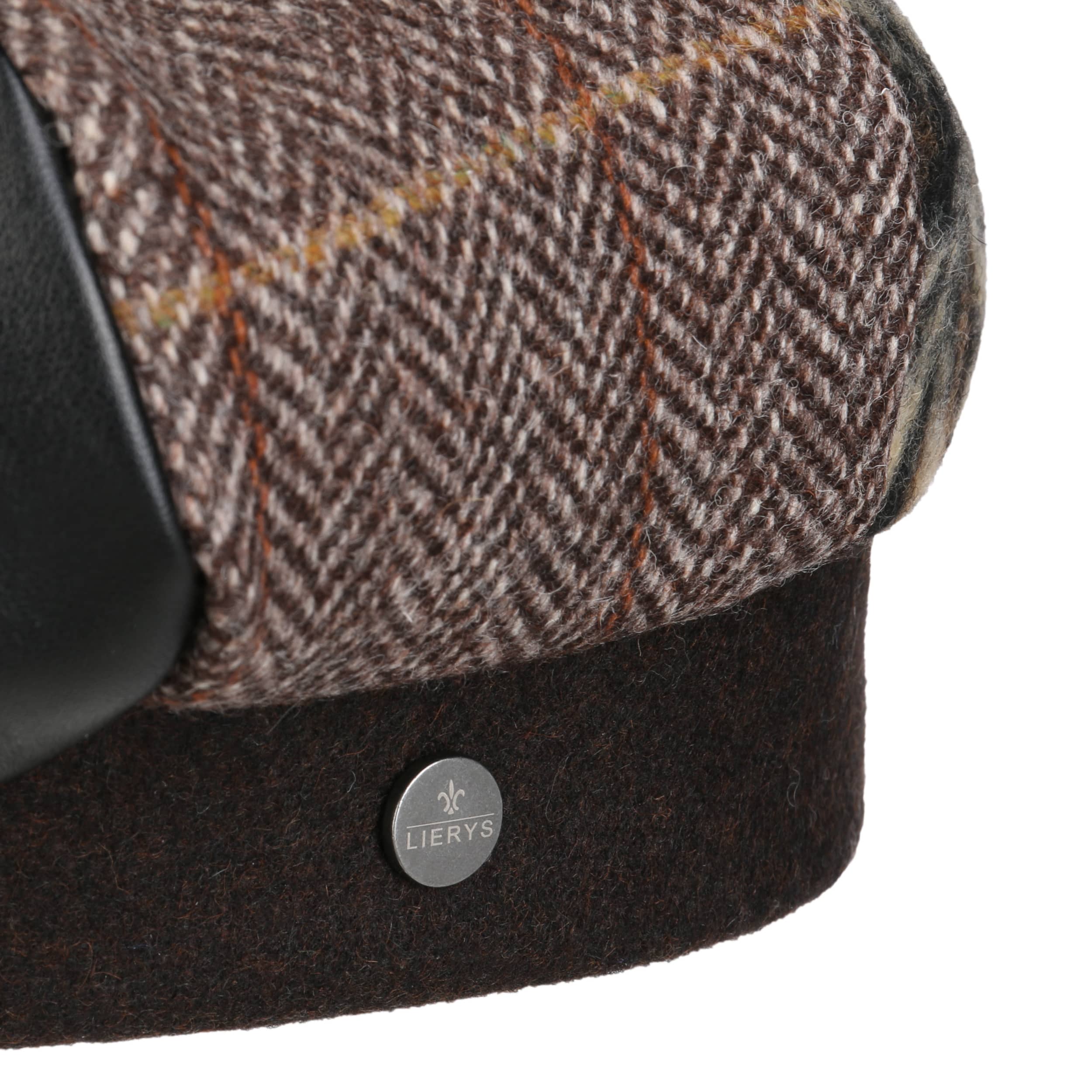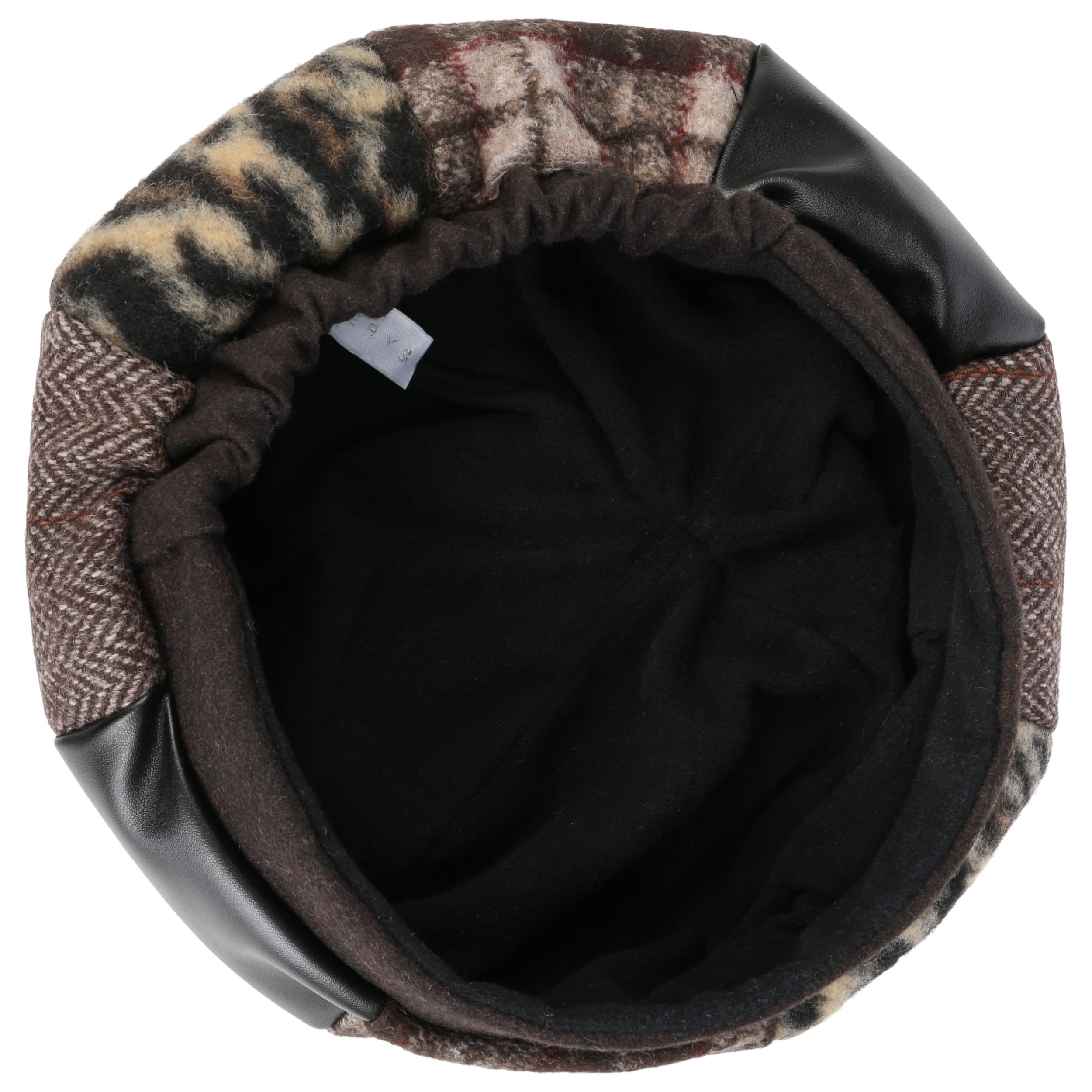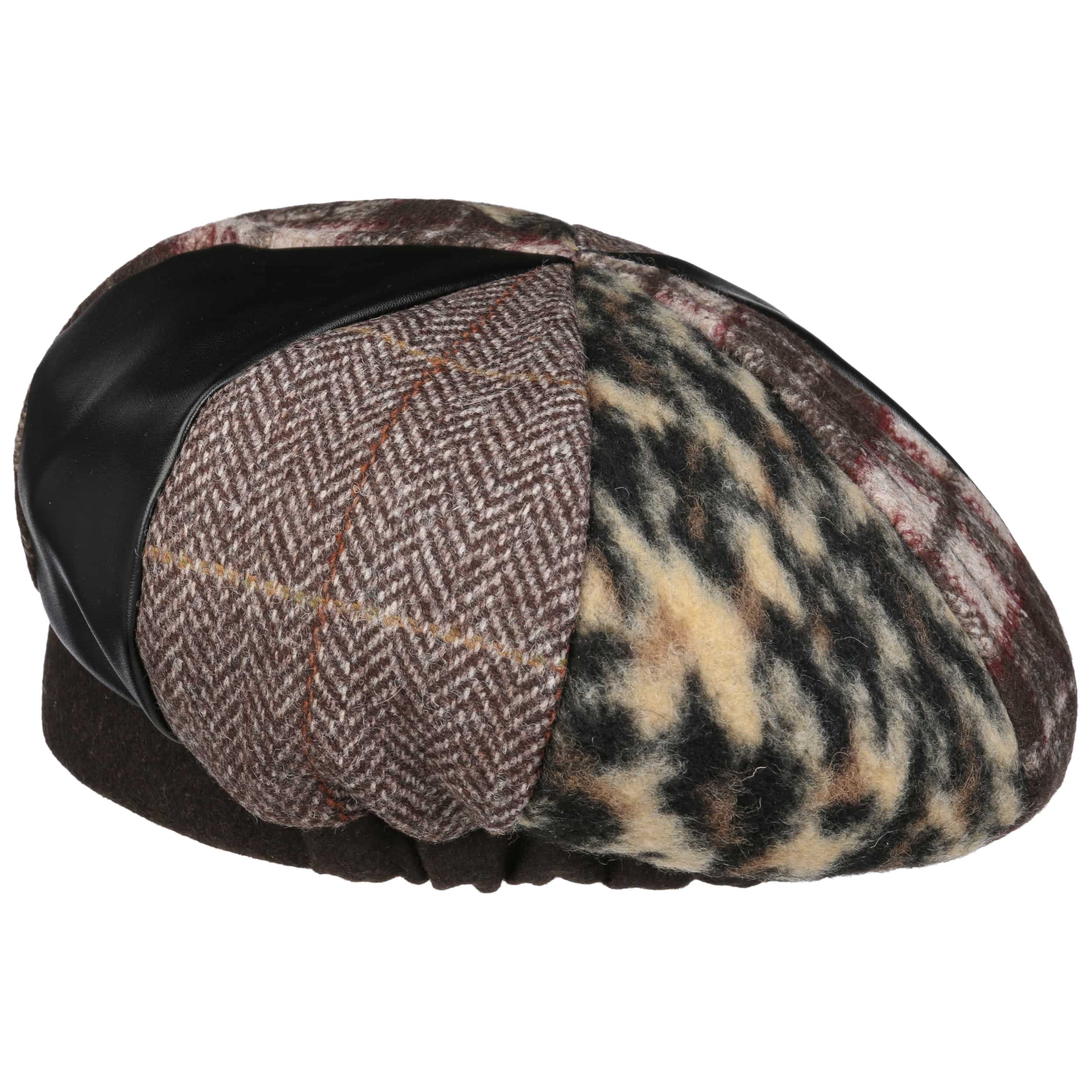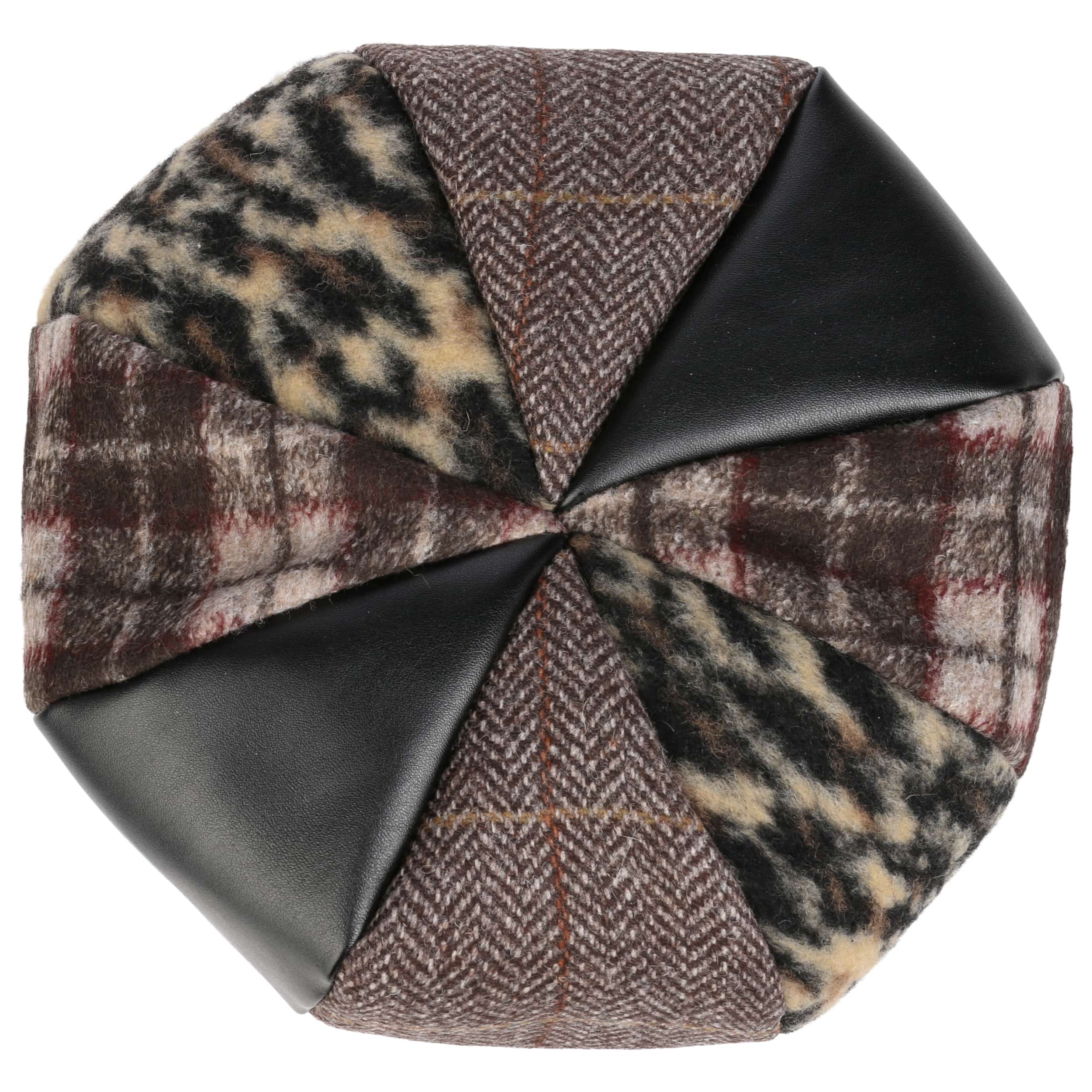 The label with the iris logo has dedicated itself to making modern, stylish and comfortable headwear along with matching accessories. Baseball caps, Trilby hats and Bogart hats have been made into timeless designs that give an outfit a classy splash of colour and bring a smart cut to your headwear. High quality knitted sets, which are available individually as beanies, peak pull on hats, Laplander hats, headbands, scarves, gloves etc., discreetly accentuate each lady’s or gentleman’s individuality. From woollen hats to flat caps, Lierys accessories can be worn in endless fashionable combinations.- Patchwork Basque Beret by Lierys - brown 1