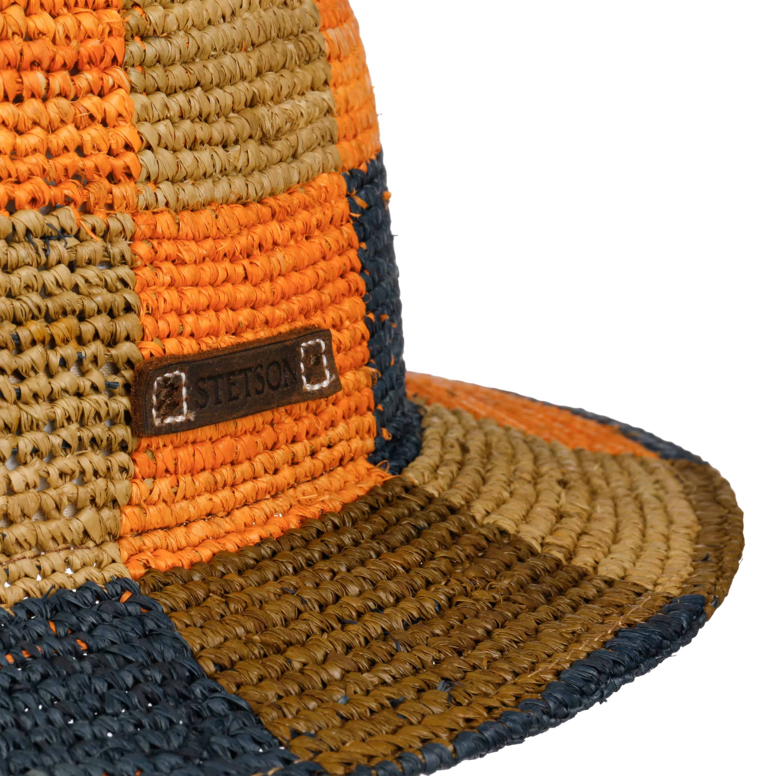 This distinctive bucket hat by Stetson is meticulously crocheted from straw for an airy feel and natural structure. The artisan construction, with its deliberate irregular textures, creates a vintage-inspired look with subtly weathered character. A pure cotton lining enhances comfort for warm days in the garden, on holiday or by the water.