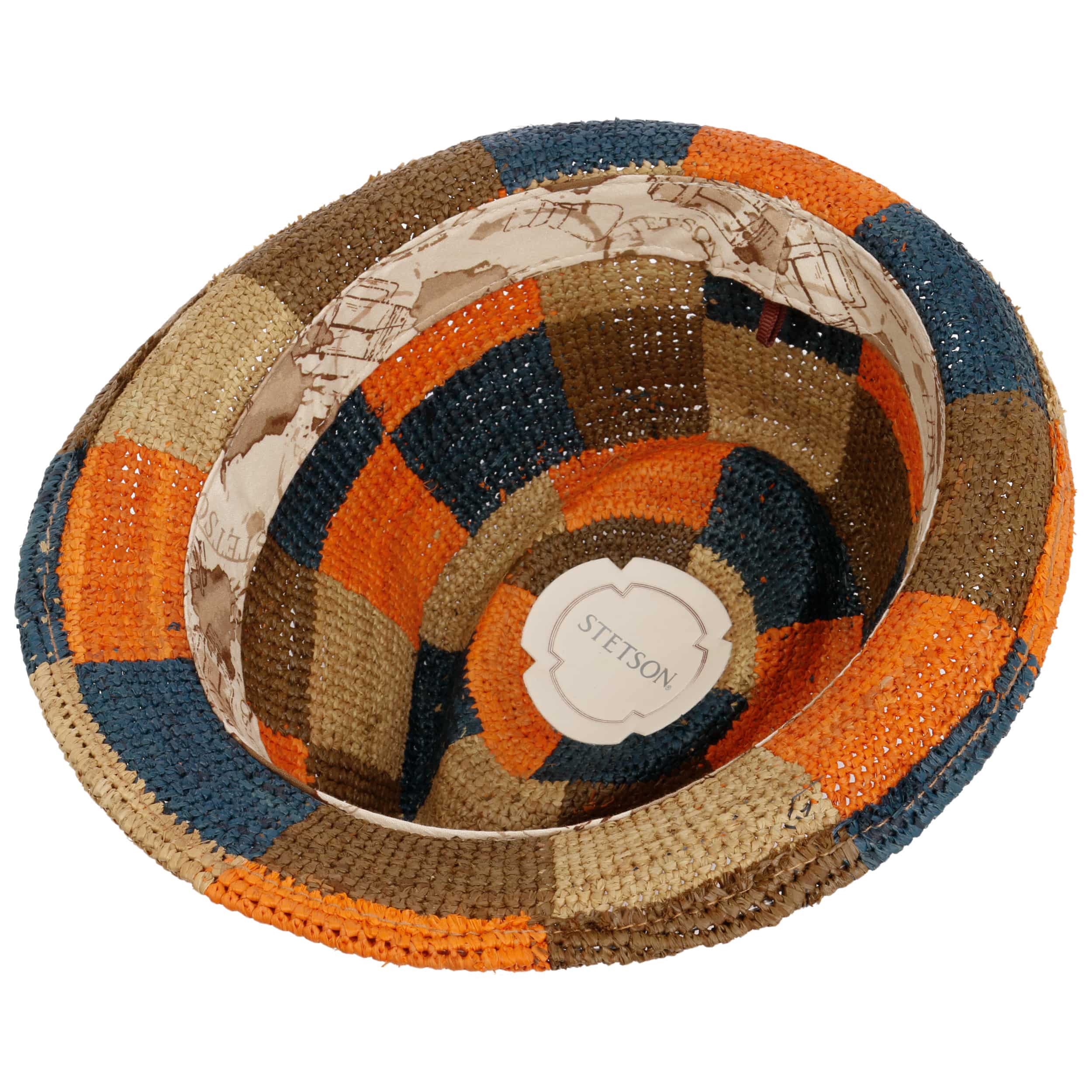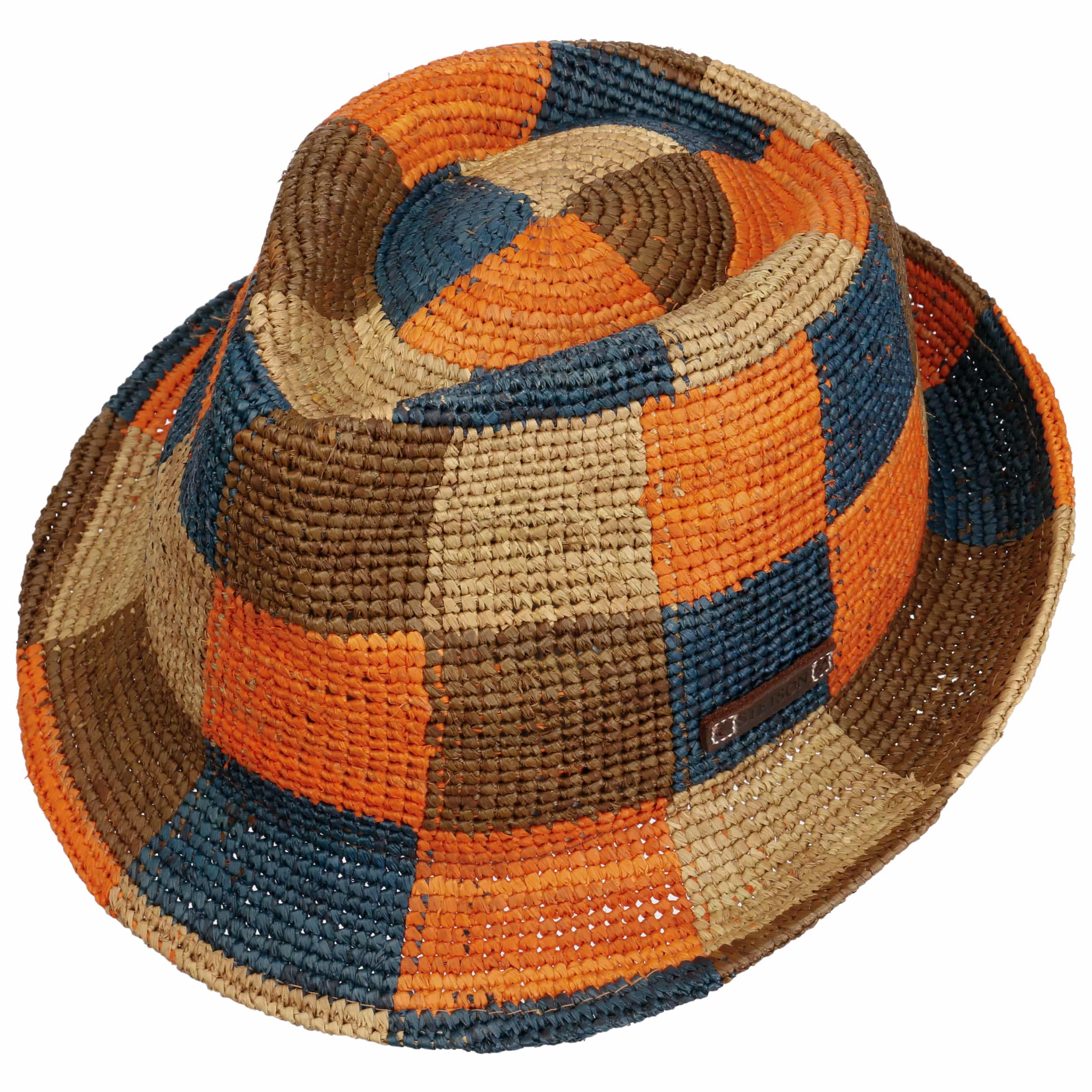 This trilby by Stetson showcases traditional hand-crafted quality, created by skilled artisans for a refined finish. Its crochet patchwork design in natural straw feels airy and light to wear, while the pure cotton lining adds extra comfort on warm days. Intended irregularities in texture and occasional gently faded, uneven tones give this hat its distinctive, deliberately vintage appearance.