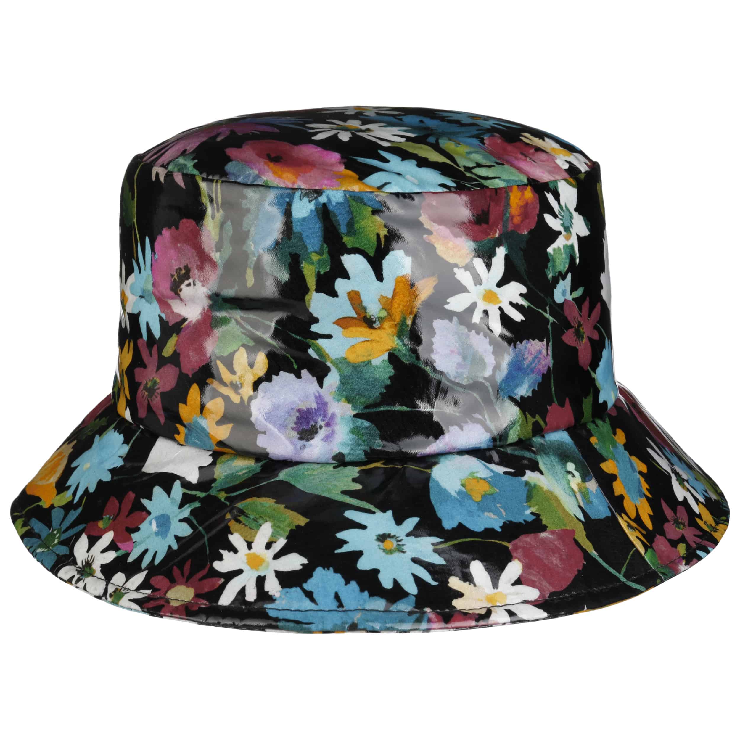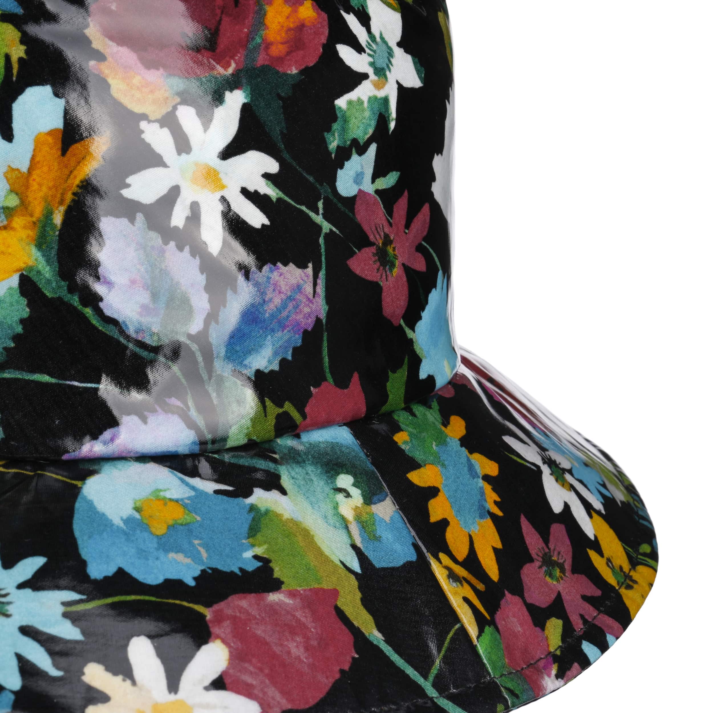 The GREVI brand has been manufacturing high-quality hat fashion since 1875, using traditional manufacturing techniques which give premium quality workmanship the highest priority. This is made possible largely by the fact that the elegant hats are manufactured by hand, to enable a perfect fit. The renowned label has been producing his-and-her headwear for many generations, although despite the variety, they all have a clearly discernible common thread. GREVI delights its customers with stylish, highly elegant hats which are always focused on the current and modern trends in fashion.- Patent Flowers Rain Hat by GREVI - mixed colours 1