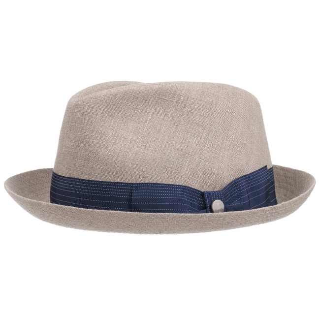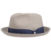 This plain-coloured player hat from Lierys promises gentlemen a stylish appearance with a modern Hollywood look. 100% linen and an understated turn-up brim guarantee breathable wearing comfort and reliable sun protection. A wide grosgrain ribbon with classic bow and metal pin surrounds the typical crown of this fedora hat.