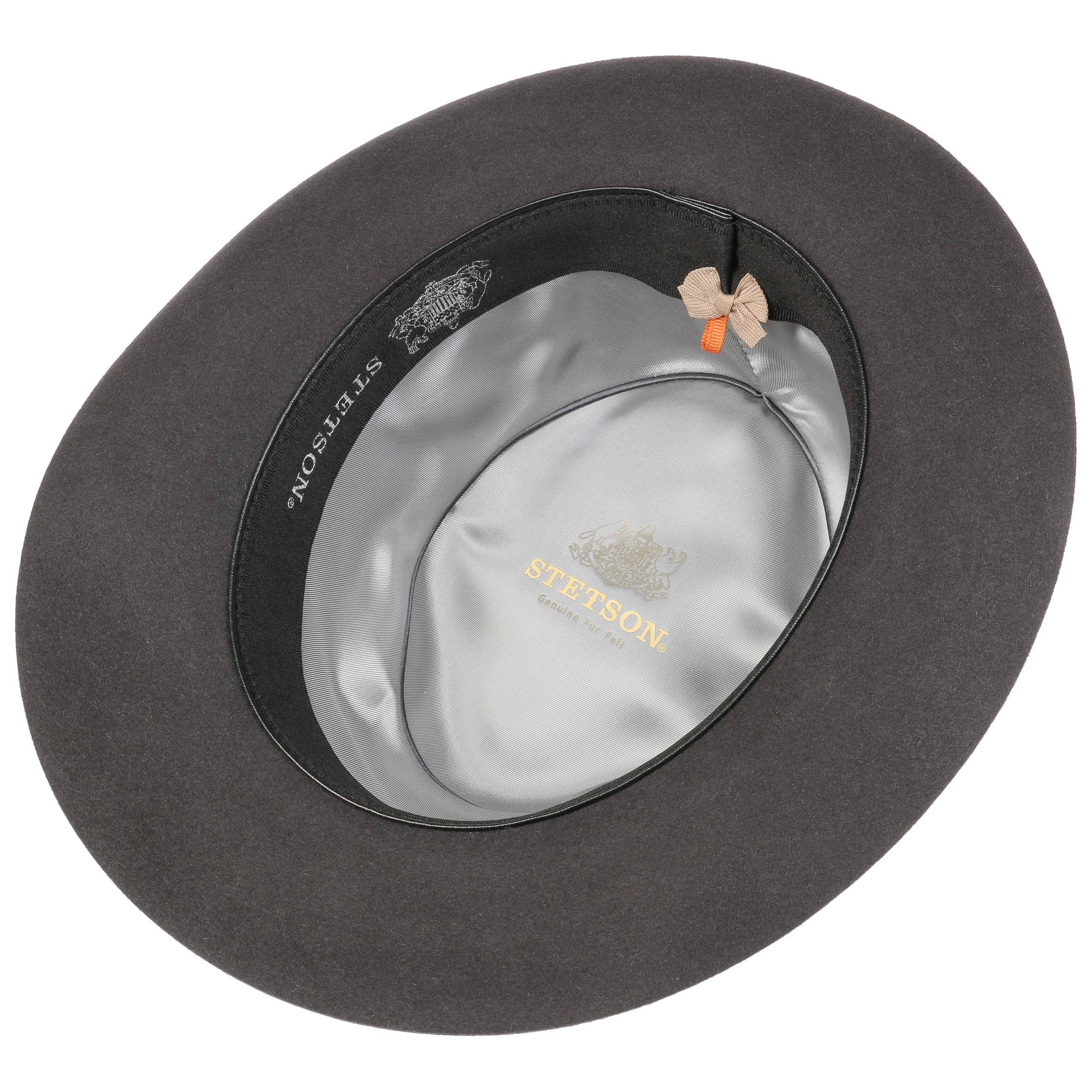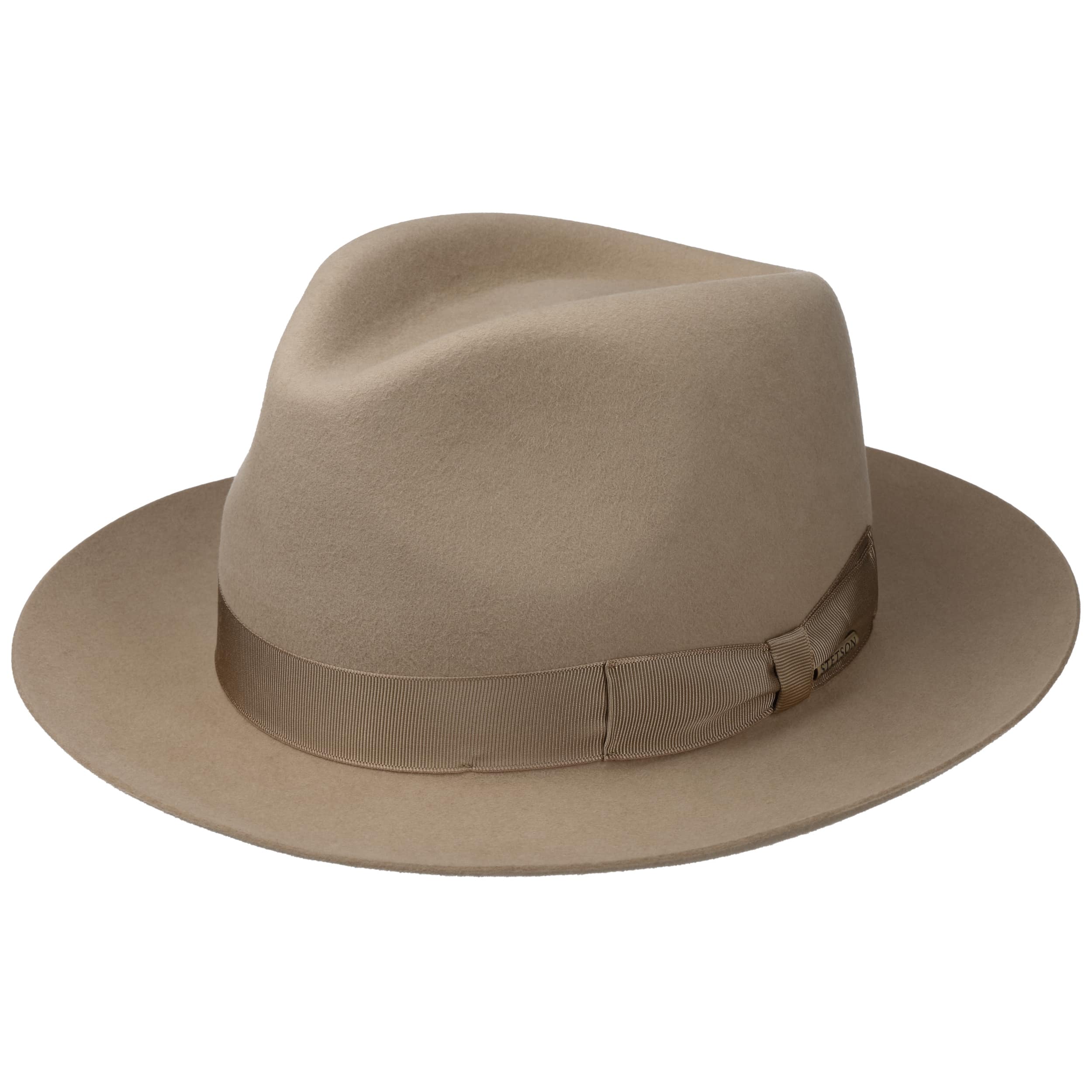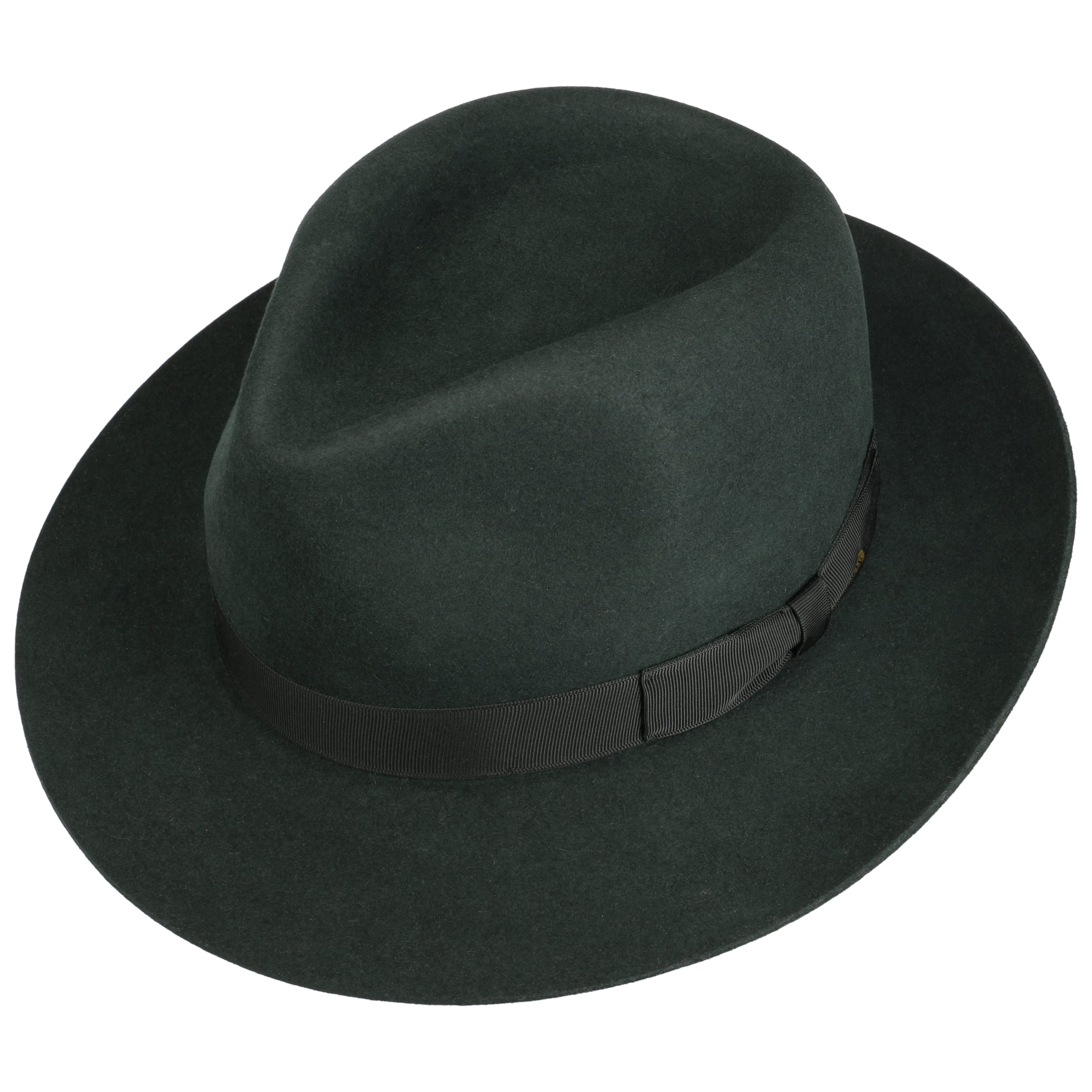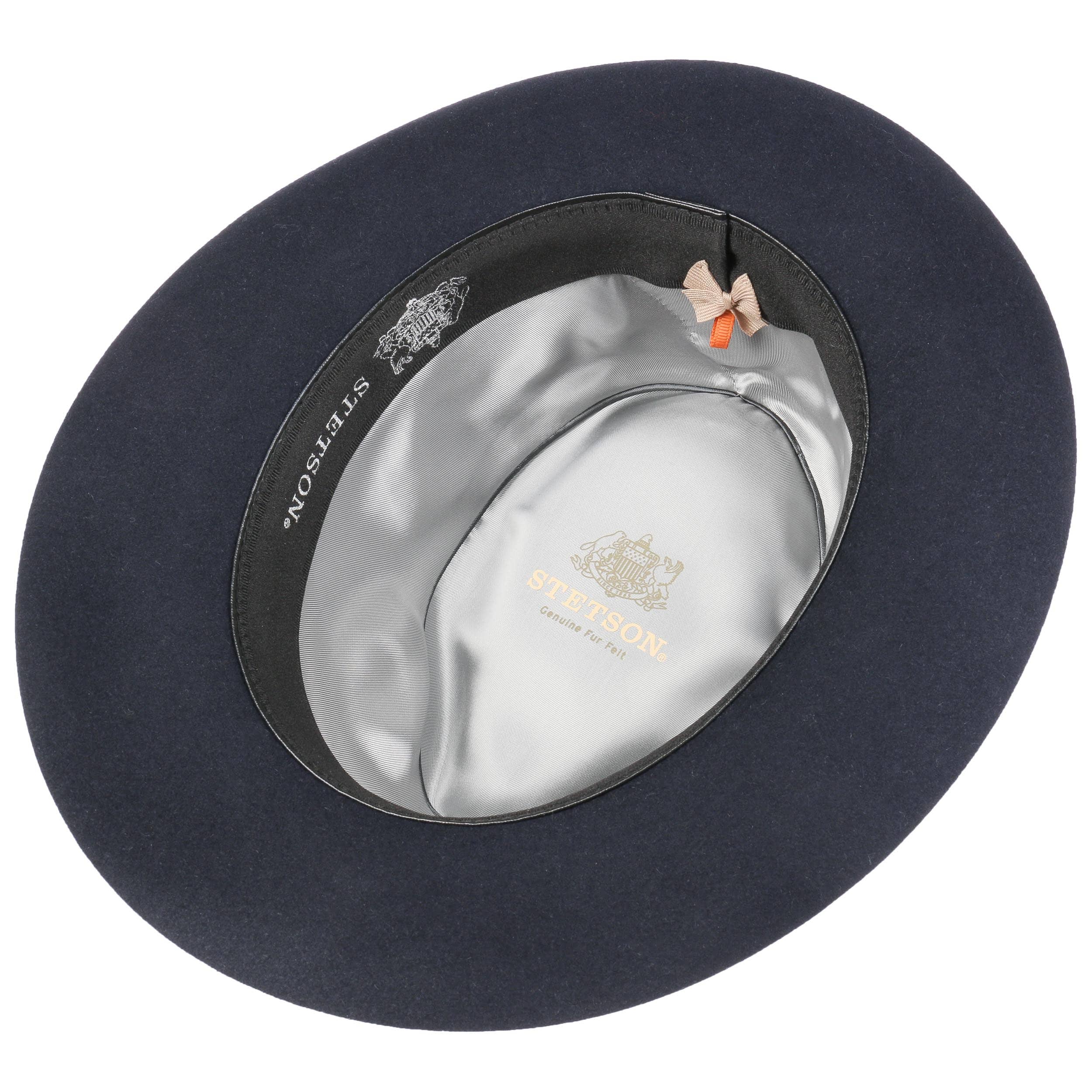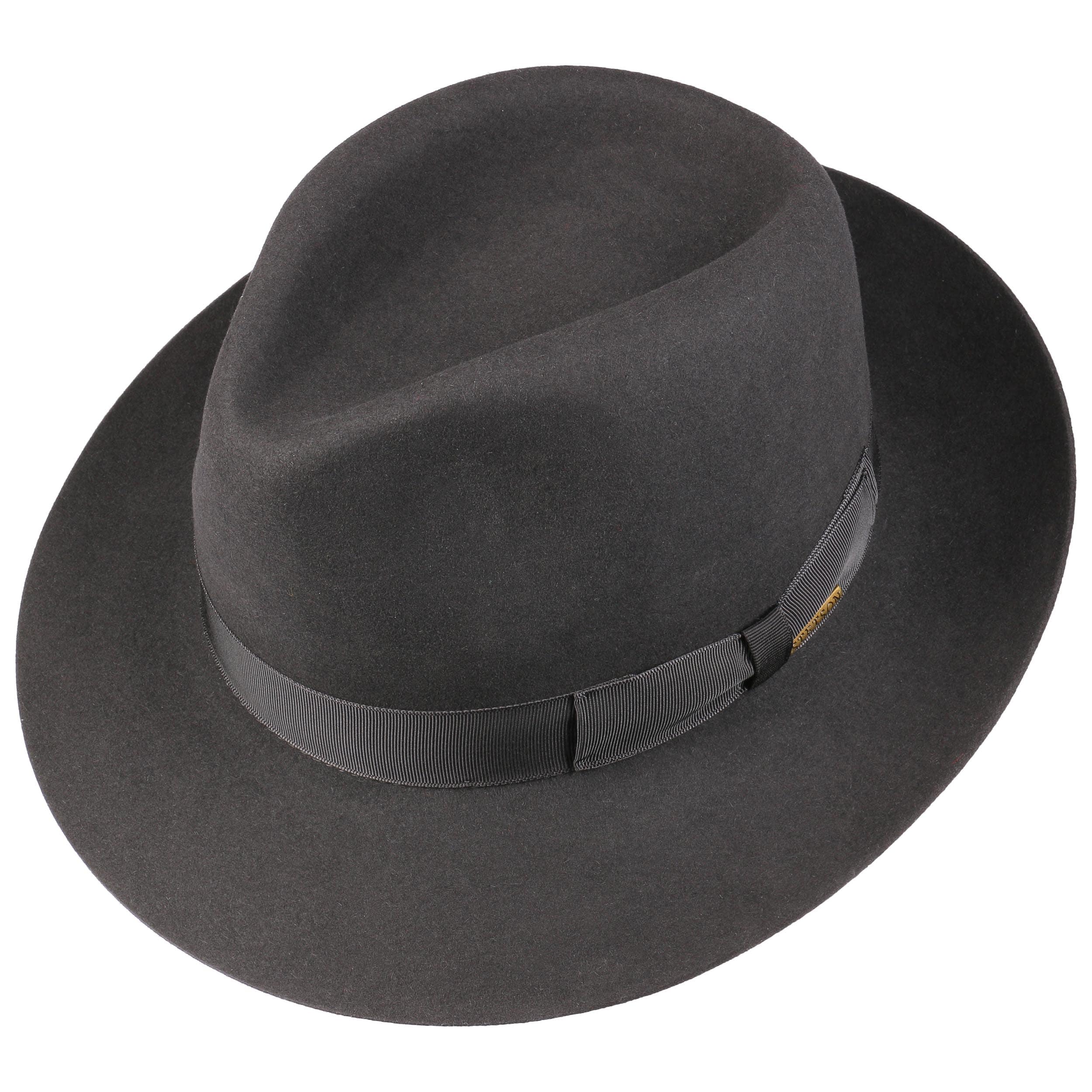 Made from extrasoft fur felt, this timeless Bogart style comes with a colour-coordinated grosgrain ribbon band and a fine satin lining.