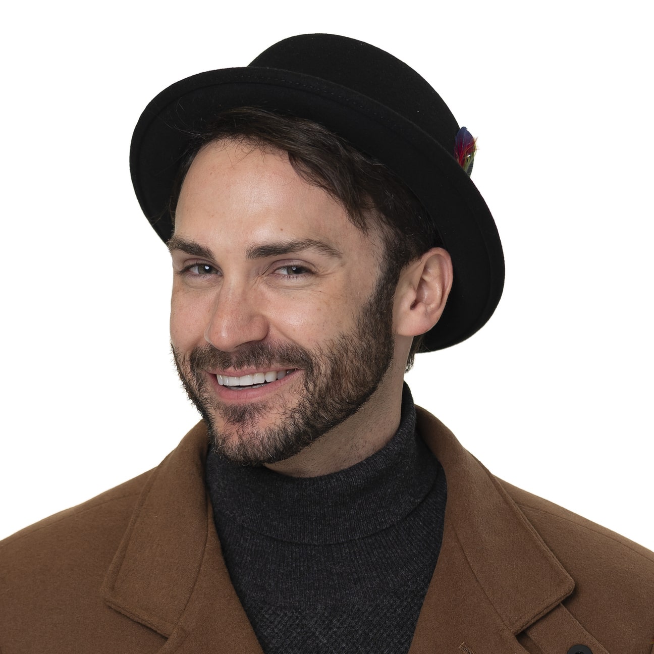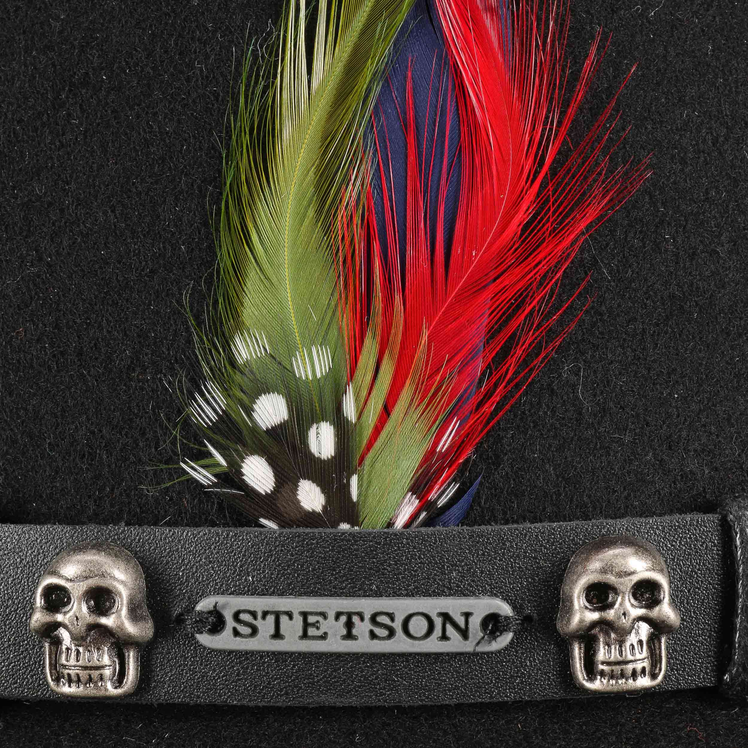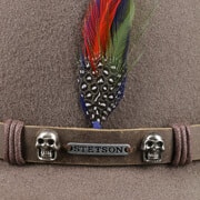 Wool felt with exceptional Asahi-Guard® properties makes this plain-coloured pork pie hat water-repellent and crushable. Above the narrow brim, the felt hat is encircled by a matching coloured leather trim, which gives it its charismatic charm, while the skilfully accentuated brand emblem reveals: It’s a real Stetson! An attractive feather finishes off the appearance of this robust and elegant hat that looks stylish and is reliable for everyday wear.