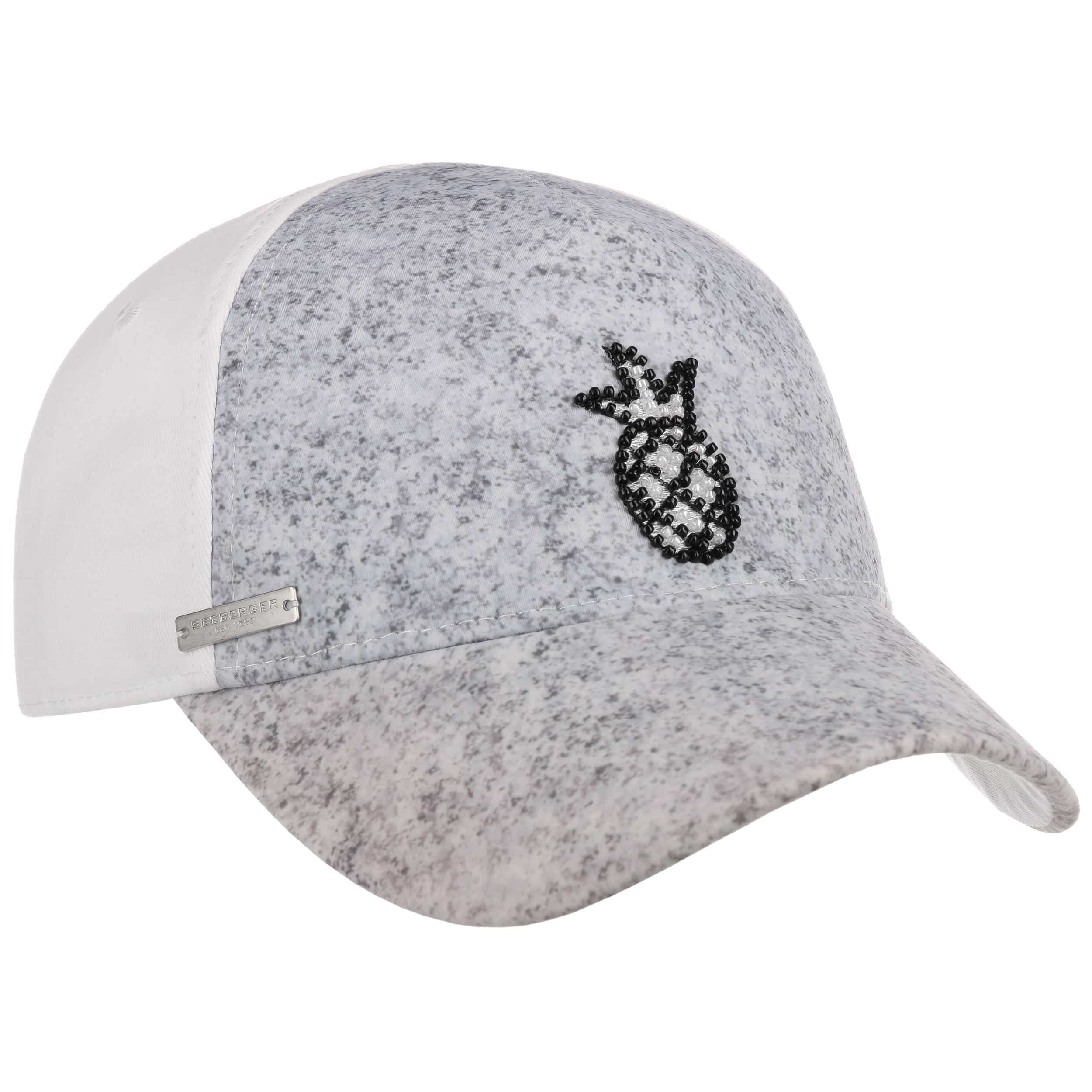 This high-quality ladies cap from Seeberger combines a modern, sporty design with a touch of elegance. The classic shape of a baseball cap creates the emphatically urban appearance, which characterises the stylish hat’s look. A pretty bead embroidery and a shiny metallic logo emblem give the look a stylish touch. Size-adjustable hook-and-loop-closure for the ideal fit.