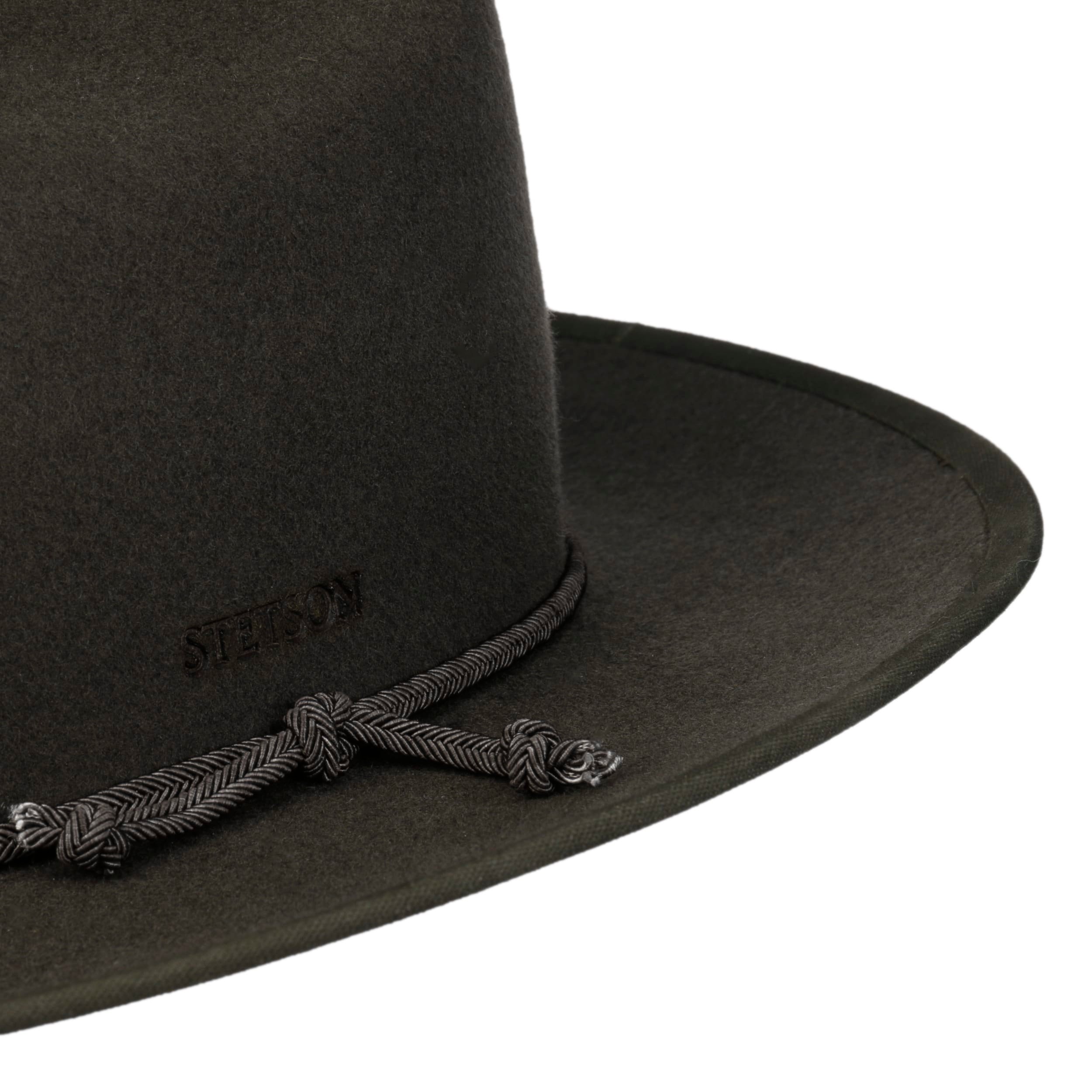 The classic Cattleman Western hat makes a striking statement with its characteristic crown and generous brim and is deeply rooted in outdoor tradition. The traditional Stetson brand combines robust, mulesing-free wool felt with an innovative Asahi Guard® finish to offer reliable protection against moisture and dirt. The breathable COOLMAX® lining band ensures a high level of comfort, while the fabric-covered trim band gives the hat a subtle, timeless touch. A versatile accessory for rugged looks and adventurous days.