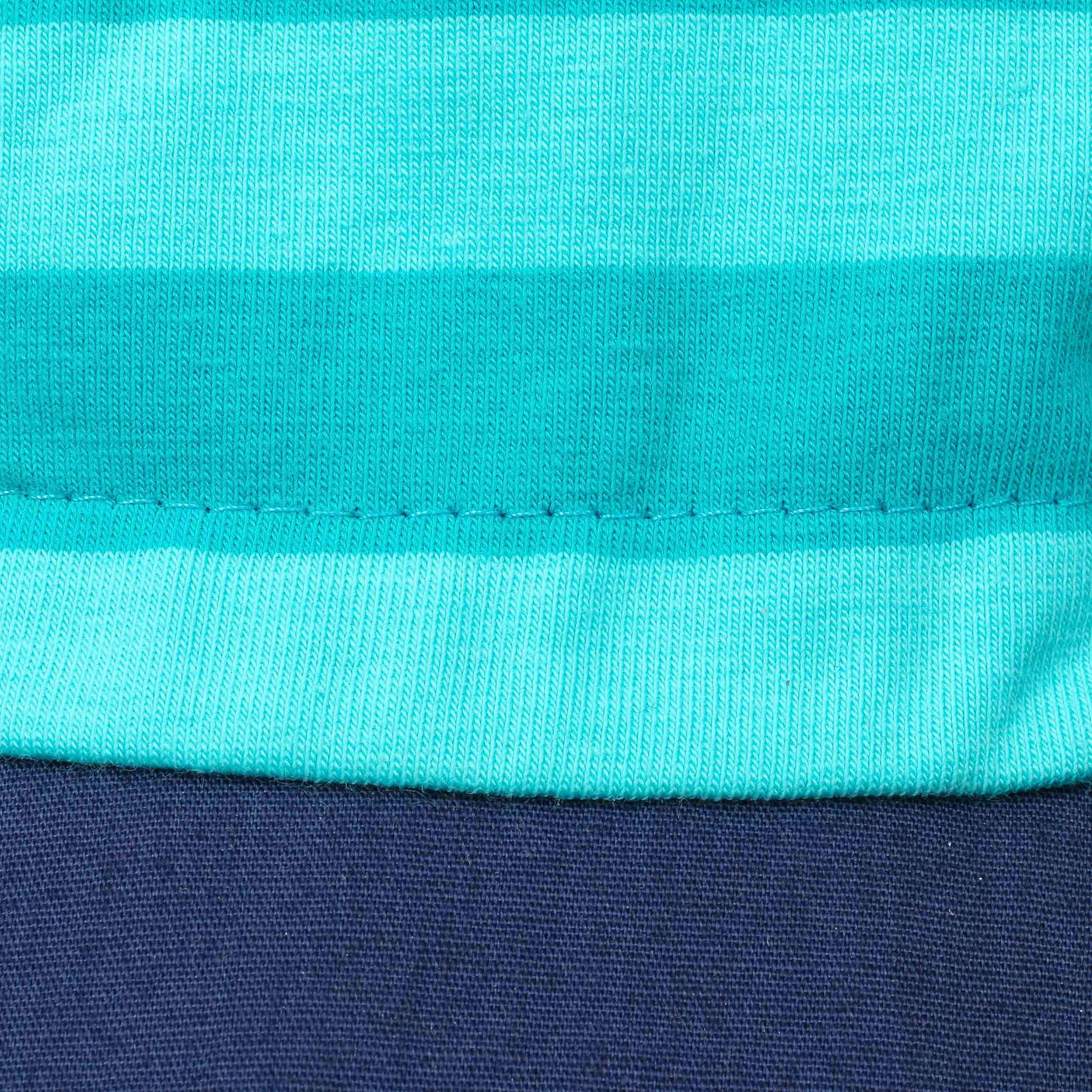 This children’s fabric cap from Maximo is perfect for a day on the beach. The nautical striped pattern ensures a good mood, while stretchy cotton makes it breathable and skin-friendly. The plain-coloured visor and extra-long neck protection are also made of cotton. The children’s cap reliably protects against sunburn with its factor 20 UV protection, so kids can play outdoors without worrying.