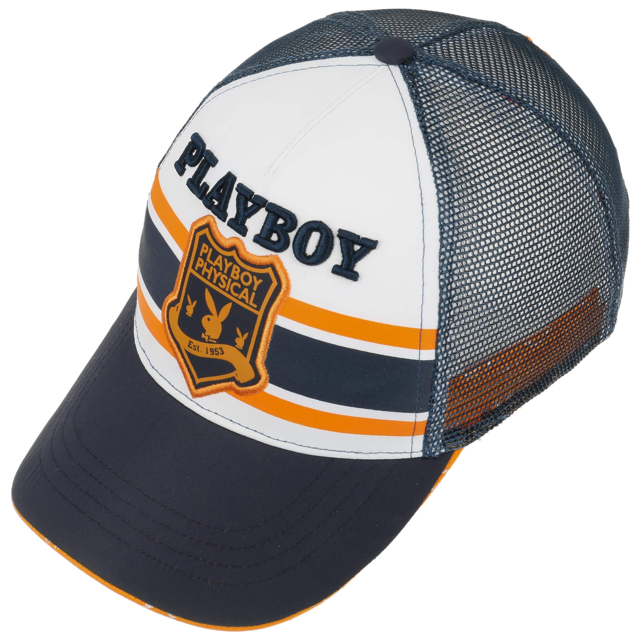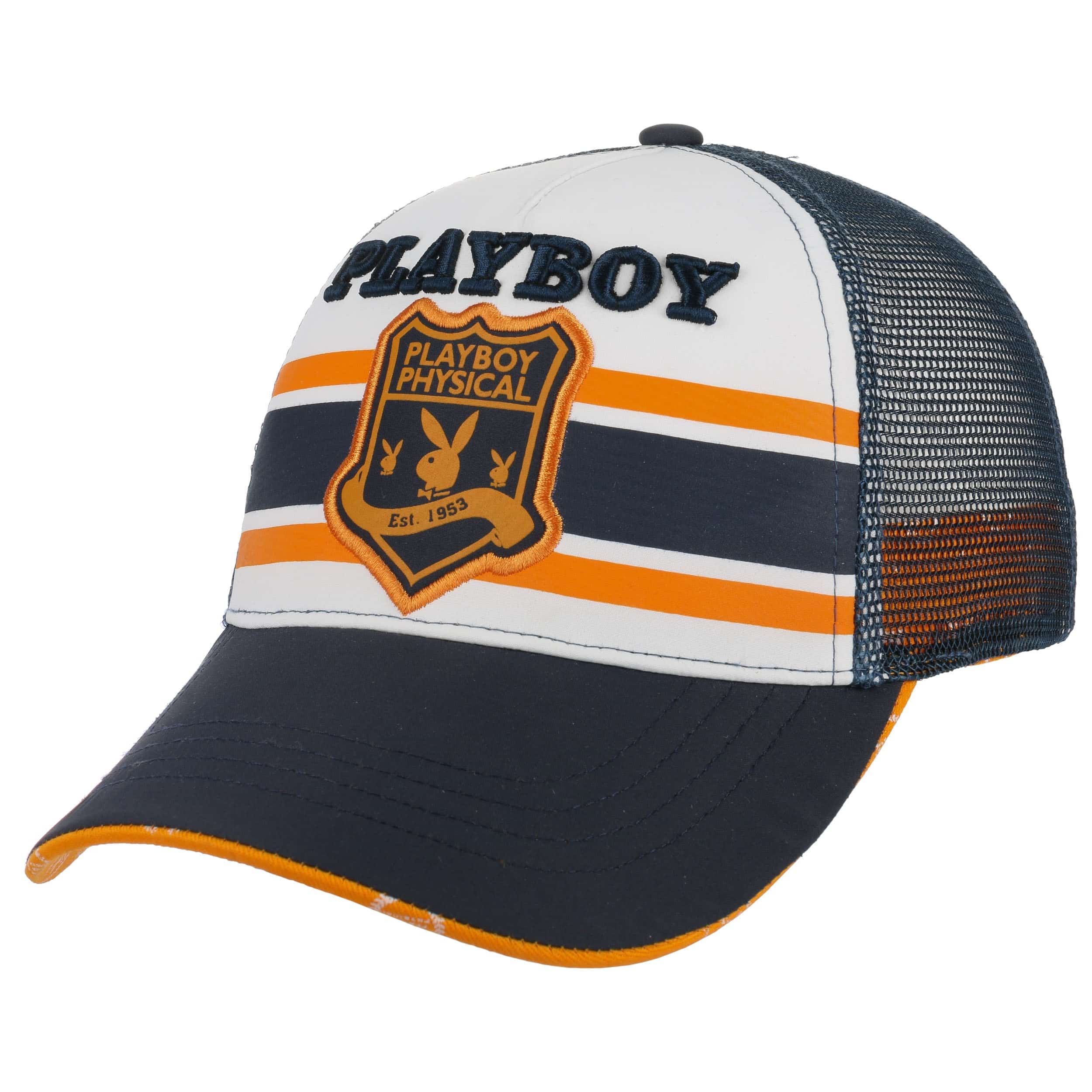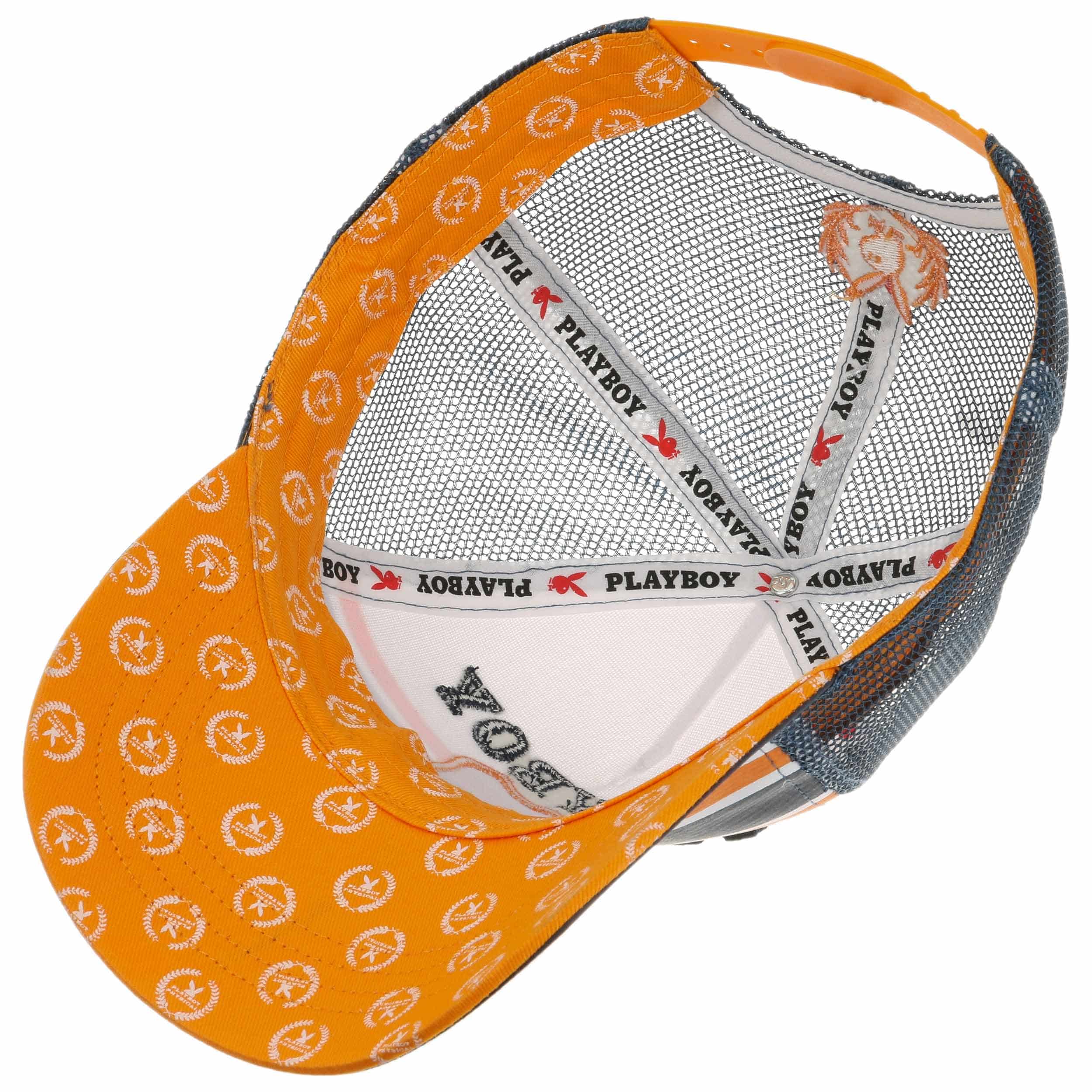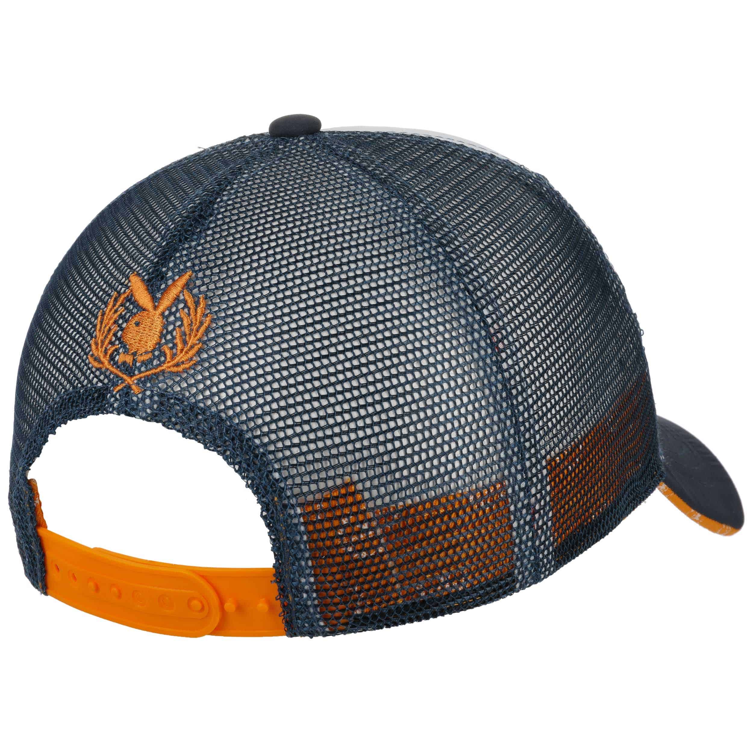 Our own brand provides a fresh selection of trendy headwear and fashion accessories: army and baseball caps, flat caps, baker boy hats, trilbies, fedoras, Western and cowboy hats, bucket hats, berets, beanies, scarves and gloves as well as care products. We offer you both classic and fancy designs in high quality at a more than reasonable price. Our exquisite selection is for people of sophisticated taste at the pulse of the time.- Playboy Bunny Trucker Cap - navy 1