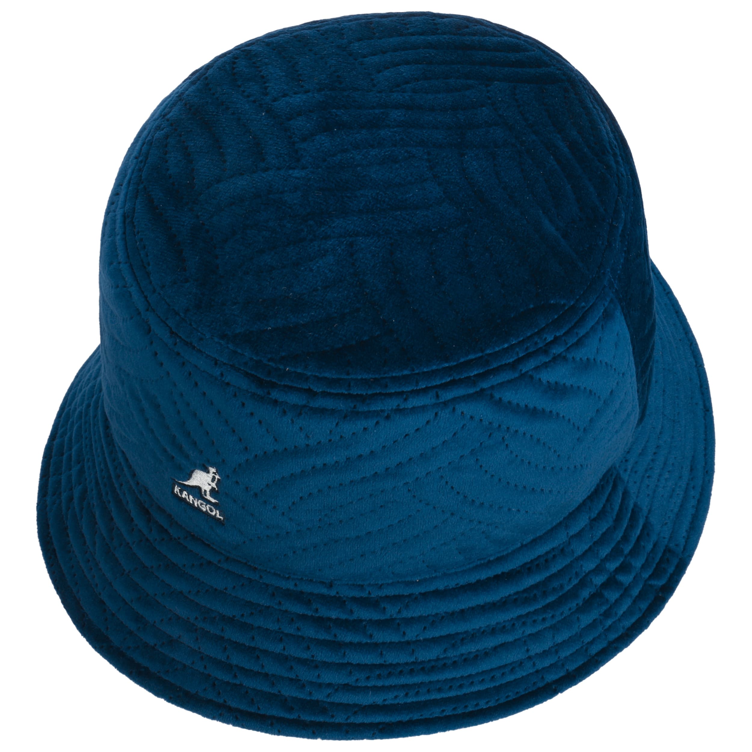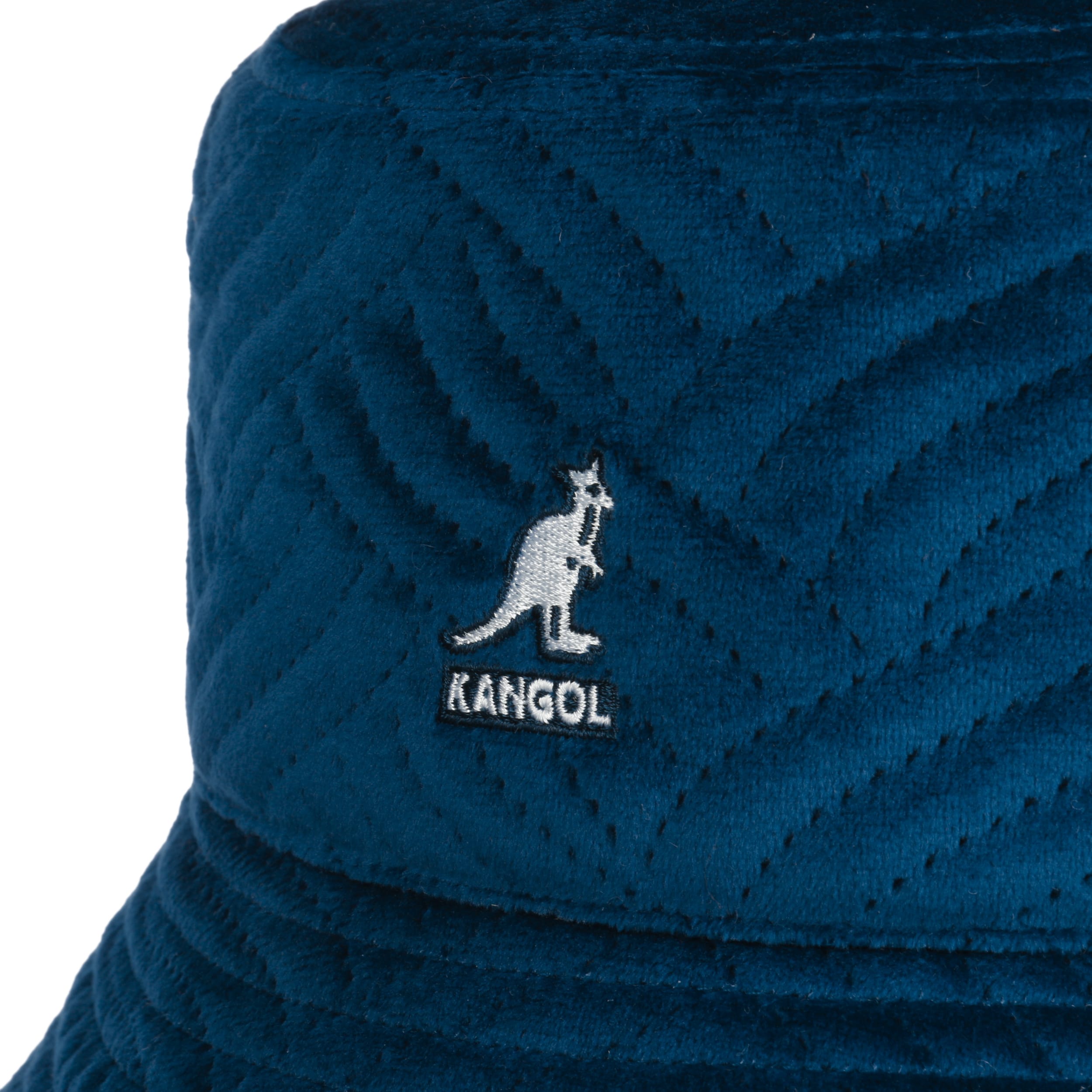Established in 1938, Kangol gained cult status with its 504 Pepe flat cap, which became the cutting-edge hat of the hip hop scene in the 1980s. Since then, the 504 hat with the popular kangaroo logo has been a generation spanning longseller. It is, meanwhile, available in a diversity of natural and high tech fibres, colours and designs. Besides fashionable flat caps and berets, you will find stylish army and baseball caps as well as soft hats, amazing baker boy caps and cool winter beanies in the wide range of fashion accessories crafted by the British company.- Plush Wave Puff Bucket Cloth Hat by Kangol - navy 1