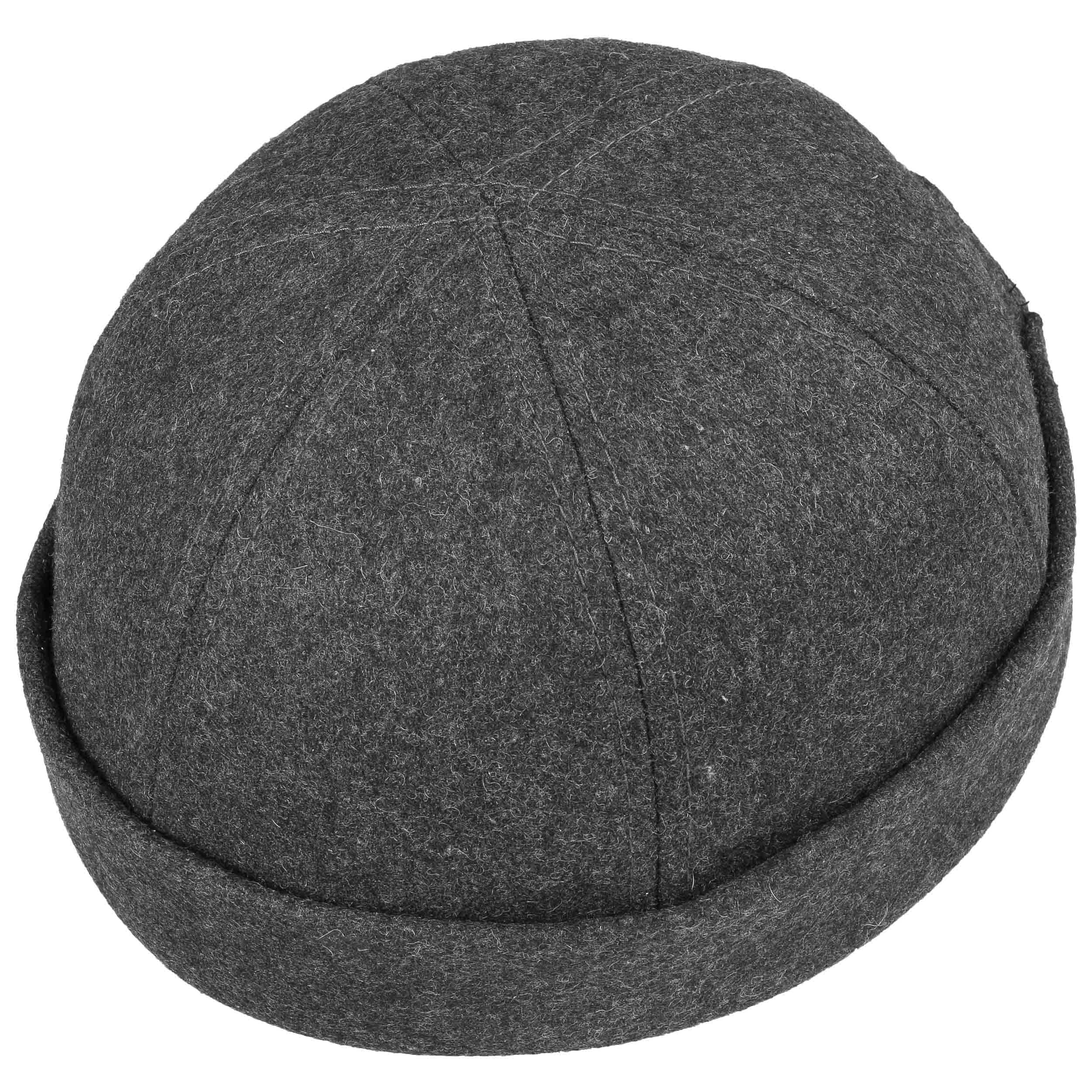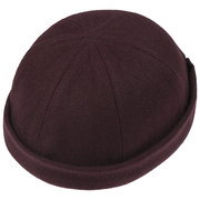 The docker cap, also called a rolled edge hat, is a tight-fitting, short hat with narrow turn-up brim. This one has a classic six-part cut and a hard-wearing material with a cosy wool effect. The edge of the cult winter cap is rolled up so the ears are not covered. The plain-coloured port cap can be adjusted to fit using a hook-and-loop closure fixture at the back of the head and thereby guarantees the optimum fit. The beloved cap has another plus with its uncomplicated character, thanks to which it not only sits comfortably on the head, but can also be practically stored away in a bag. An unbeatably priced men’s hat in the style of ship loaders and dock workers that is a real bestseller among the trendiest of hats.