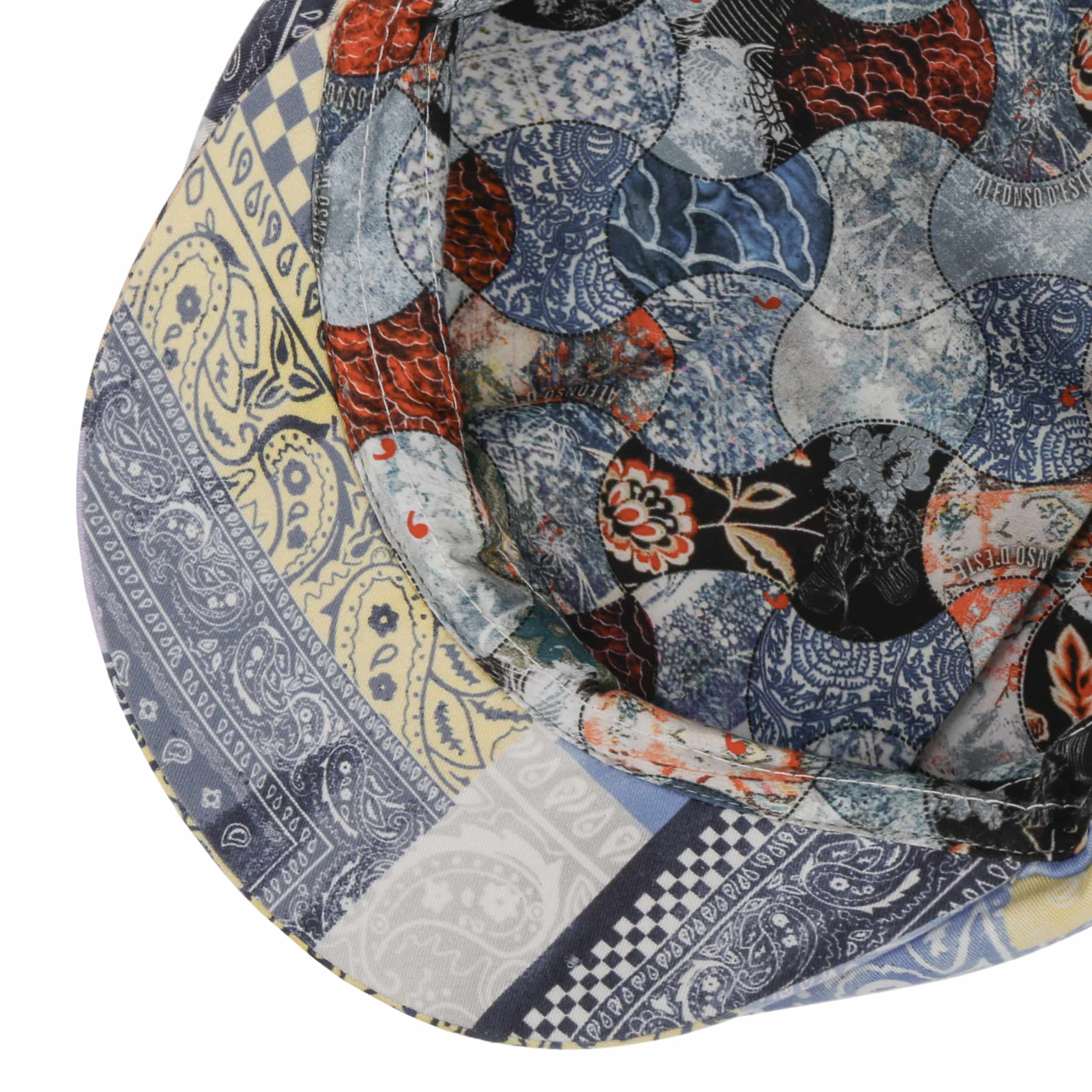 This eight-panel flat cap from Alfonso D’Este is made almost entirely from easy-care, skin-friendly cotton. As it also has a 100% cotton lining, it is simply unbeatably comfortable to wear. The summer hat is visually impressive with its patchwork prints, which ensure that the headwear never gets boring.
