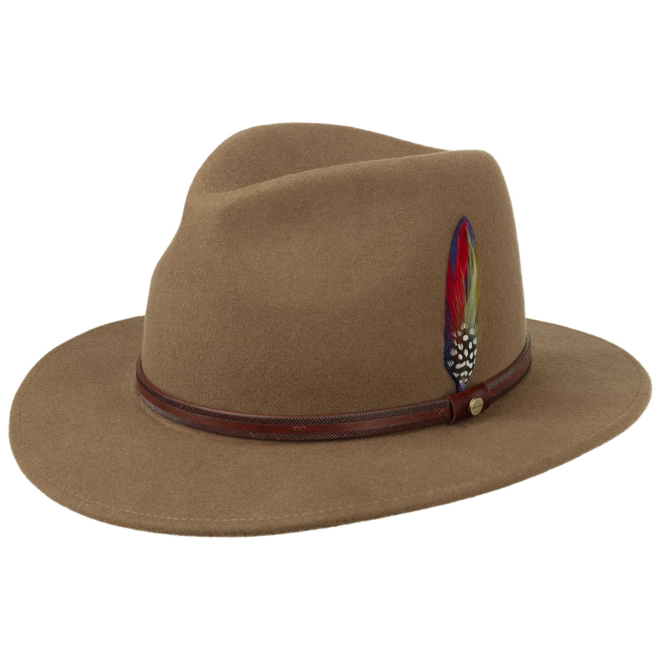 Shiny leather trim with embossed border for this classically elegant Stetson wool hat. Its patented Asahi Guard® fabric provides excellent protection and durability against water, oil and dry soil without changing the texture, colour or breathability of the fabric or material.