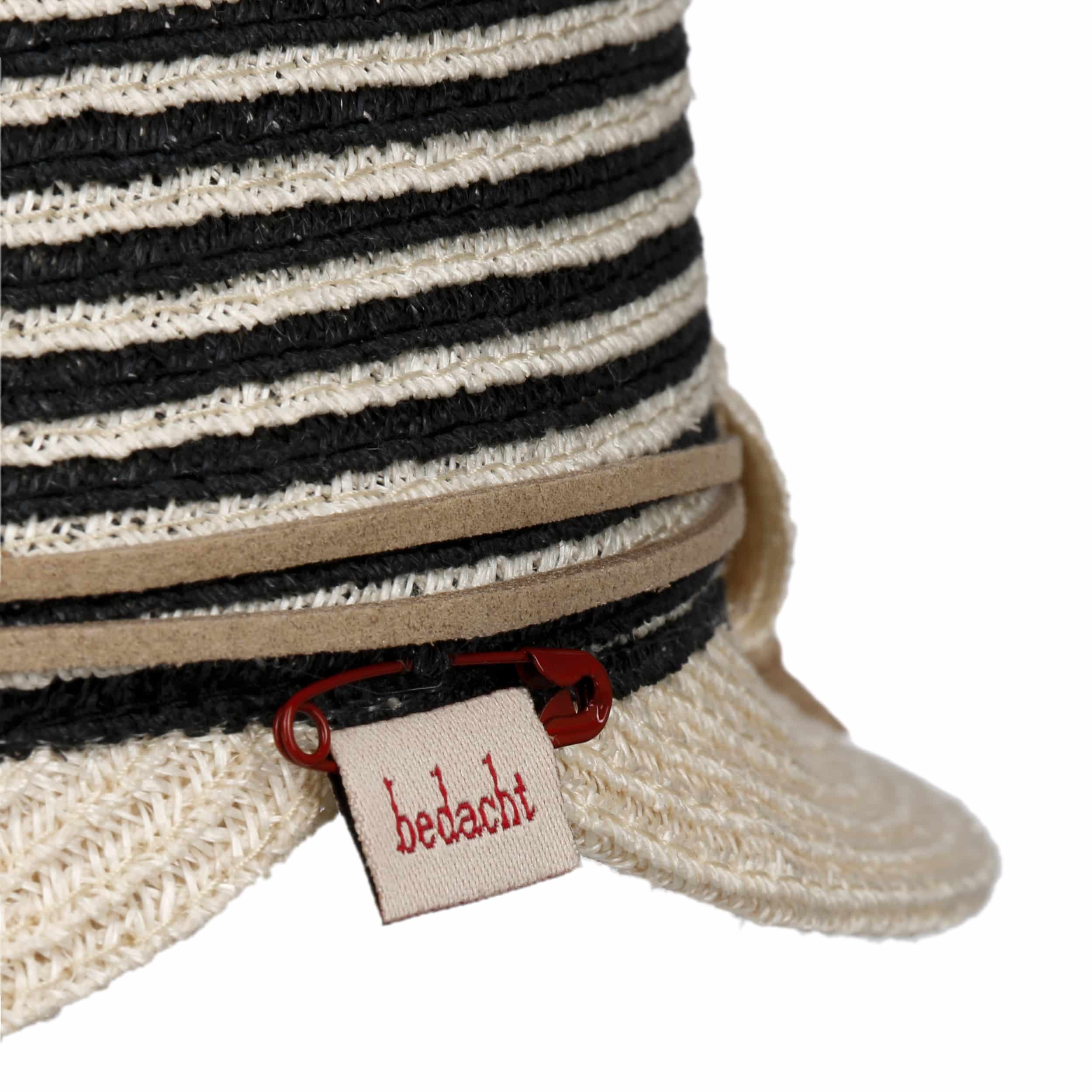Thanks to its high quality finish, this hemp and cotton hat from bedacht looks particularly exquisite and stylish. The design is bound to win you over with its refreshingly dynamic charisma. An attractive multicoloured pattern made up of stripes, which adorns both the crown and the gallantly downward sloping brim, characterises the headgear’s modern appearance.