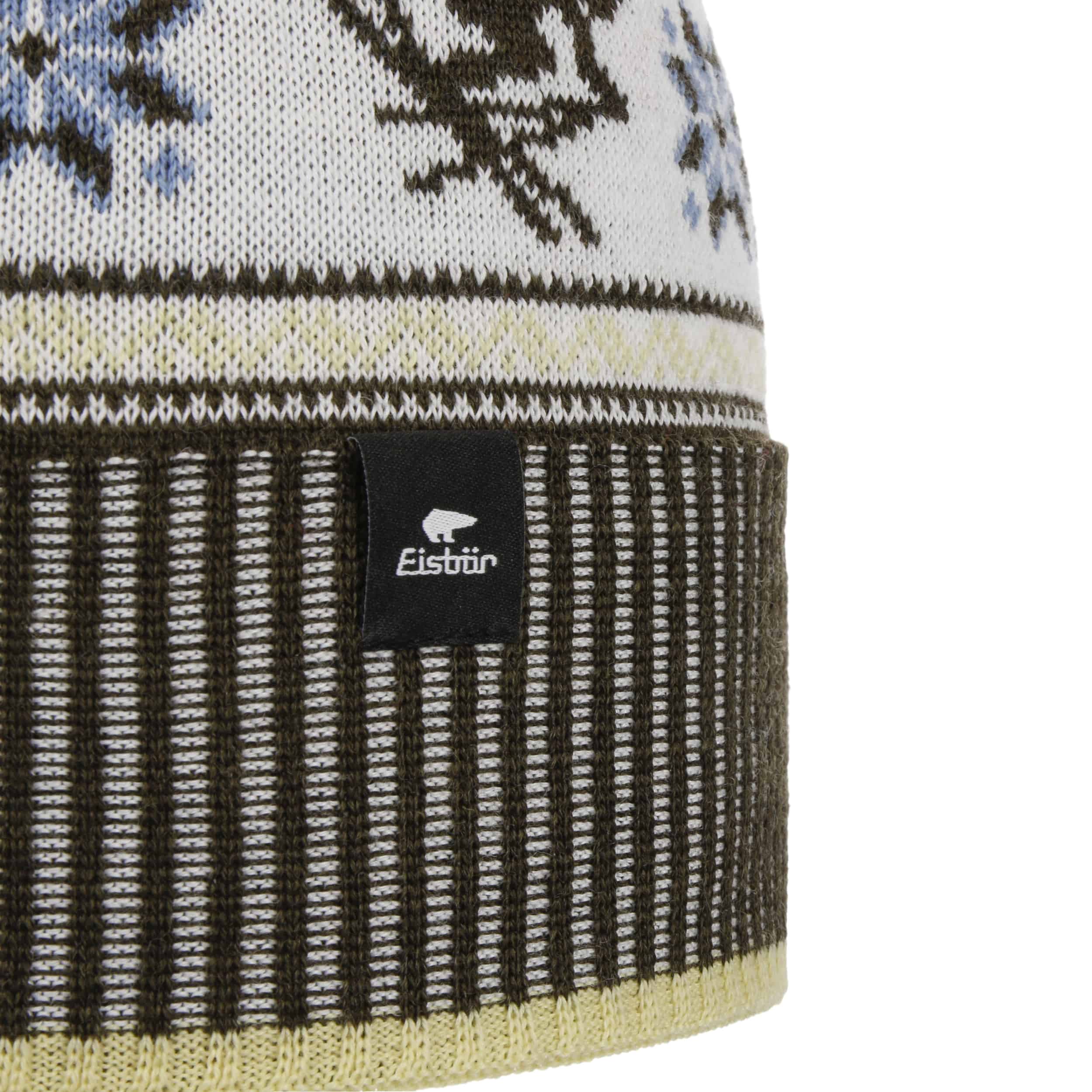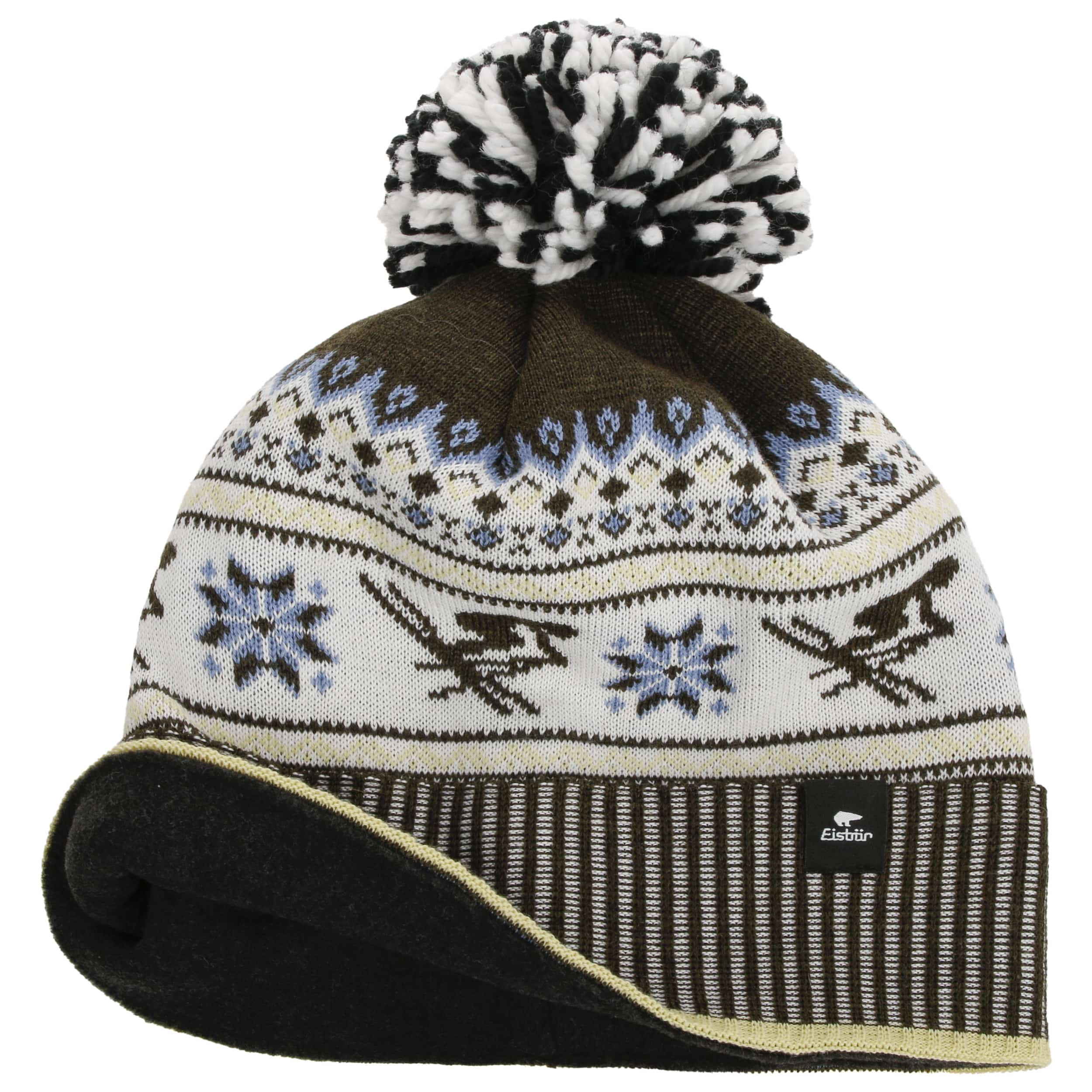 This knitted hat features a retro look with an eye-catching pompom and classic Norwegian pattern. The typical, handcrafted look is perfect for adventures on the piste and winter walks. Eisbär uses a soft merino wool mix, complemented by a warming fleece lining for maximum comfort. The wide turn-up provides additional protection from the cold, while the striking pompom adds the finishing touch to any outfit. Made in Austria.