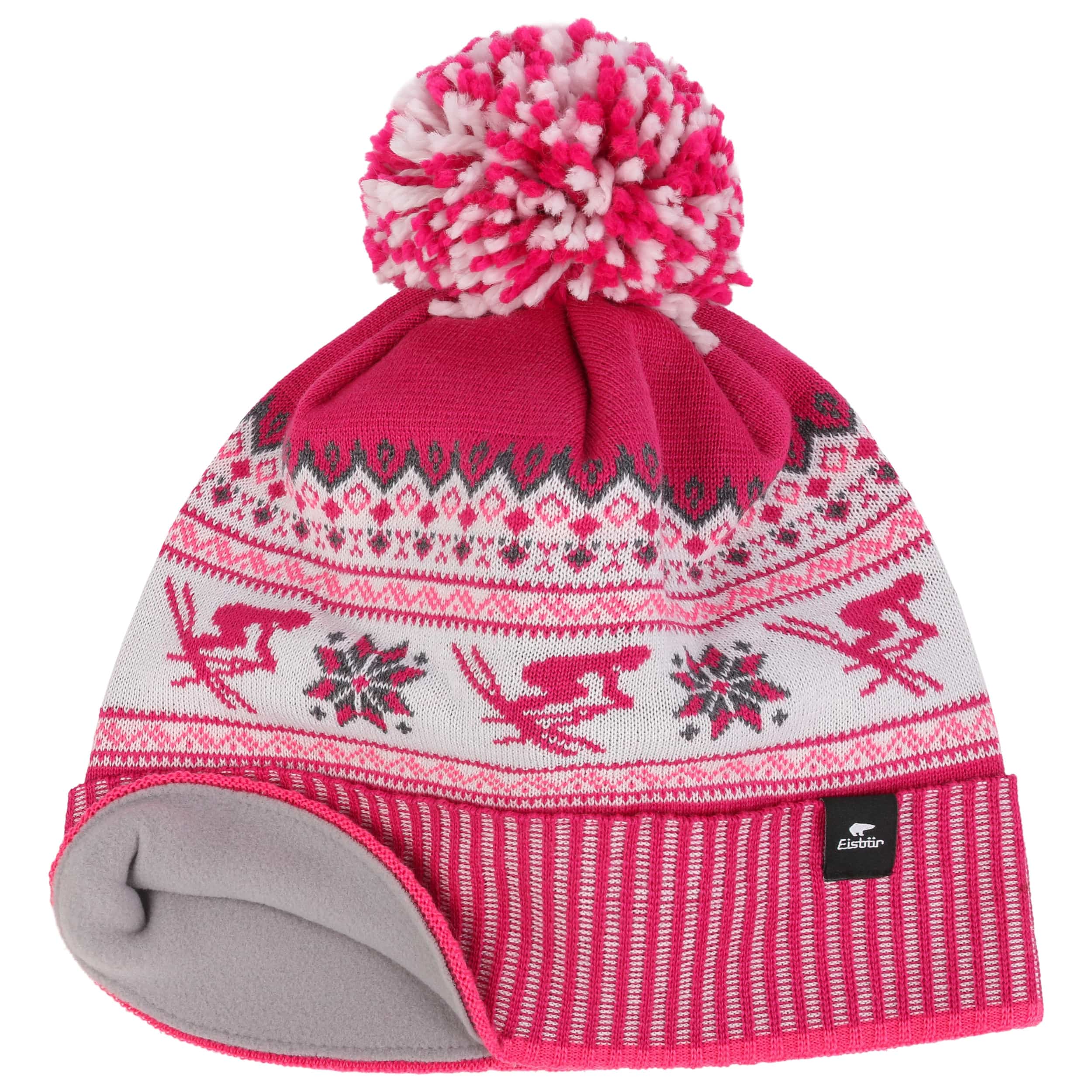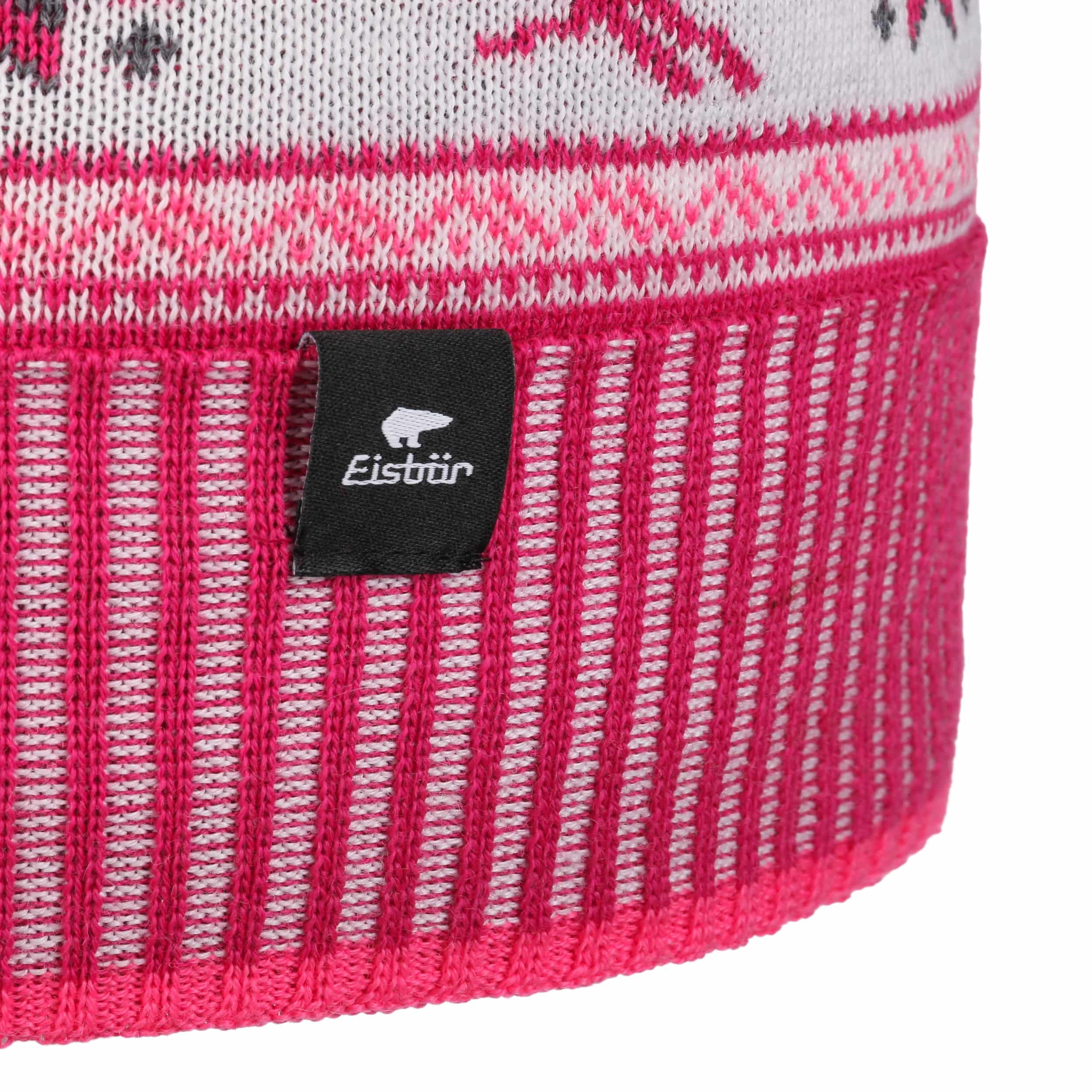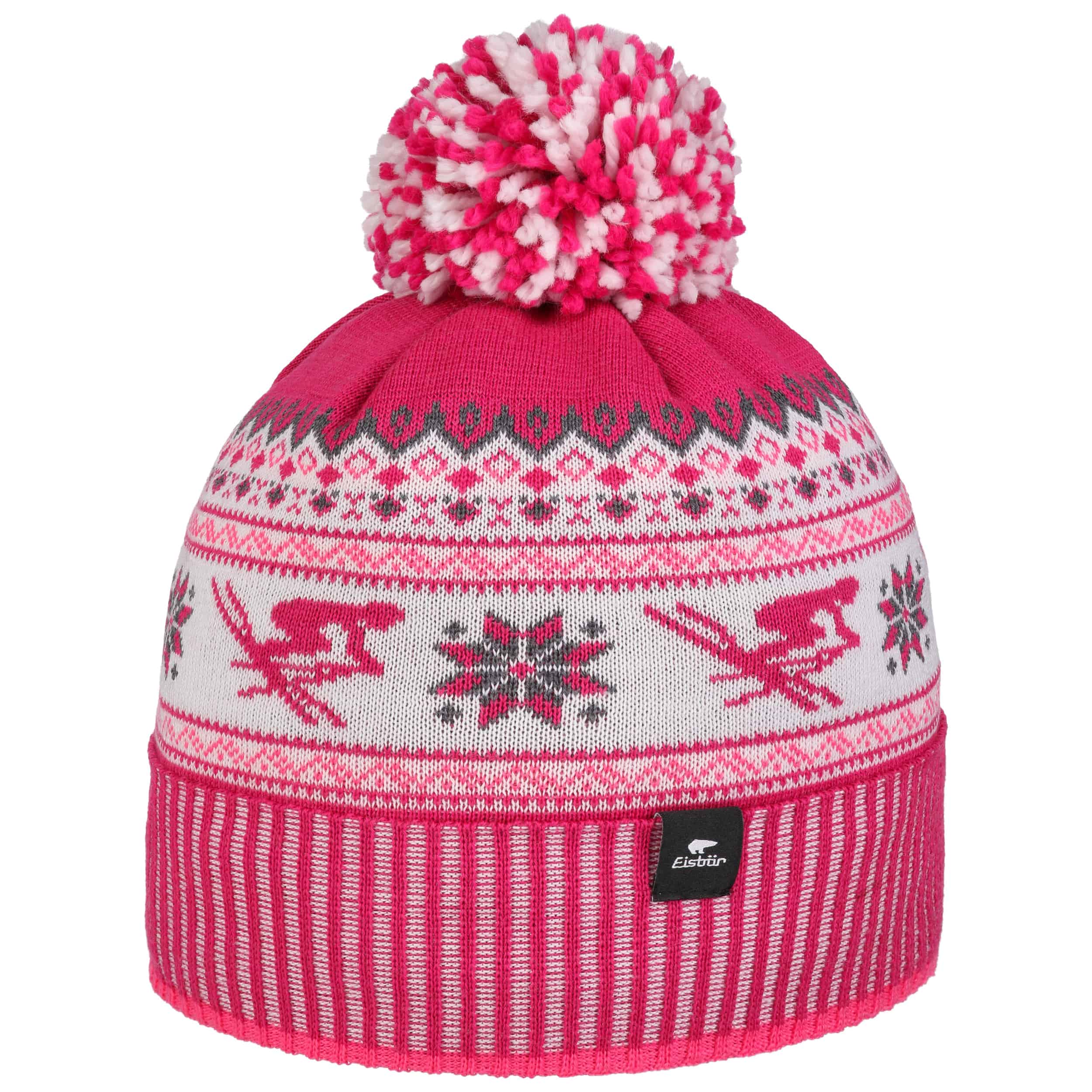 As official supplier of the Austrian national ski team, Eisbär makes high-quality sports hats, headbands and pullovers, using warm and functional knit and fleece fabrics. The identifying feature of the family-owned enterprise from Austria are extraordinary and funny styles in loud colours.- Retroski Pompom Hat by Eisbär - pink 1
