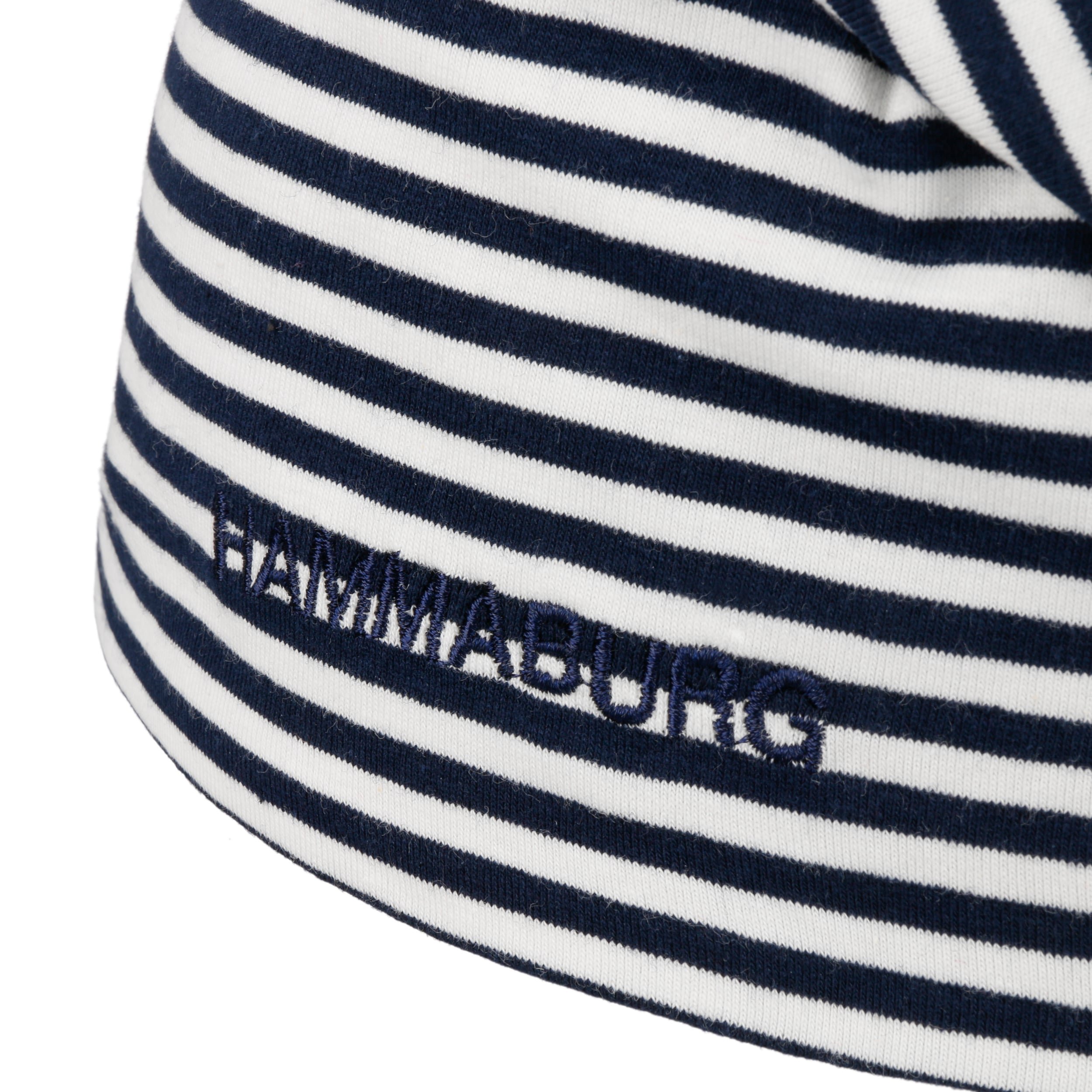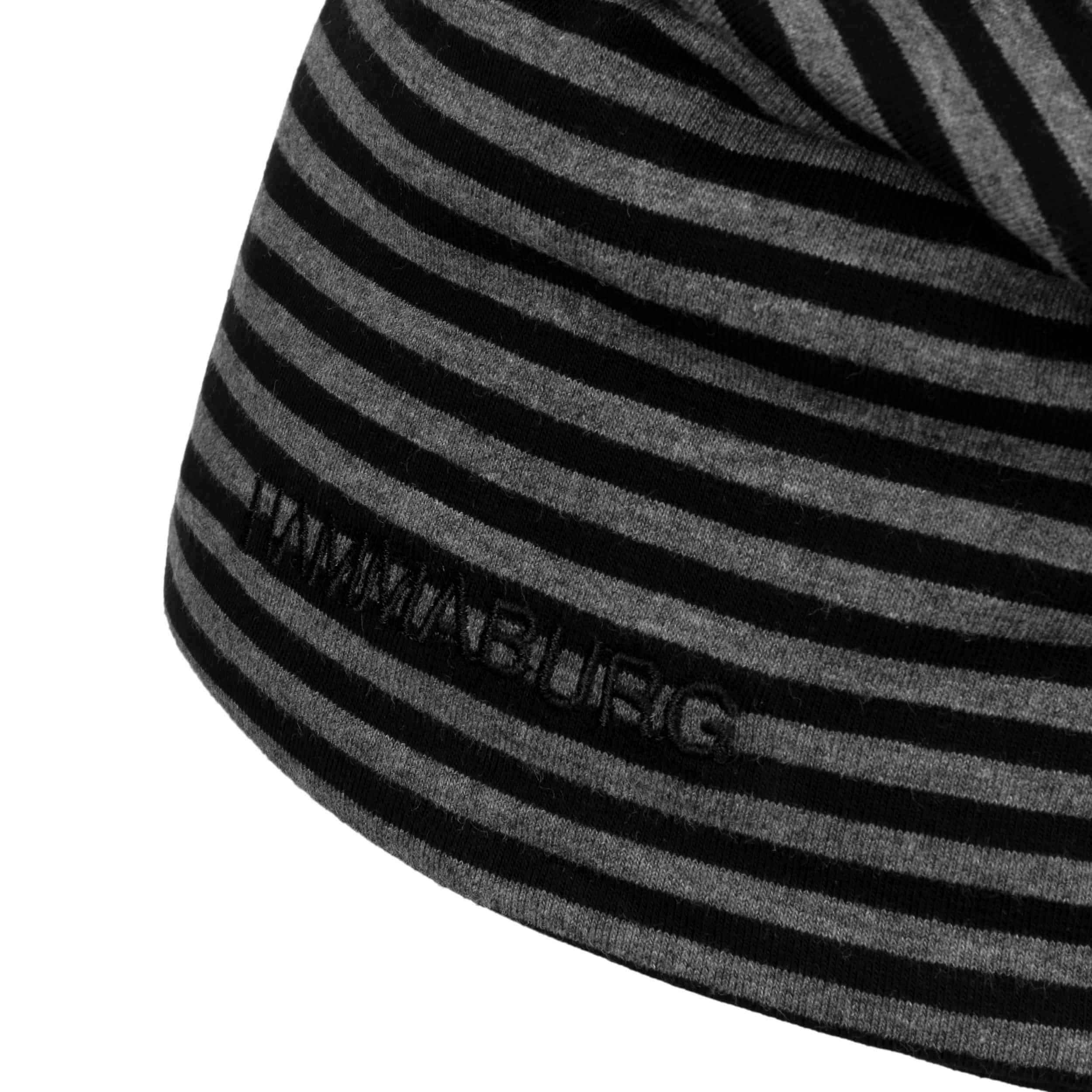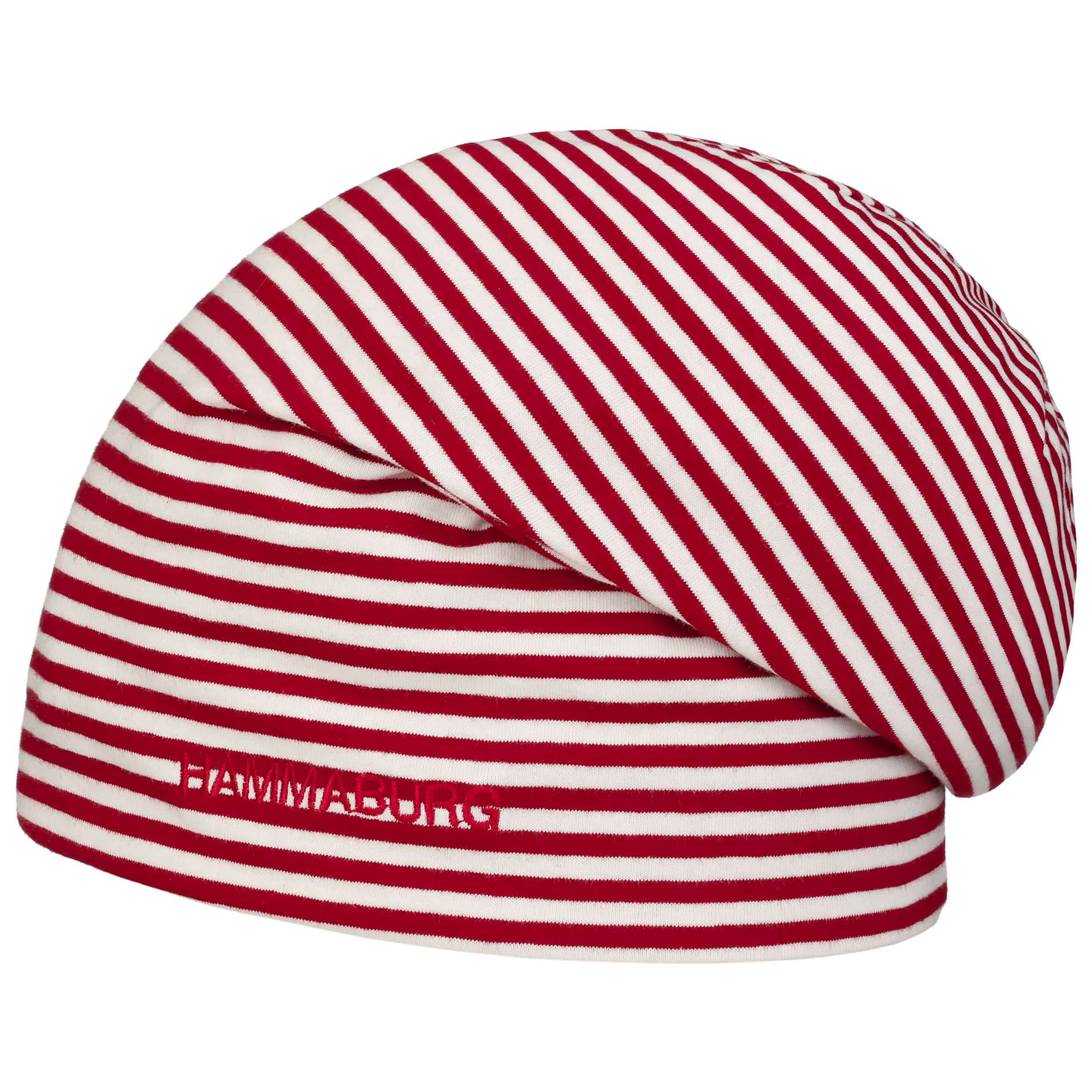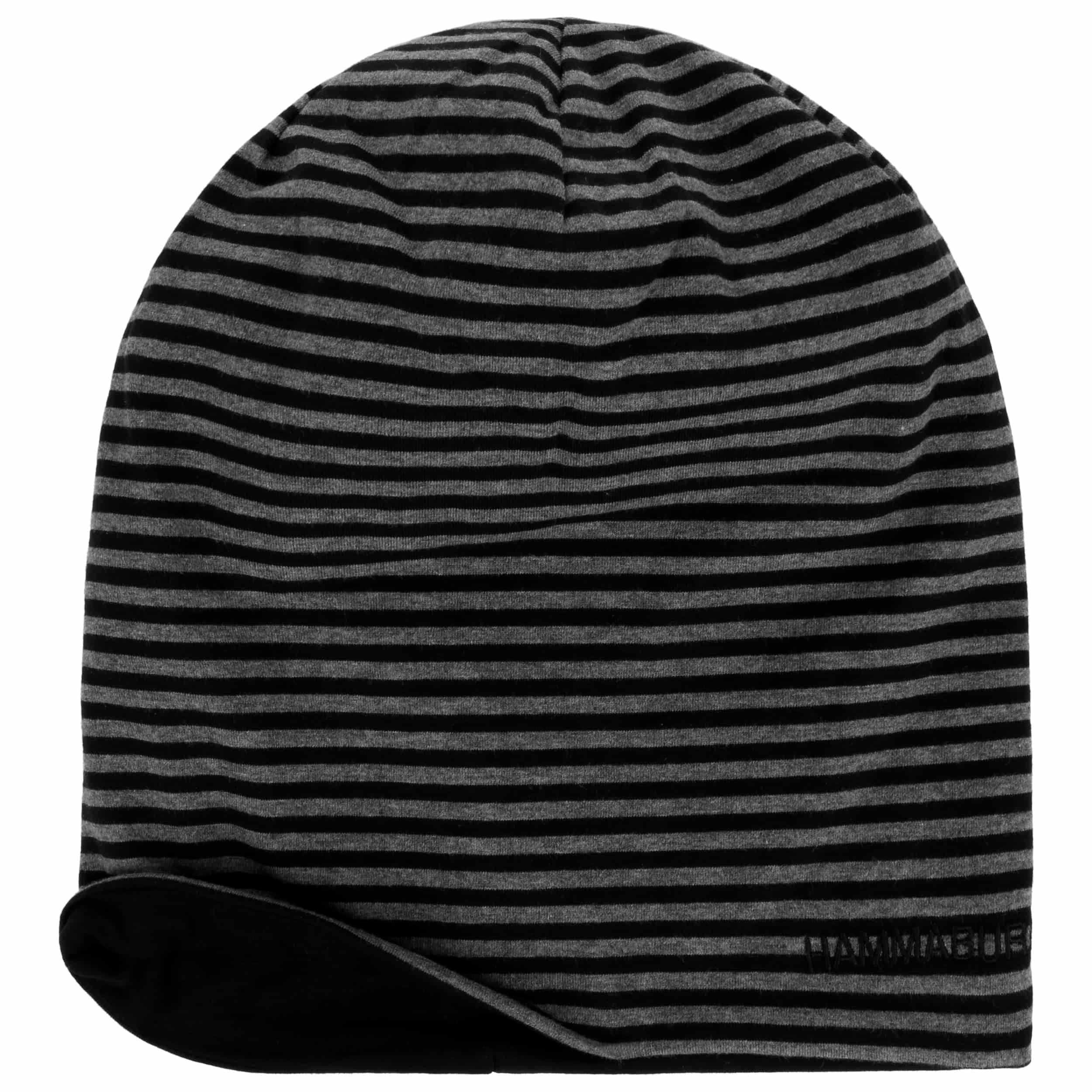 The beanie from Hammaburg is a lightweight summer hat. It has one plain and one striped side, so it can be worn on both sides. Thanks to the oversized design, the cap sits casually on the head and ensures a cool look. The reversible cap is made of 95% breathable cotton.