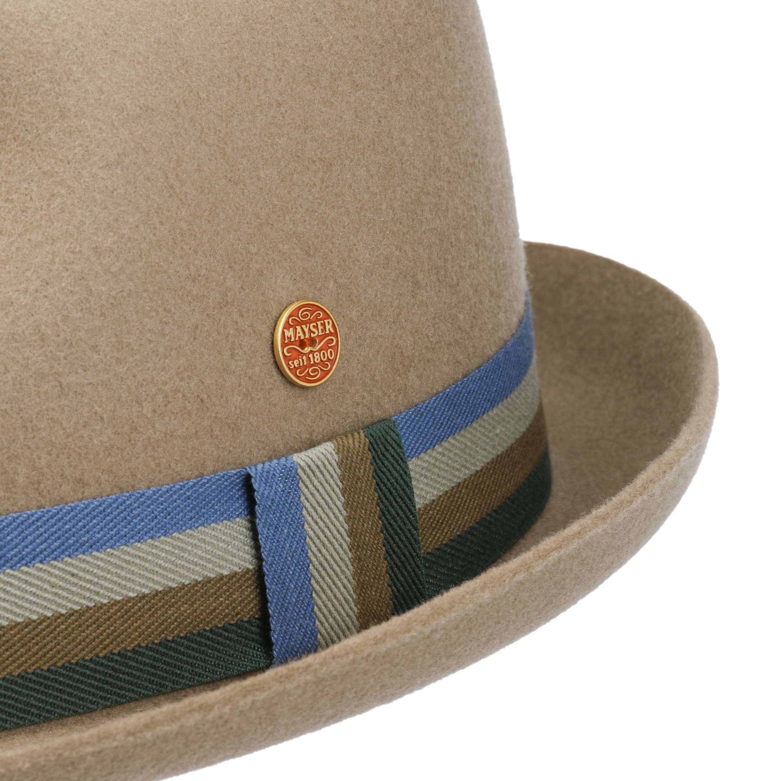 As long-established German company founded in 1800, Mayser has been standing for classic and elegant headwear ever since. First-class workmanship, high-quality fabrics and subtle plays of colours have always been typical characteristics of Mayser's collections. With its officially licensed Indiana Jones hats and sometimes extravagant combinations of styles and fabrics, Mayser knows how to enhance the wardrobe of both elegant men and fashionable women.- Samu Striped Band Player Wool Hat by Mayser - beige 1