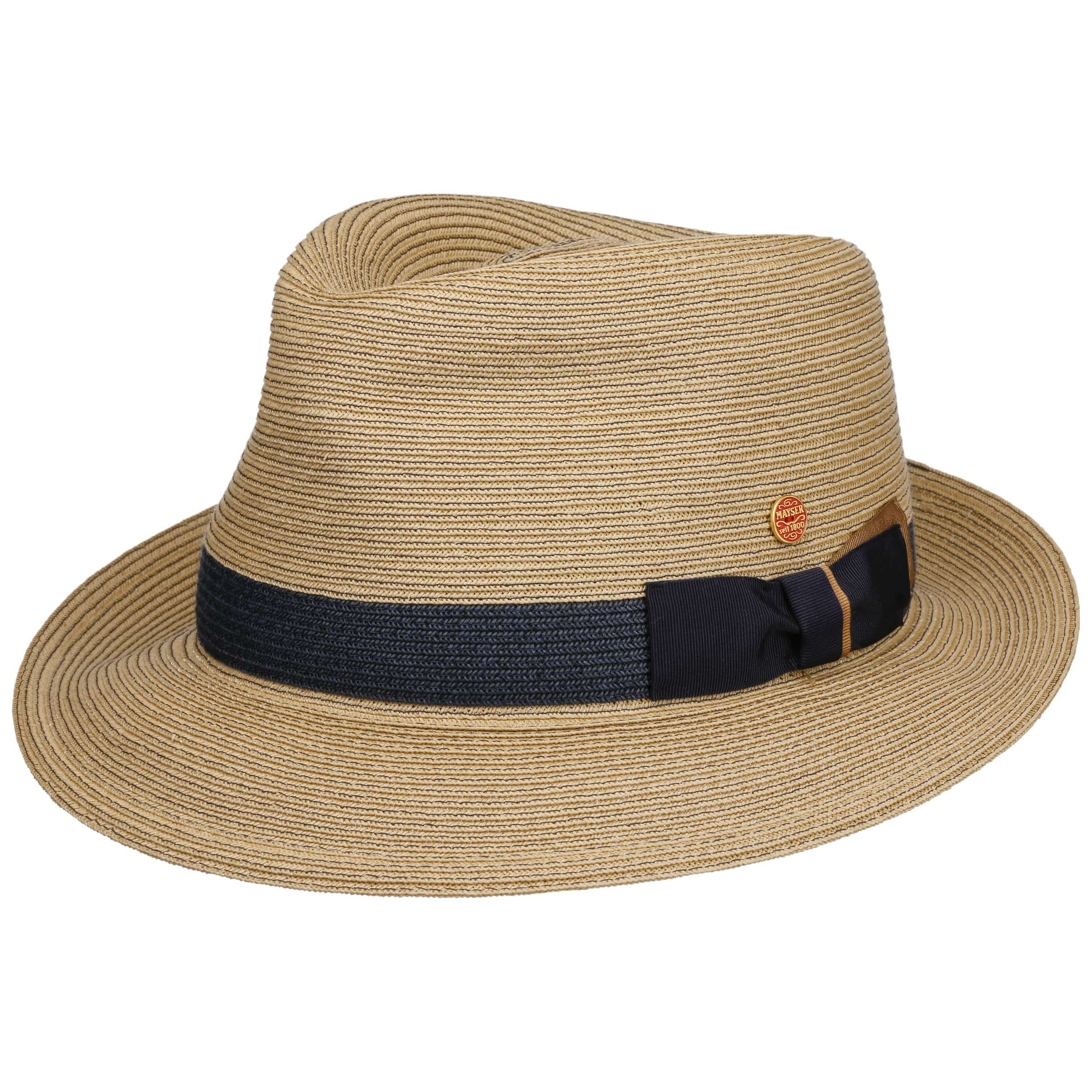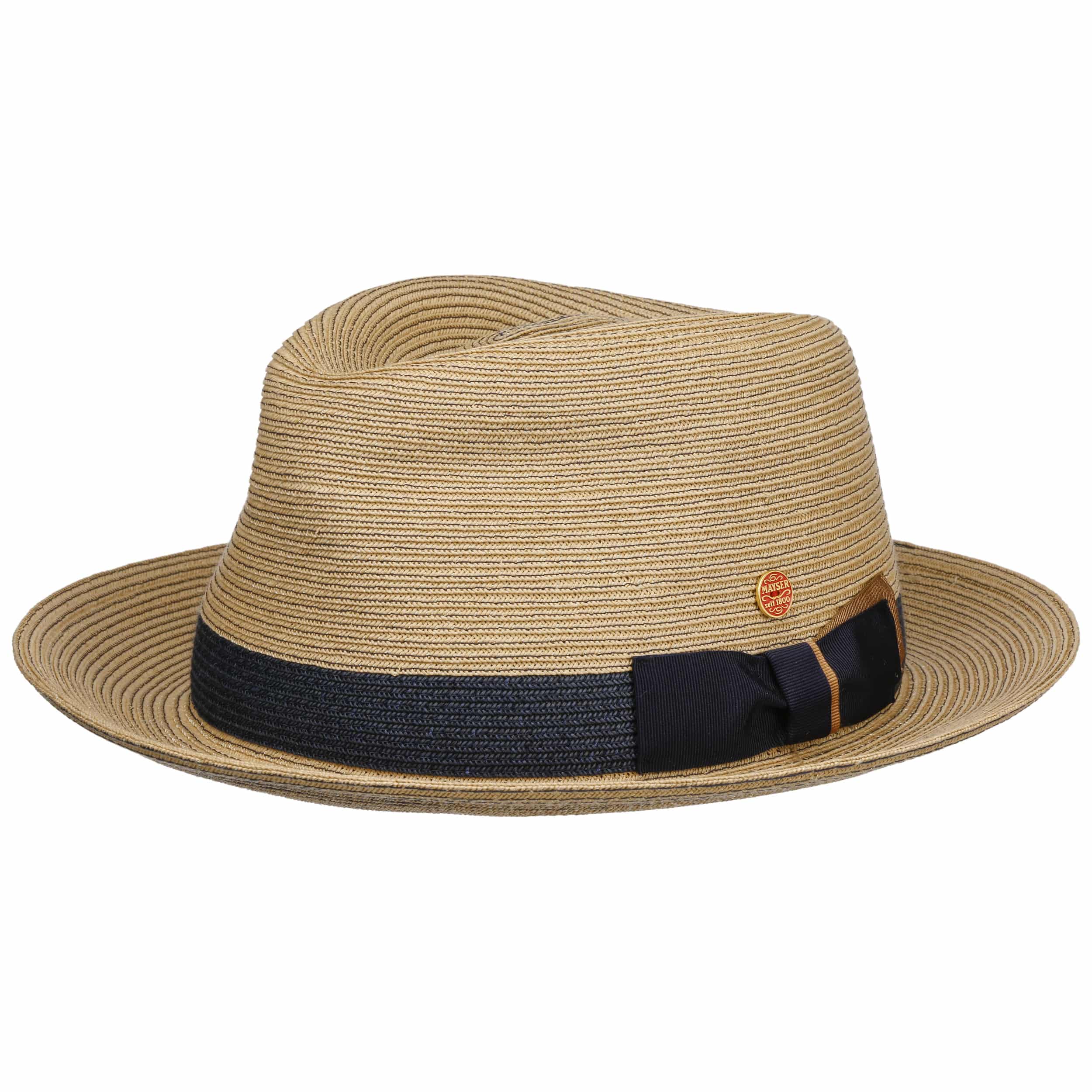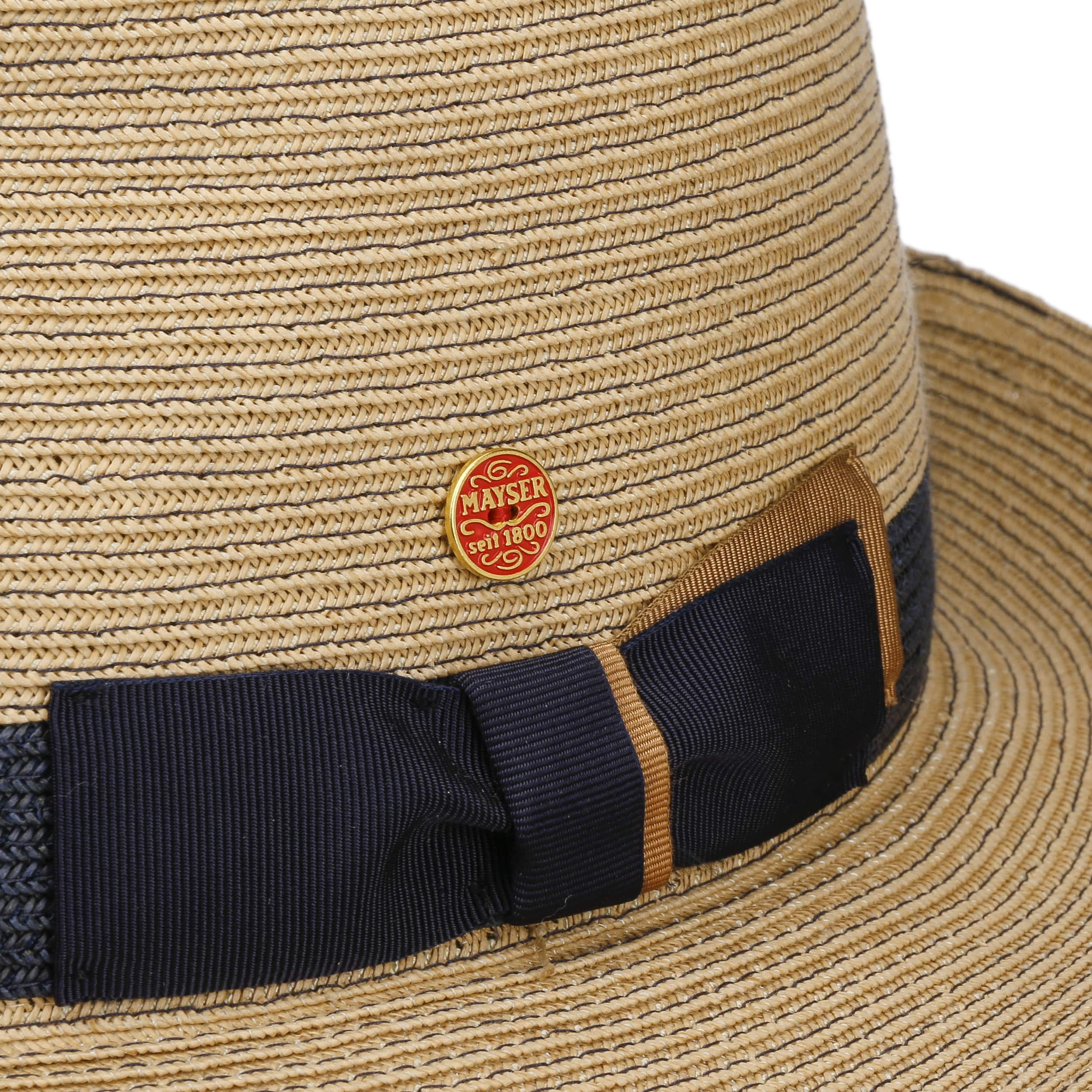 As long-established German company founded in 1800, Mayser has been standing for classic and elegant headwear ever since. First-class workmanship, high-quality fabrics and subtle plays of colours have always been typical characteristics of Mayser's collections. With its officially licensed Indiana Jones hats and sometimes extravagant combinations of styles and fabrics, Mayser knows how to enhance the wardrobe of both elegant men and fashionable women.- Samuel Livorno Fedora Straw Hat by Mayser - nature-blue 1