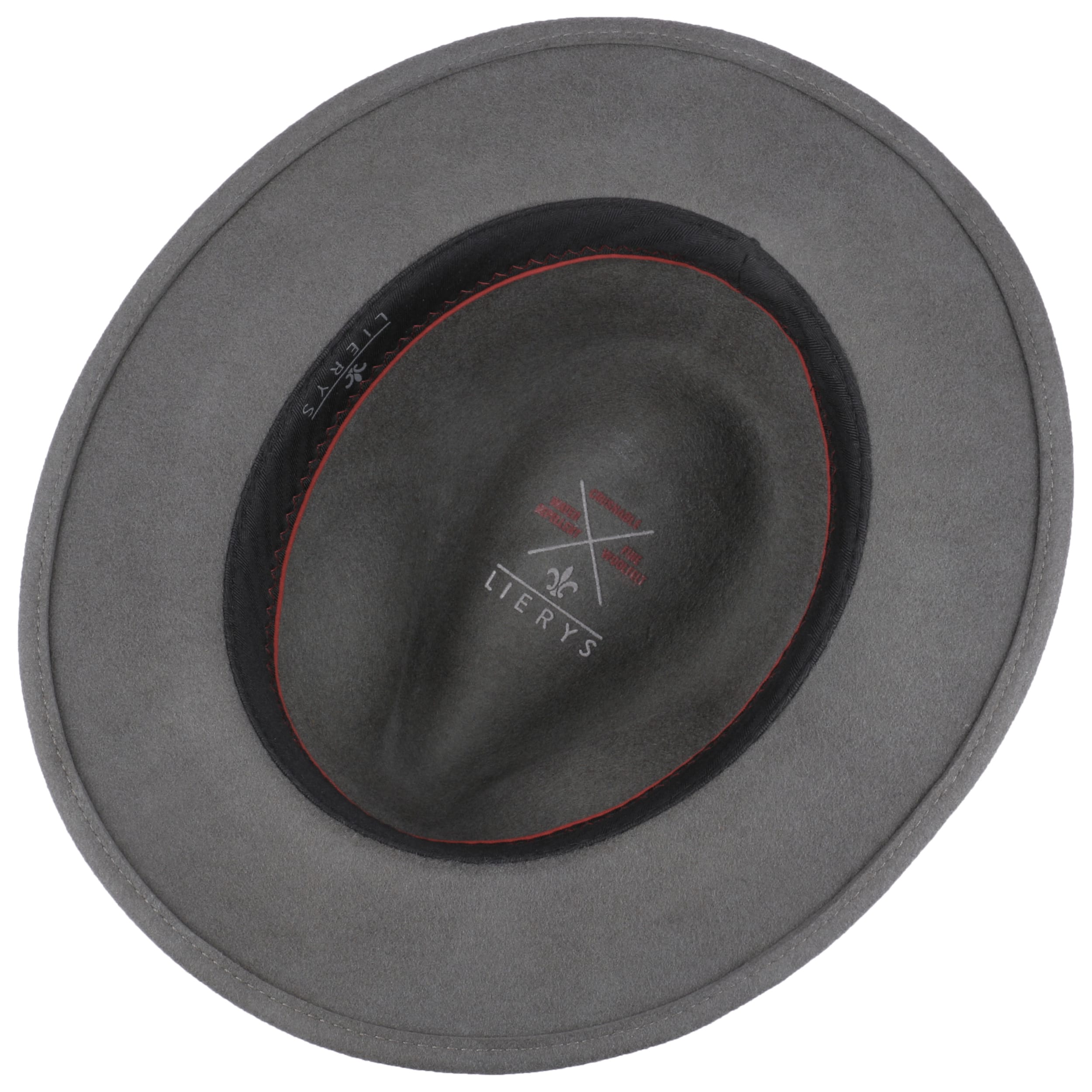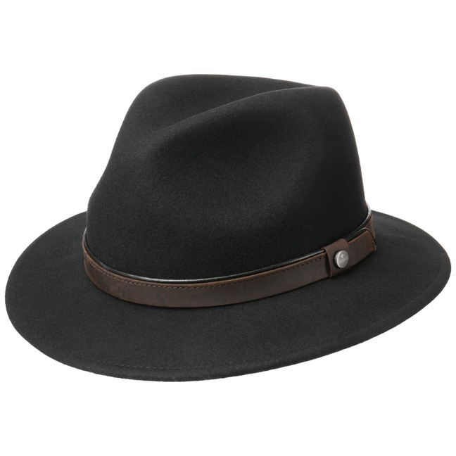 Plain-coloured wool felt gives this traveller hat from Lierys a smooth feel, which is completely unaffected by the vagaries of the weather. The felt hat keeps rain showers at bay with its water-repellent finish, while you get to enjoy shade under the brim when the sun is shining. Even crumpling does not impair the beauty of this outdoor hat with colour-coordinated leather trim.